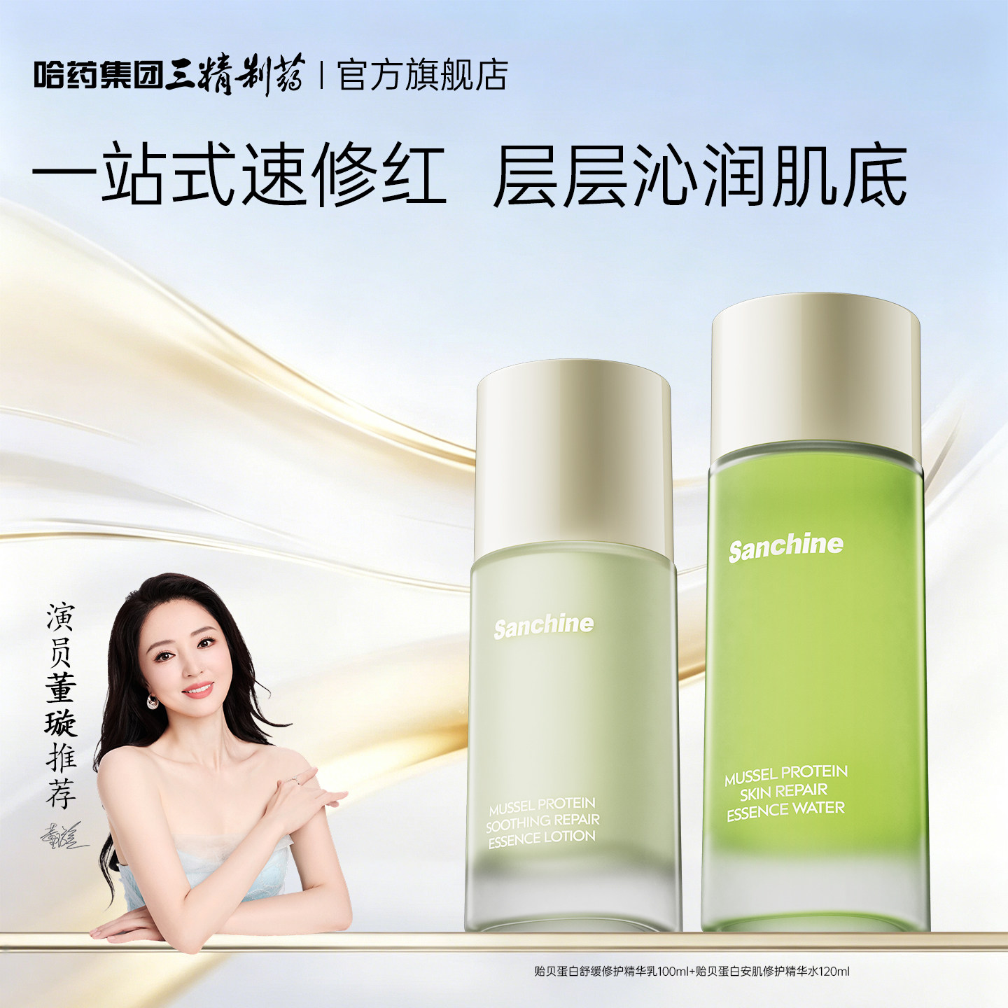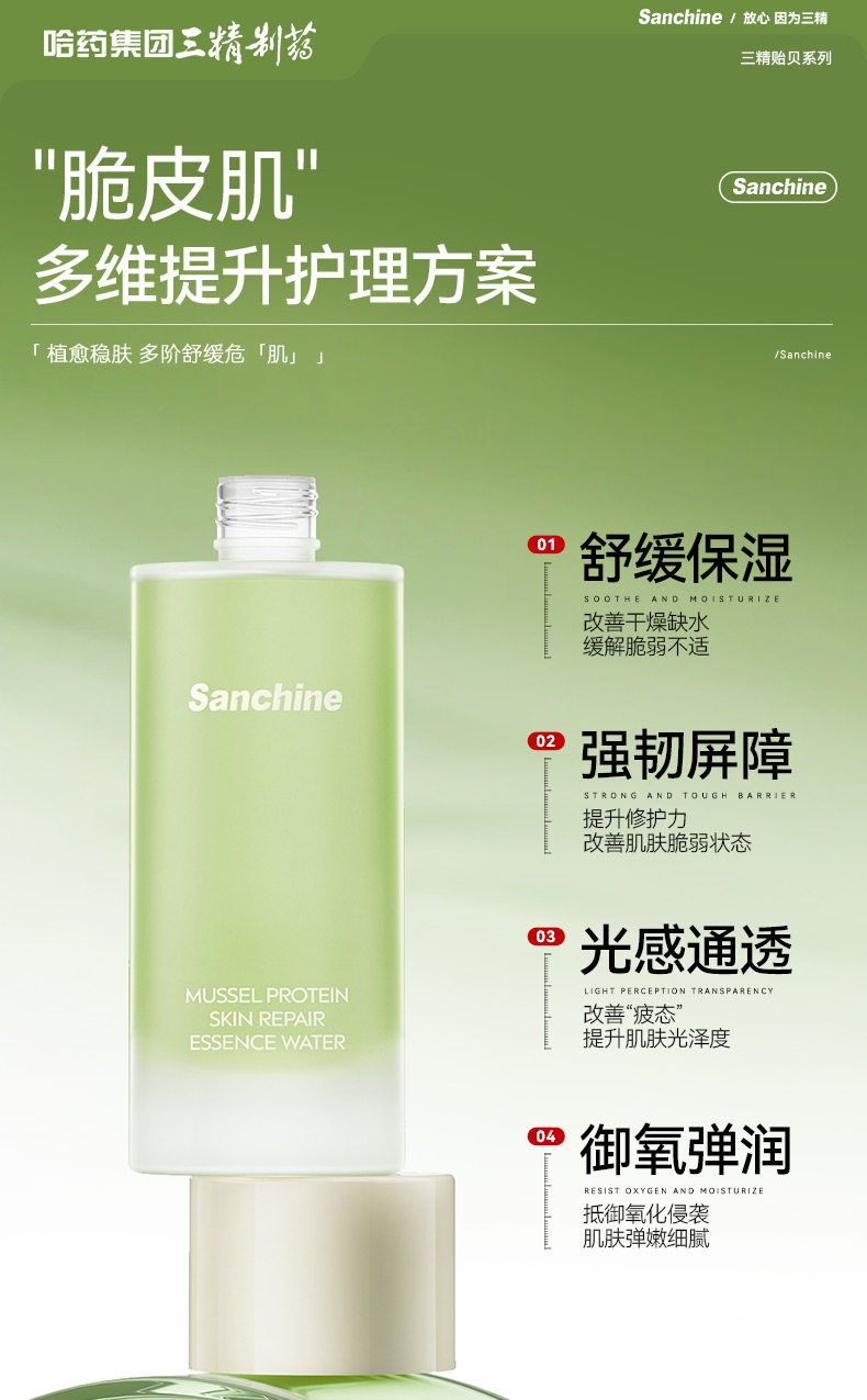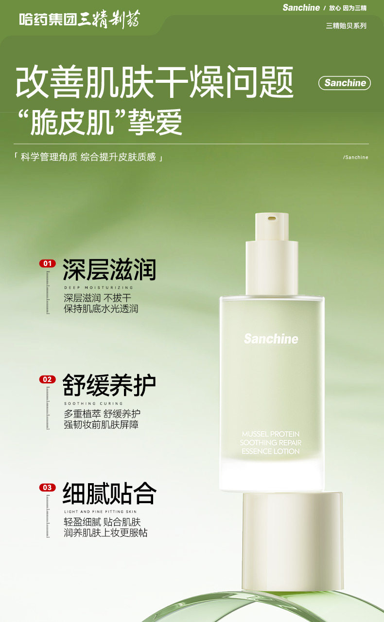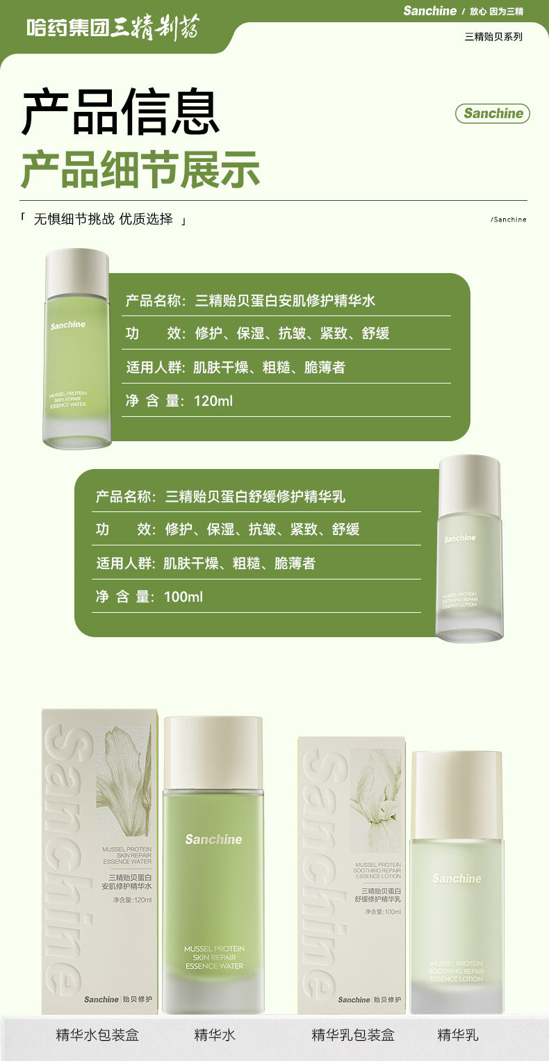 三精制药贻贝蛋白水乳套装舒缓修护补水保湿褪红提亮紧致护肤品