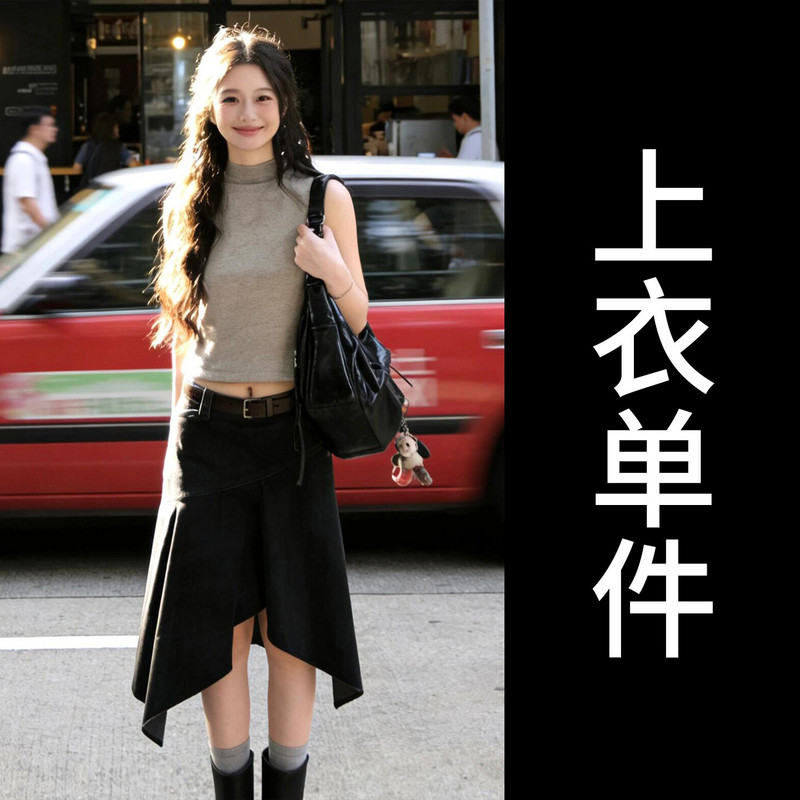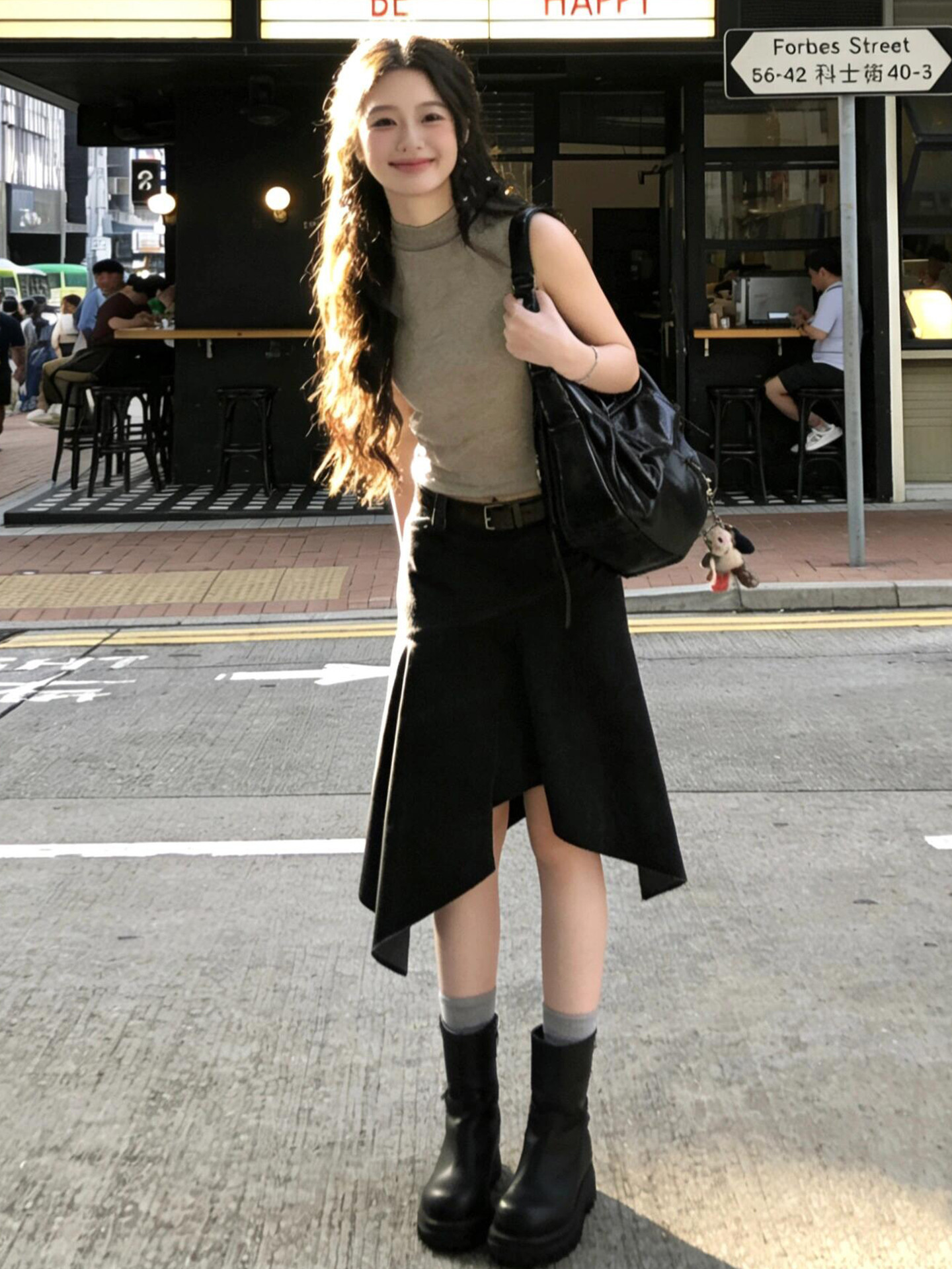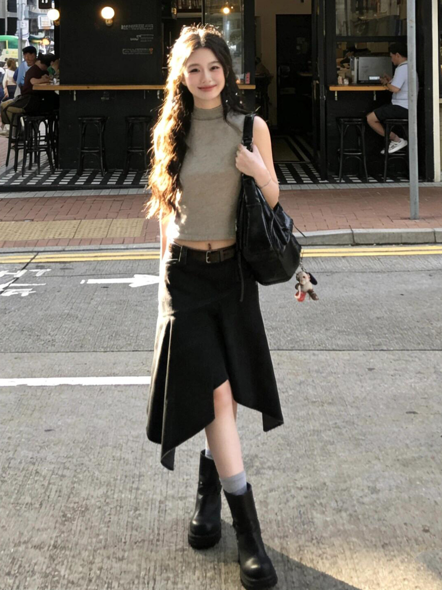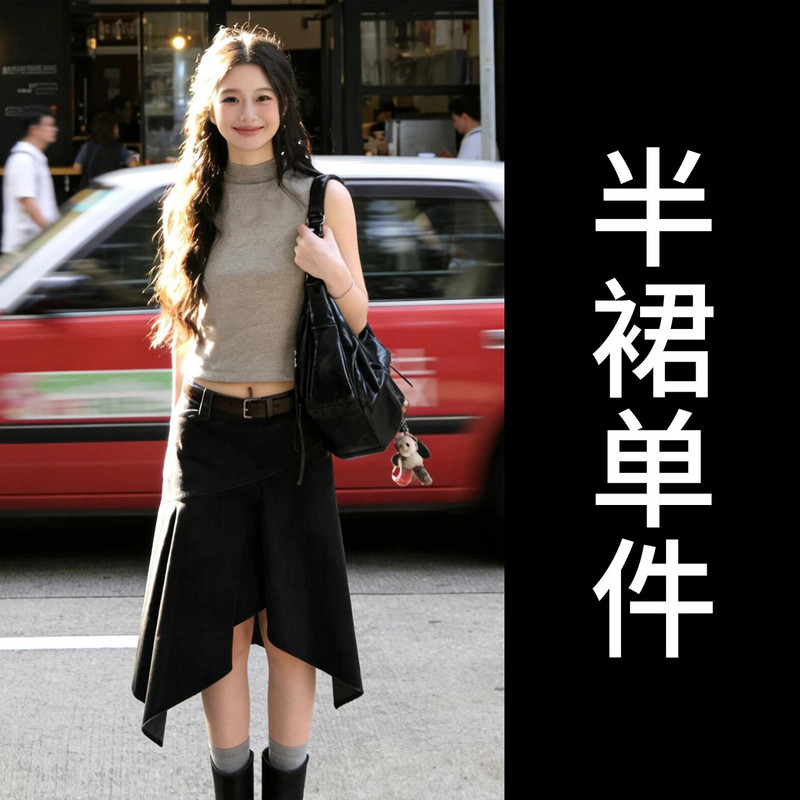 韩系高级感黑色牛仔半身连衣裙子女夏季2026新款超火穿搭一整套装