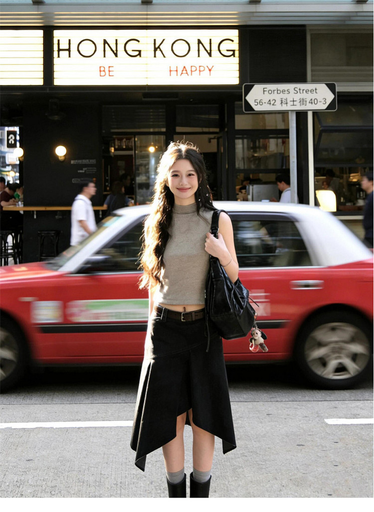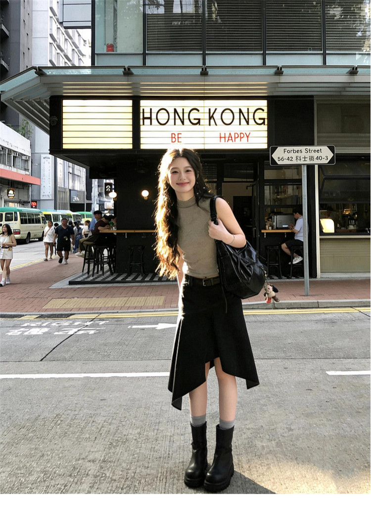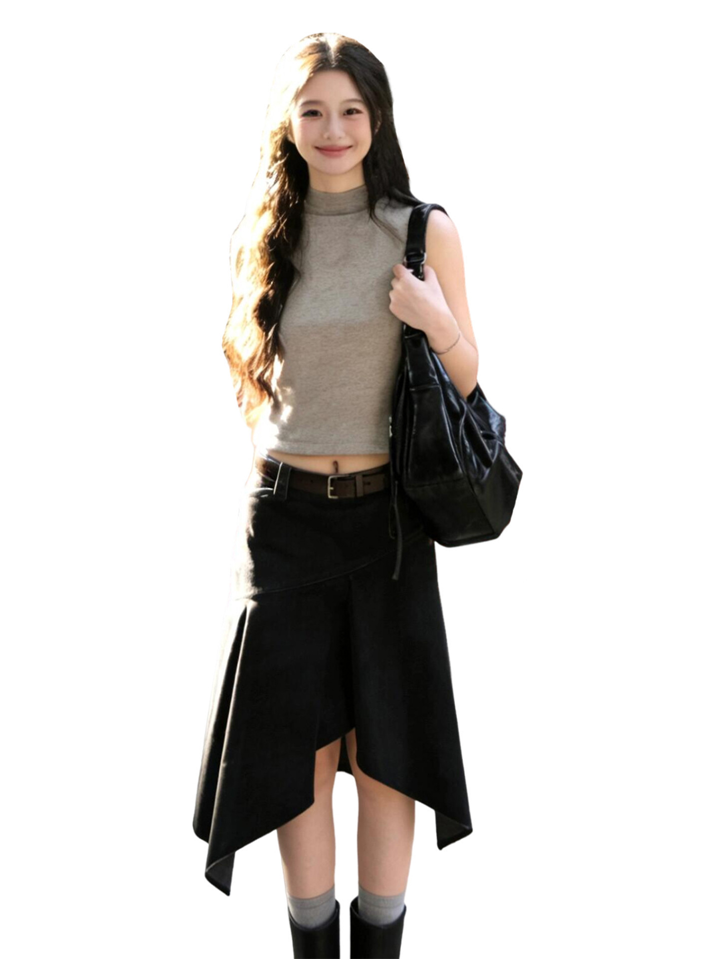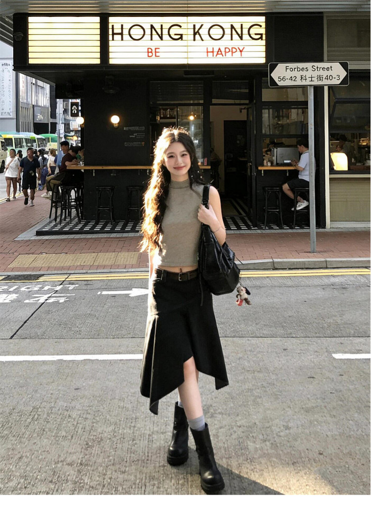 韩系高级感黑色牛仔半身连衣裙子女夏季2026新款超火穿搭一整套装