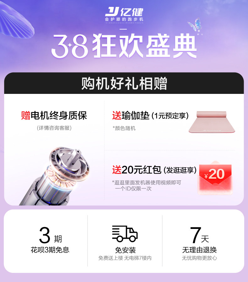 亿健ELF跑步机家用款小型可折叠多功能静音家庭式室内健身房专用