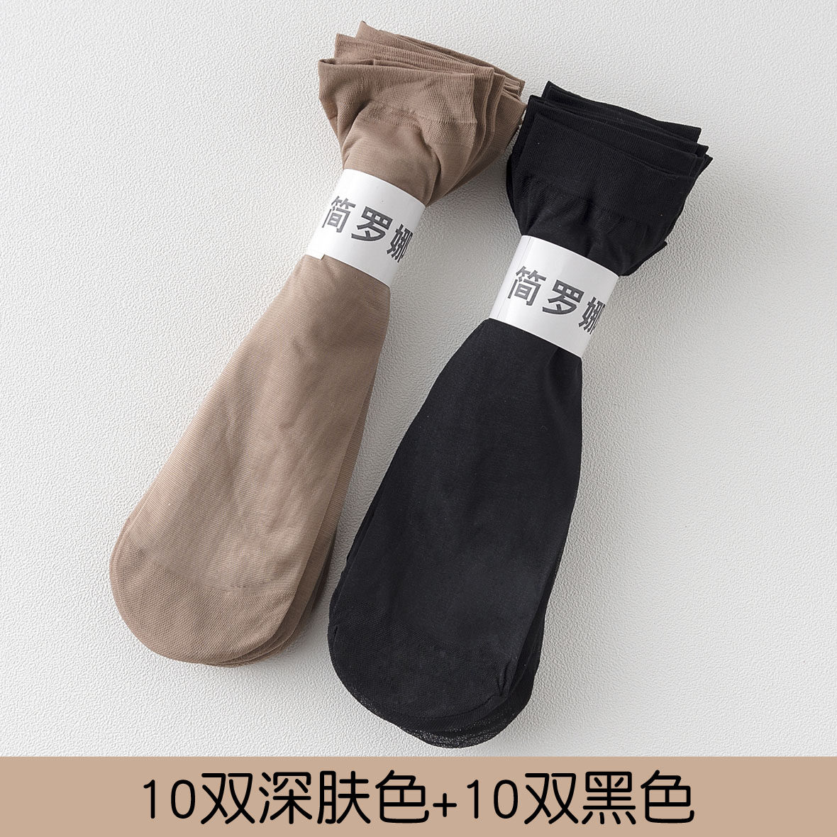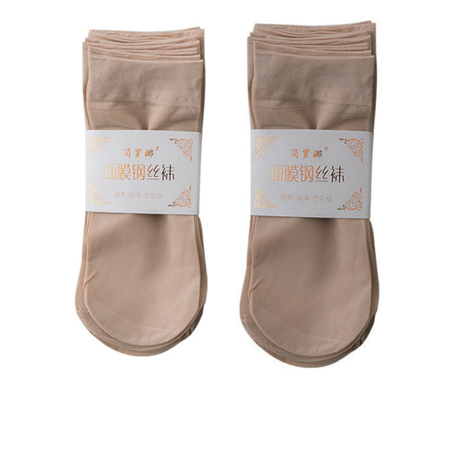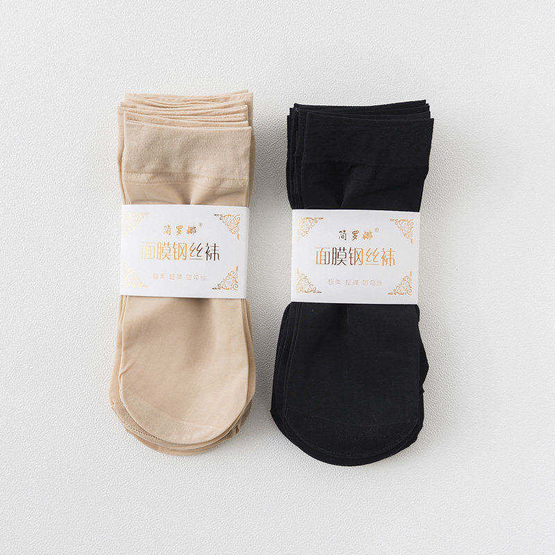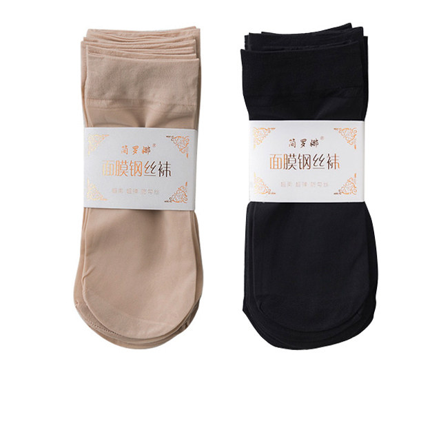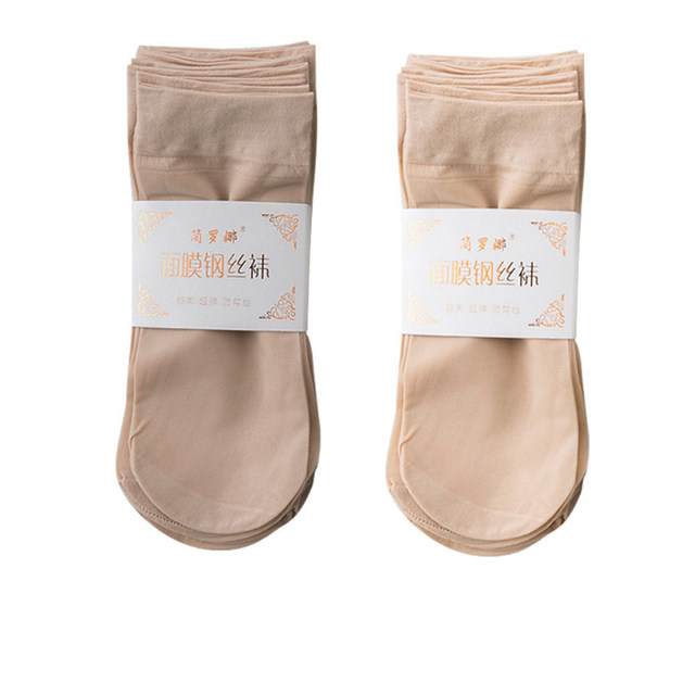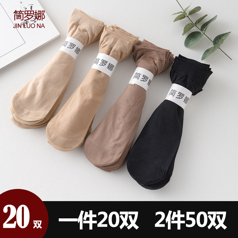 20双装天鹅绒包芯丝肉色女短丝袜防勾丝薄款春夏季黑色丝袜短袜