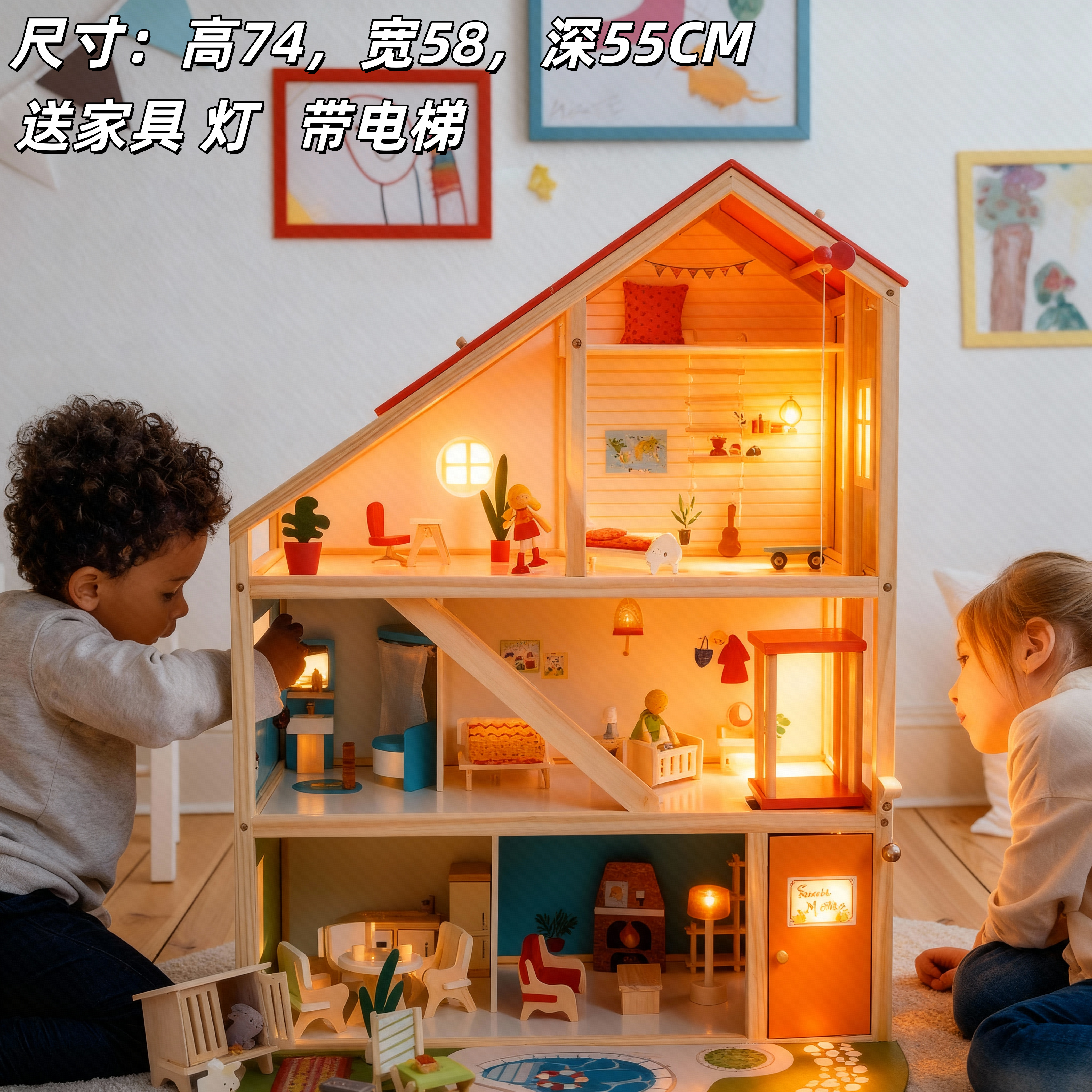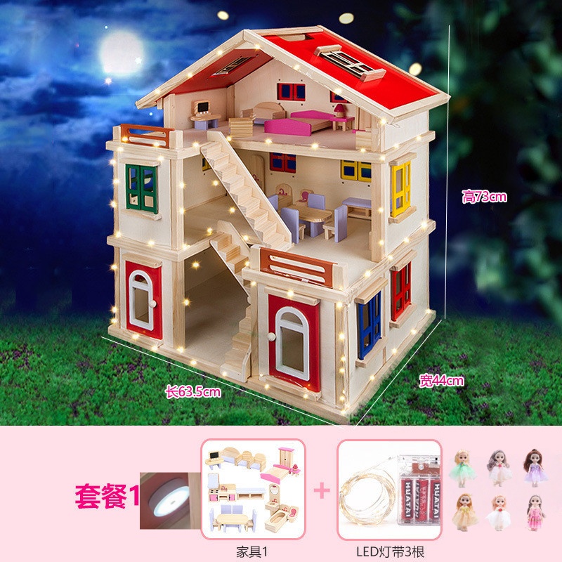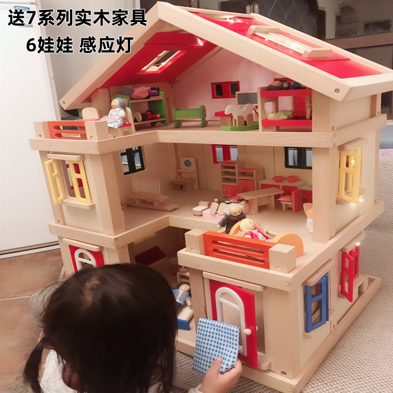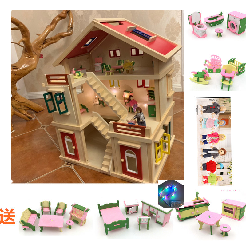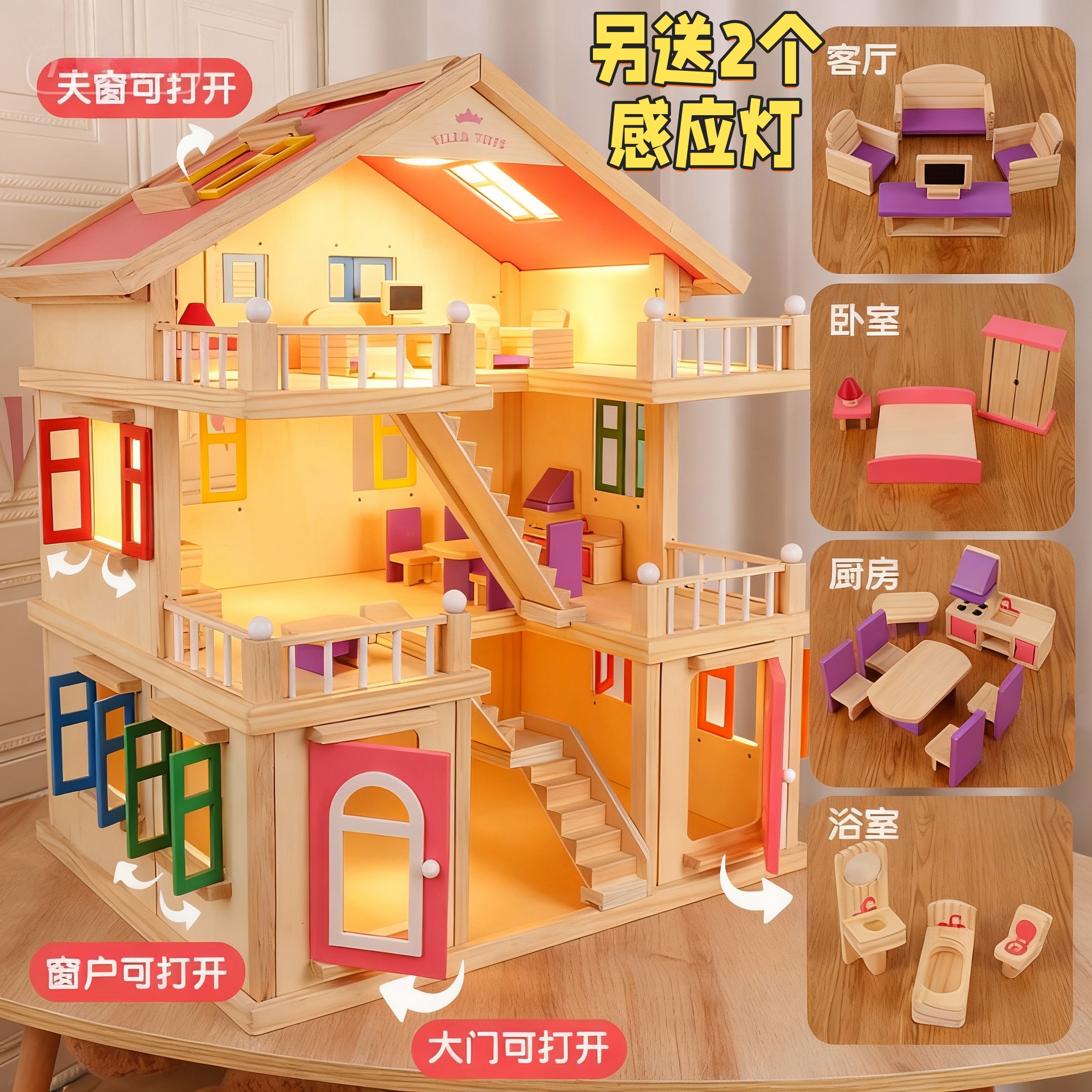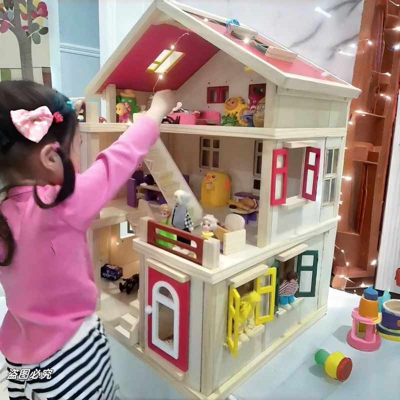 儿童益智拼装木质小屋女孩过家家木屋玩具屋公主别墅木质房子玩具