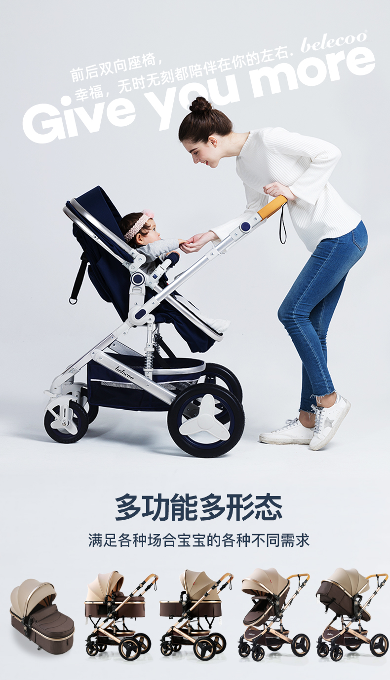 贝丽可婴儿推车可坐可躺轻便双向高景观折叠避震新生儿宝宝手推车