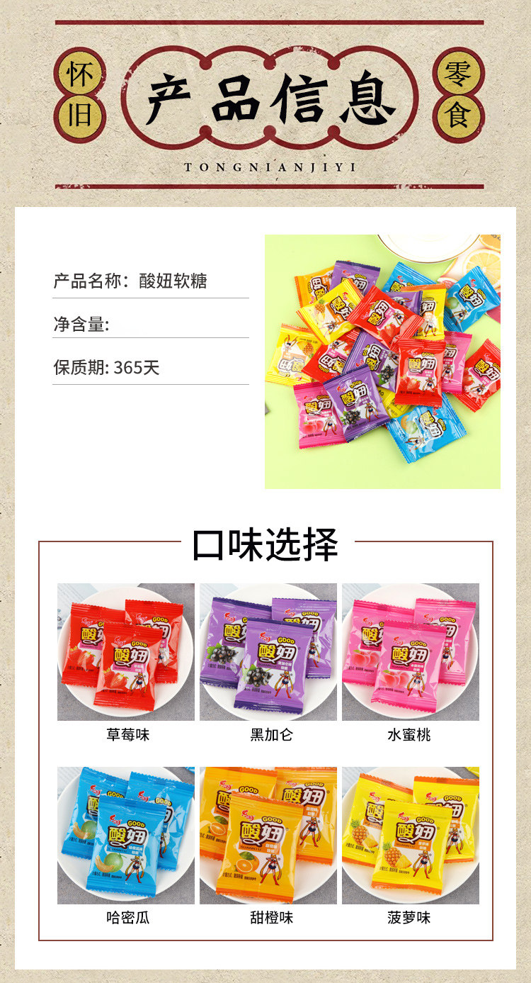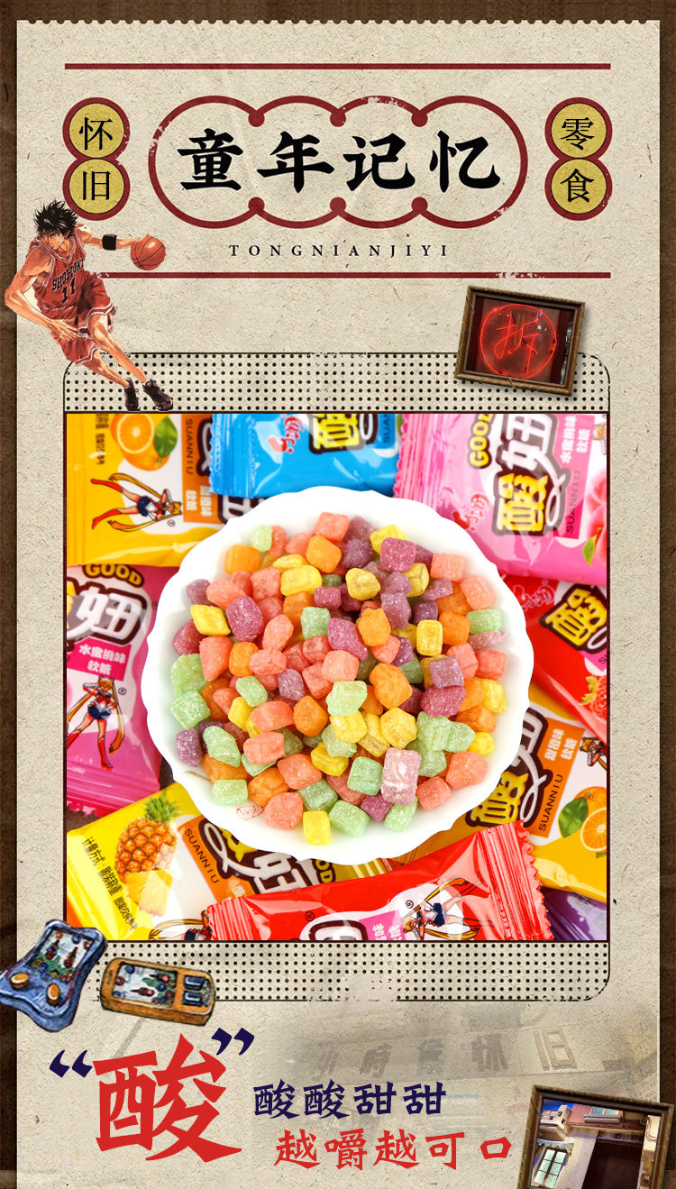 酸妞软糖酸甜儿童90后怀旧小时候5毛学生零食品小吃儿时糖果奖励