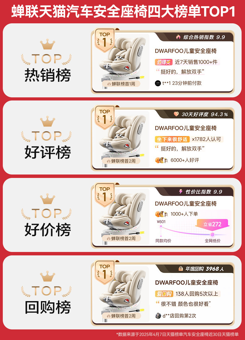 德国DWARFOO儿童安全座椅汽车用婴儿宝宝车载0到12岁便携式坐椅躺