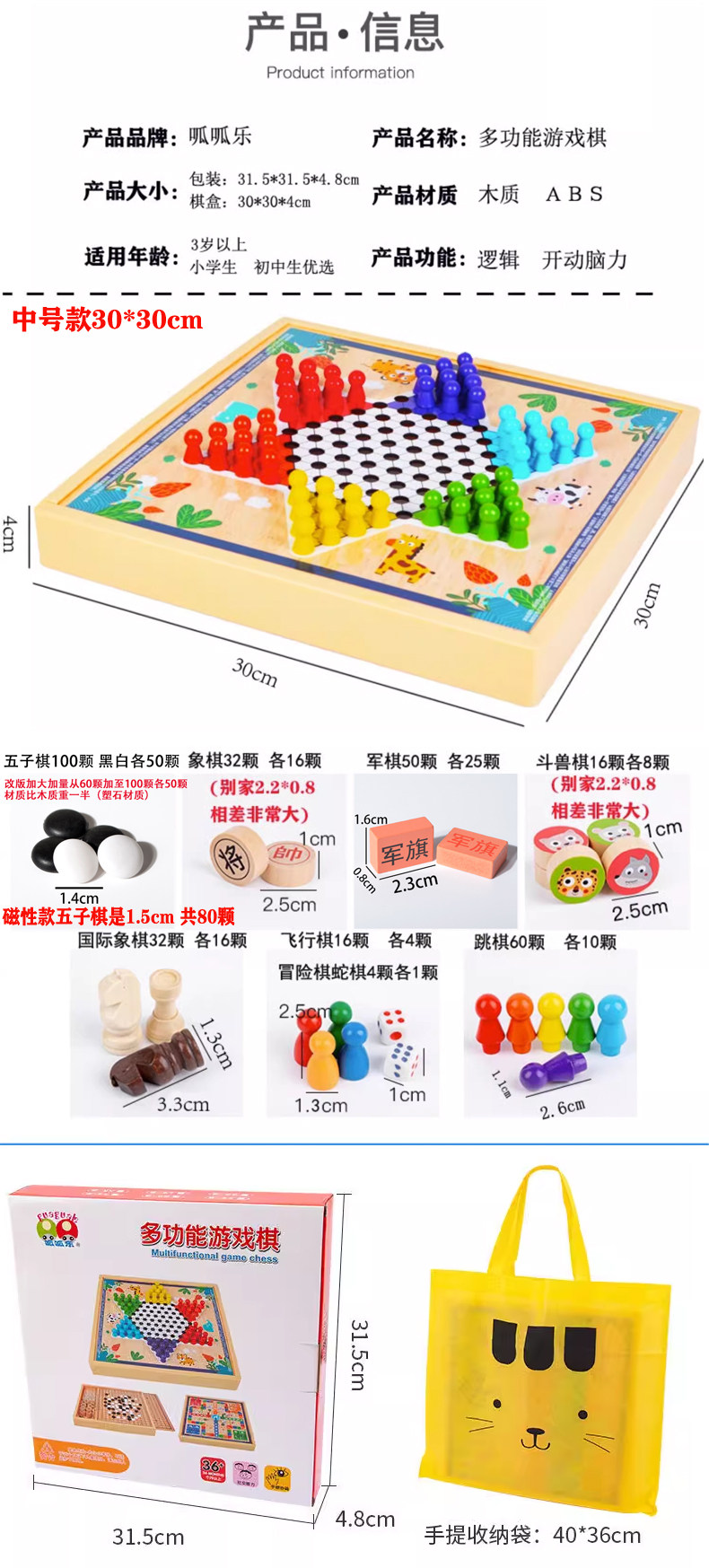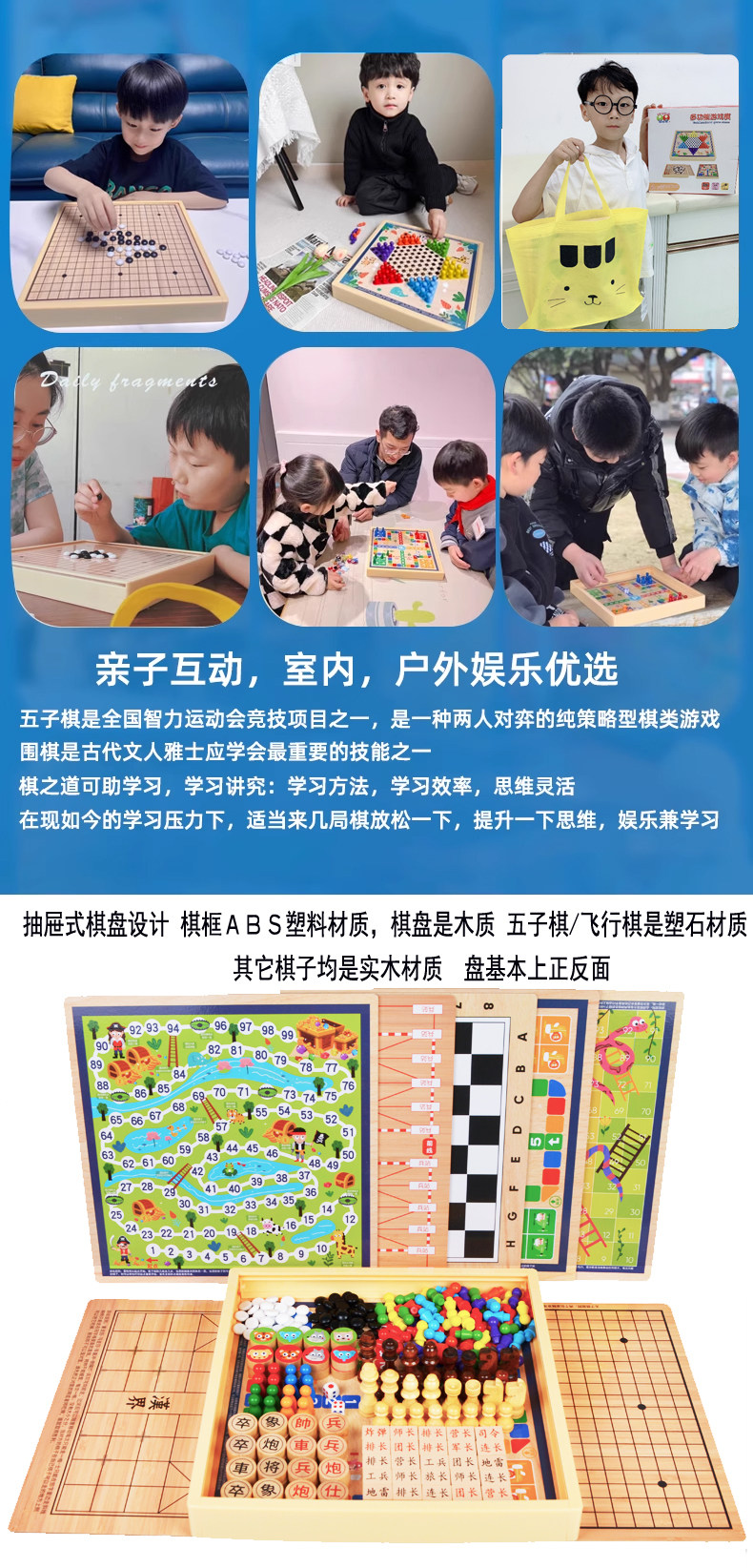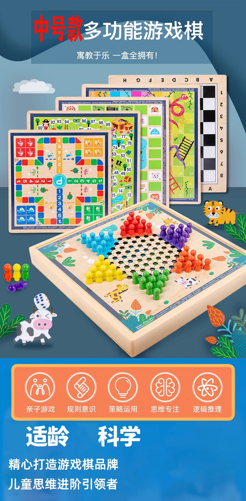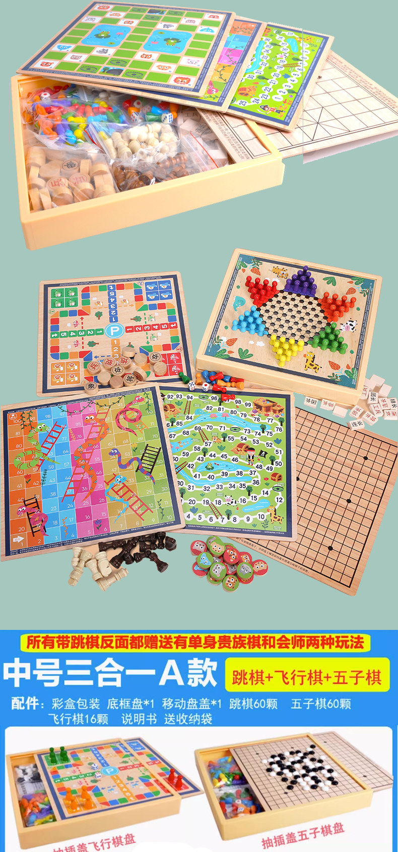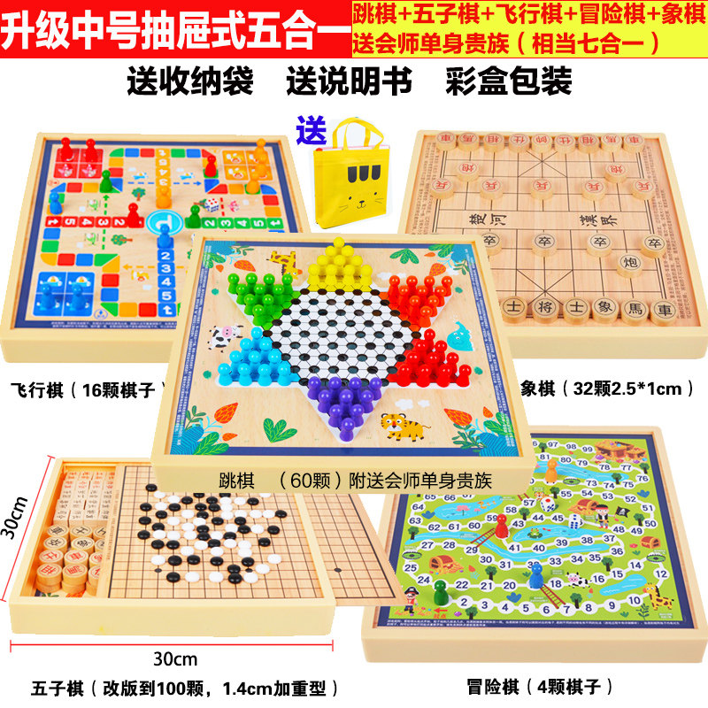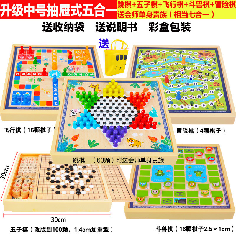 飞行棋五子棋儿童早教益智跳棋多功能游戏合一棋类小学生智力玩具
