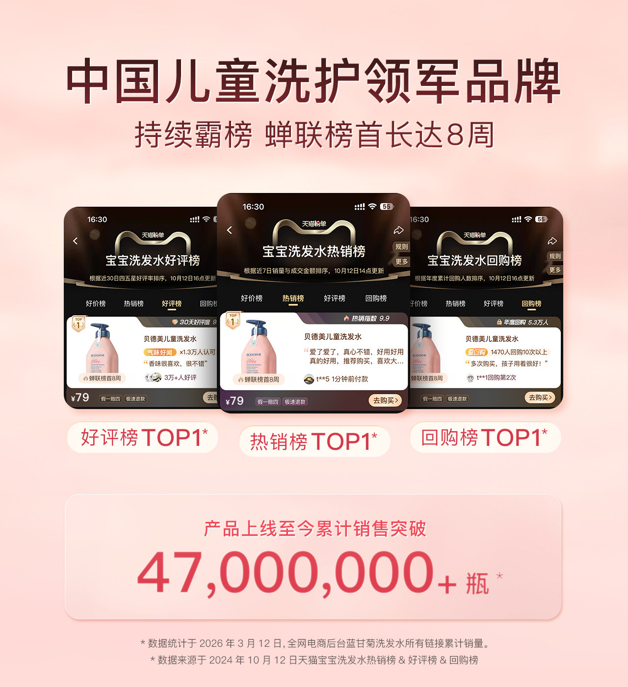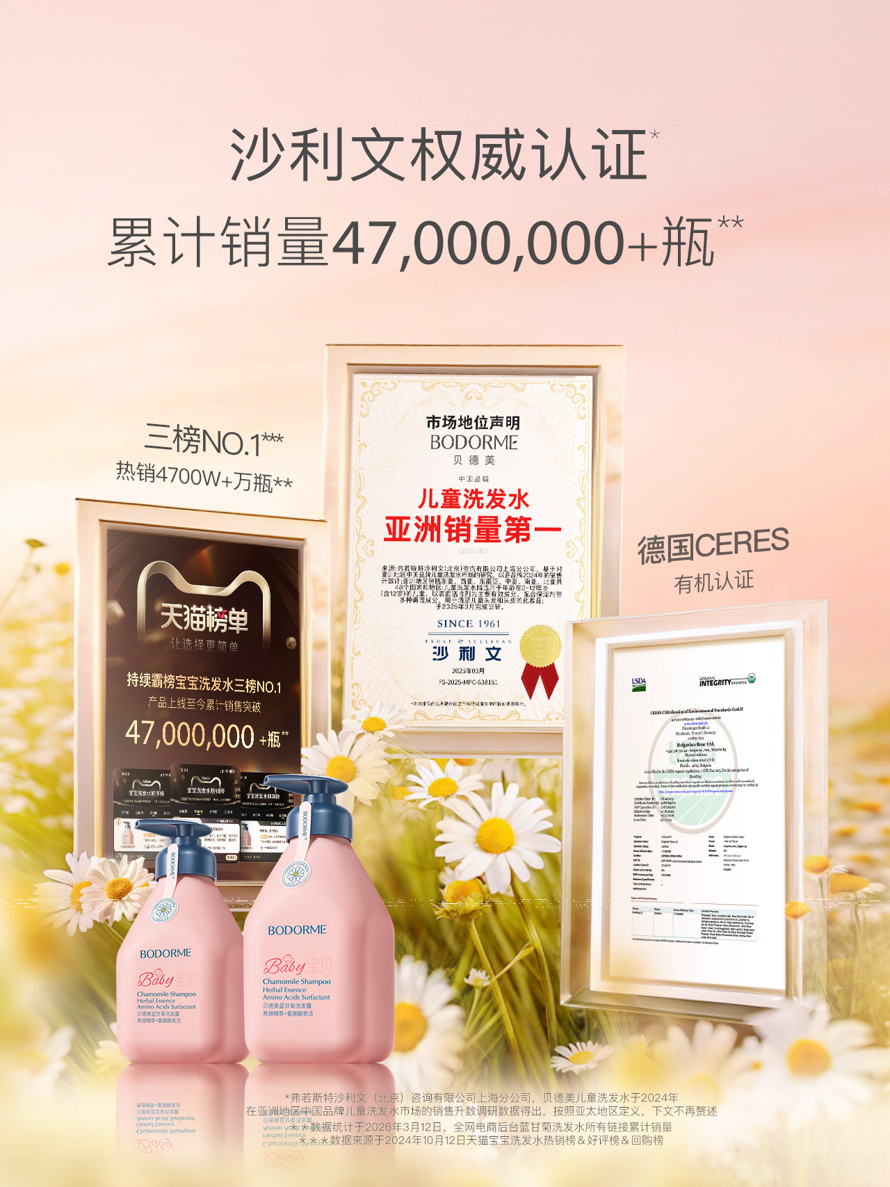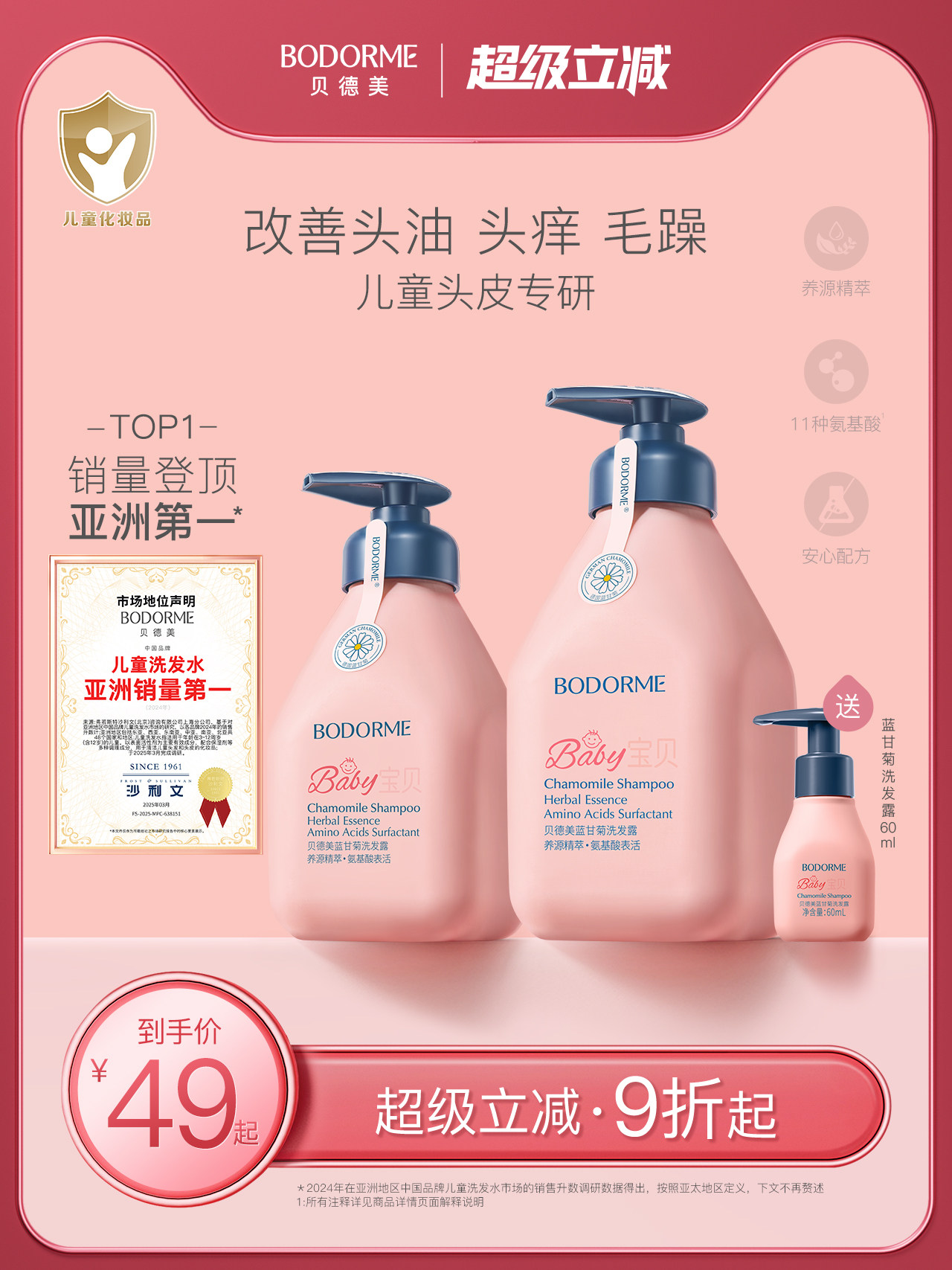 贝德美儿童洗发水儿专用0-15宝宝控油去屑蓬松青少年中大童洗头膏