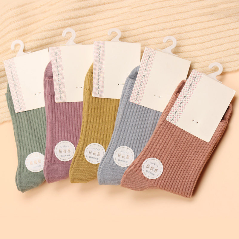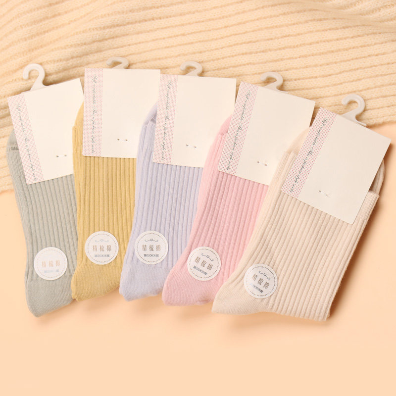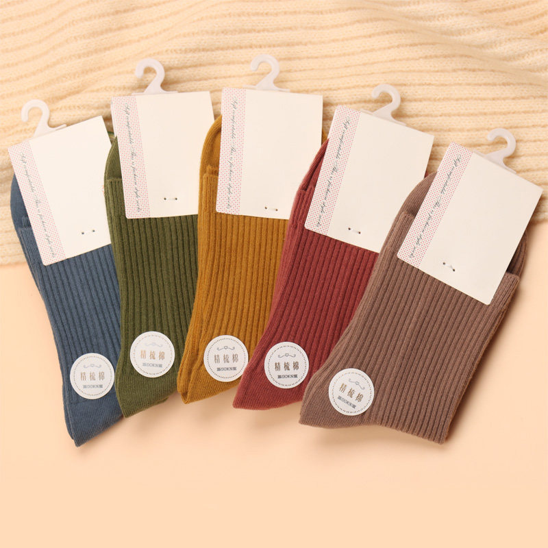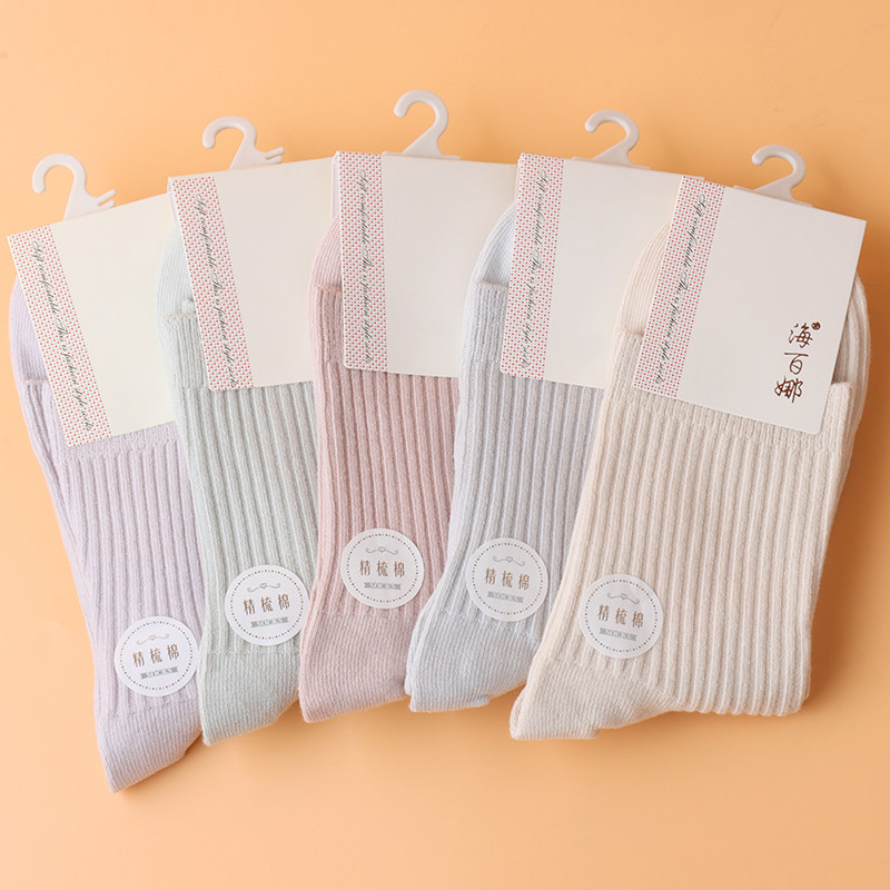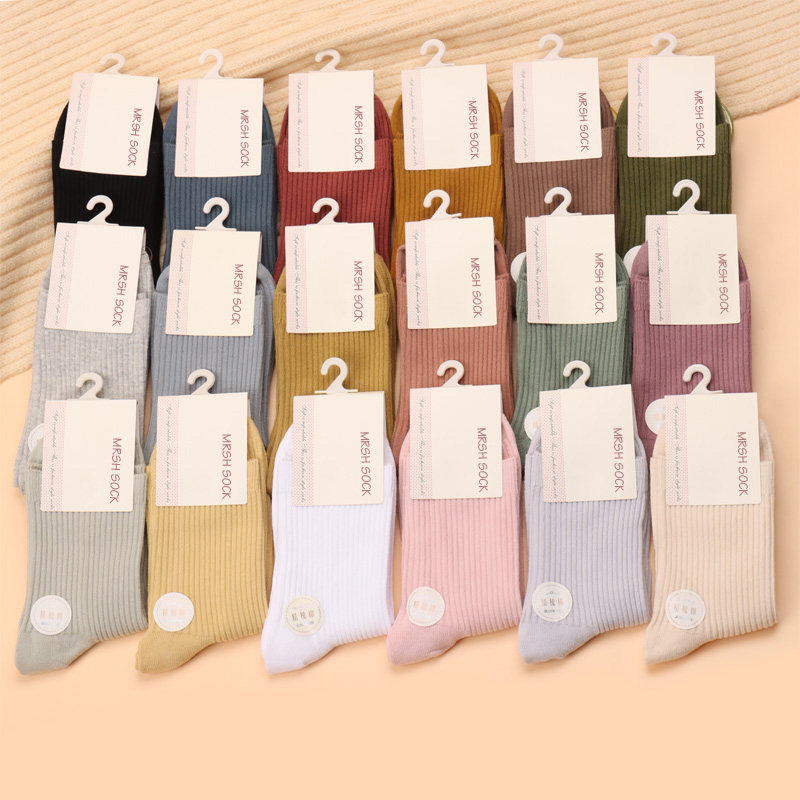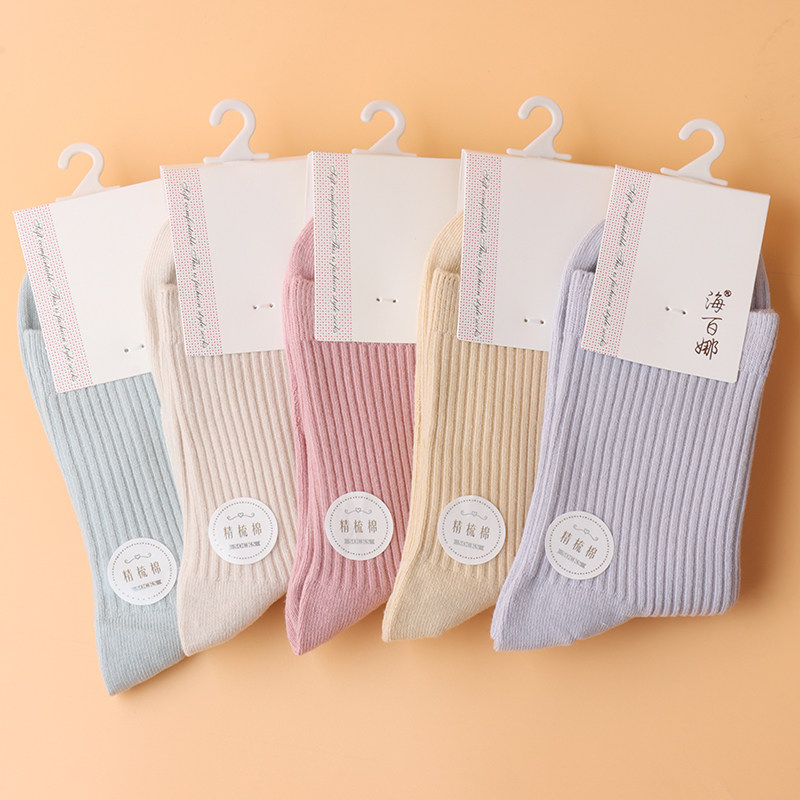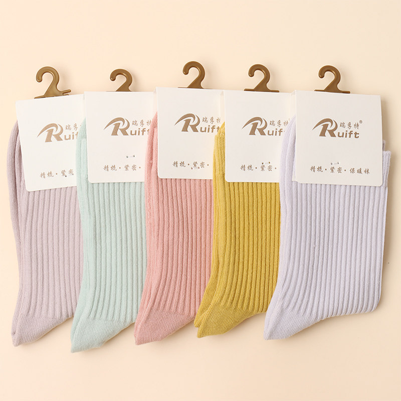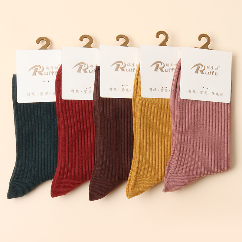 袜子女秋冬季纯色加厚中筒女袜不掉色保暖棉质休闲中长腰女士棉袜