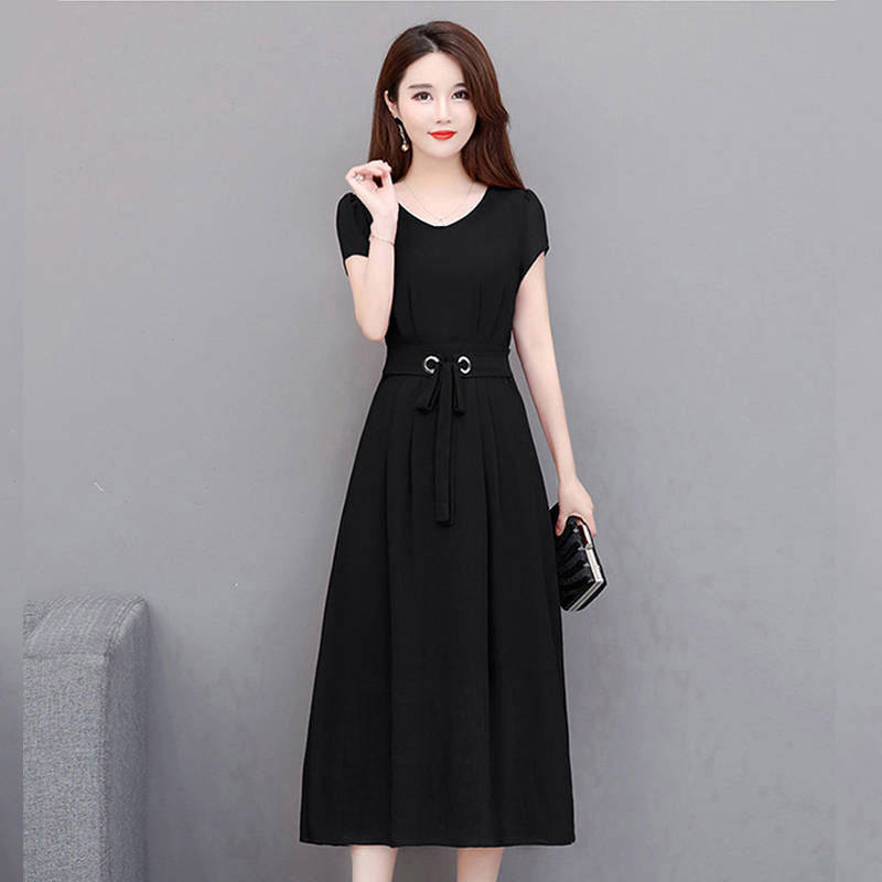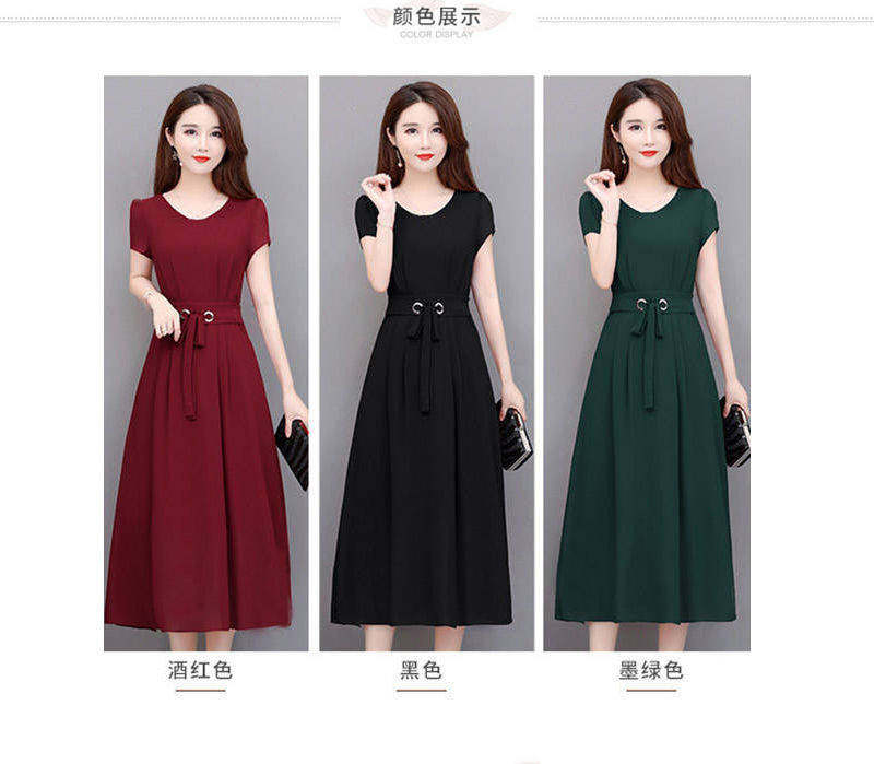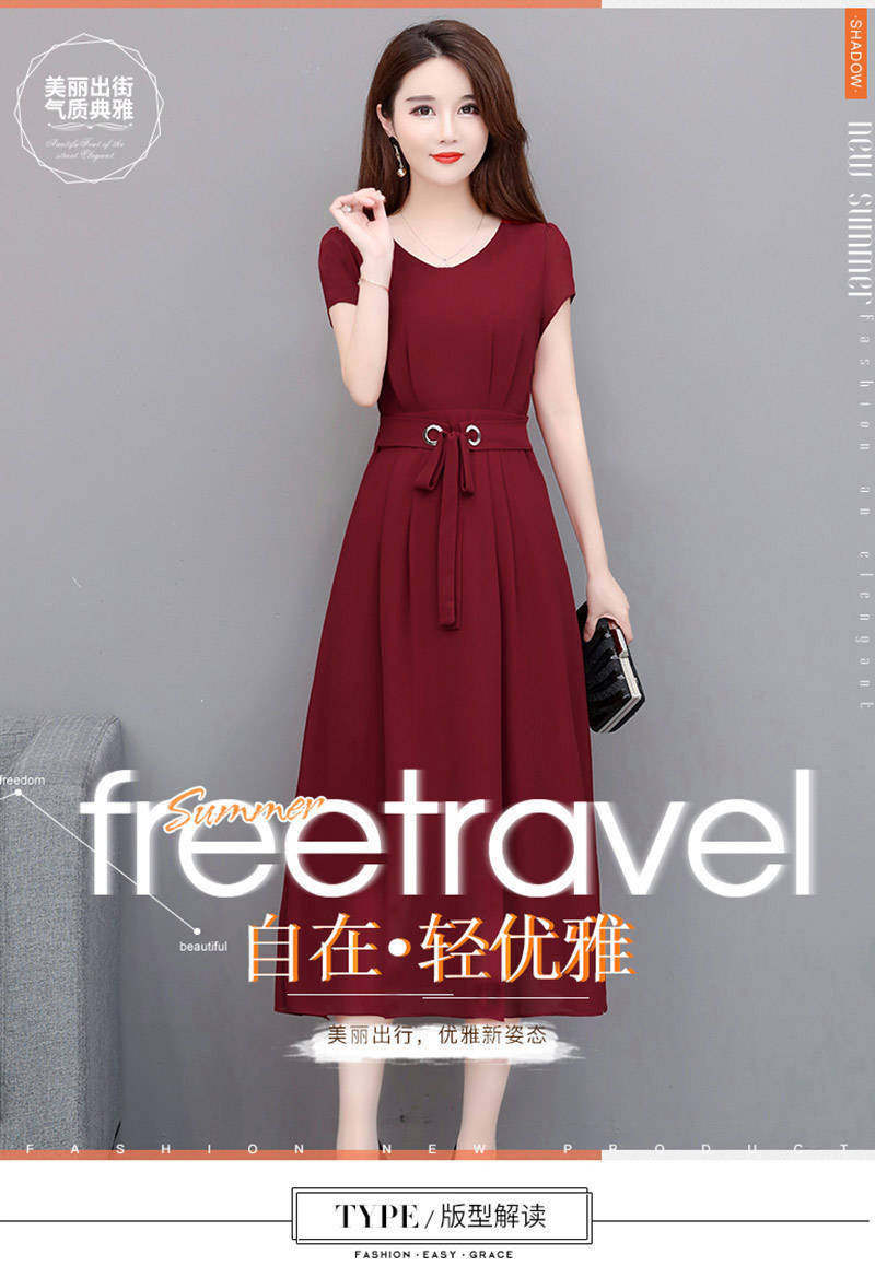 新款中老年妈妈洋气大码连衣裙中长款夏装高贵气质短袖显瘦A字裙
