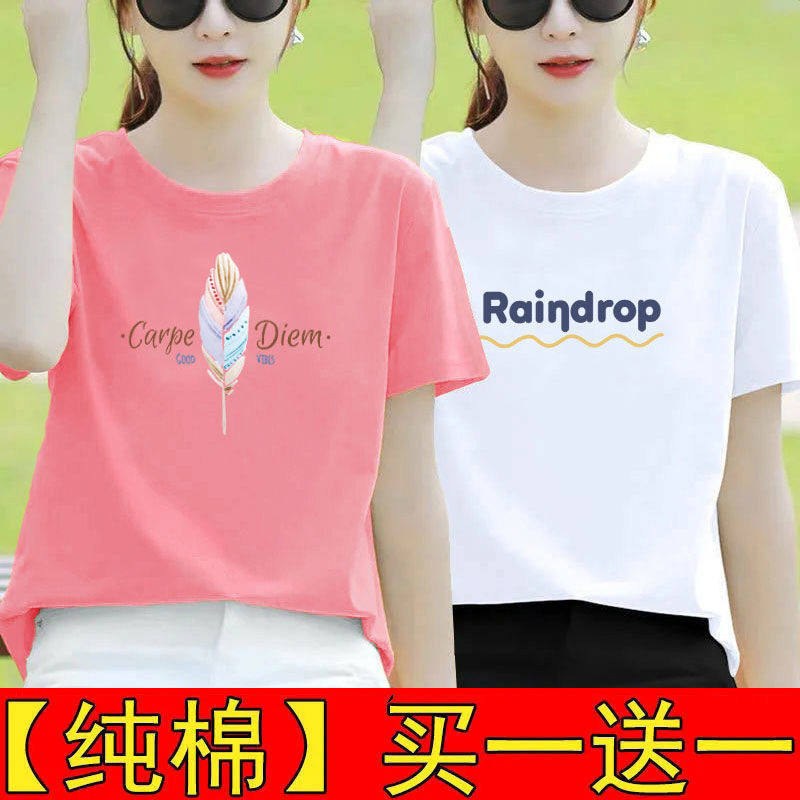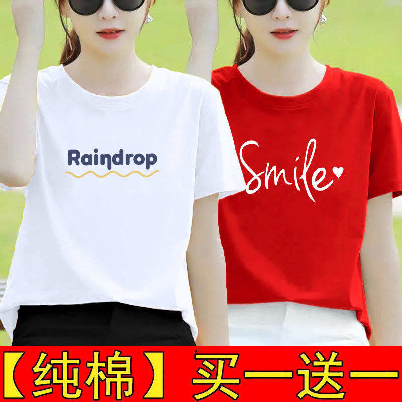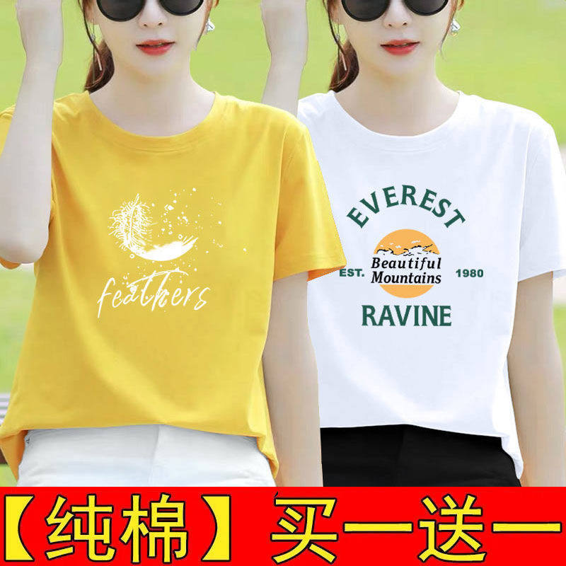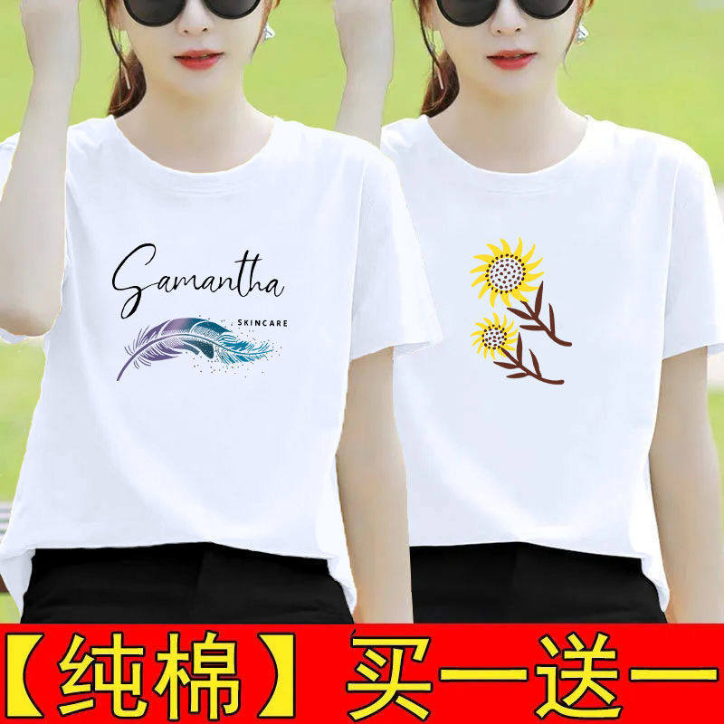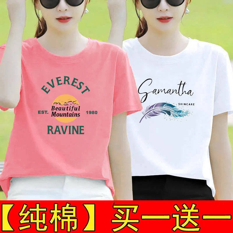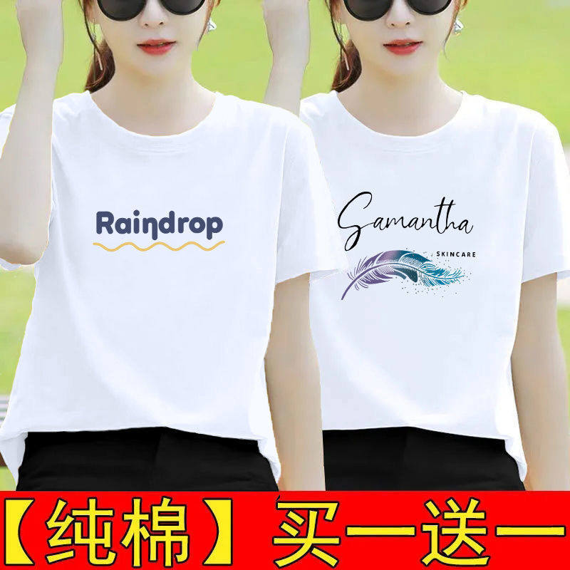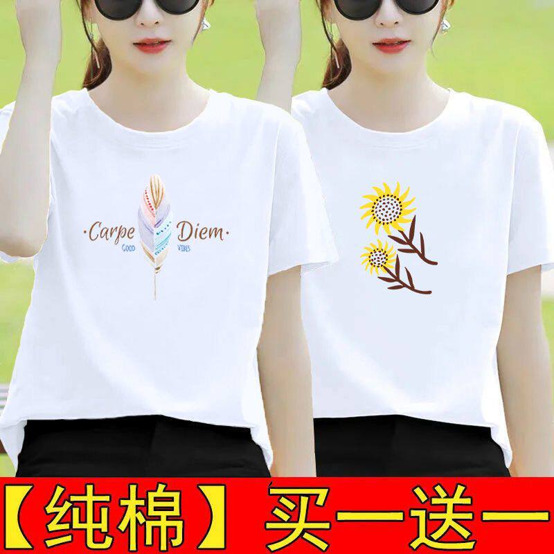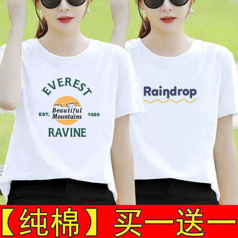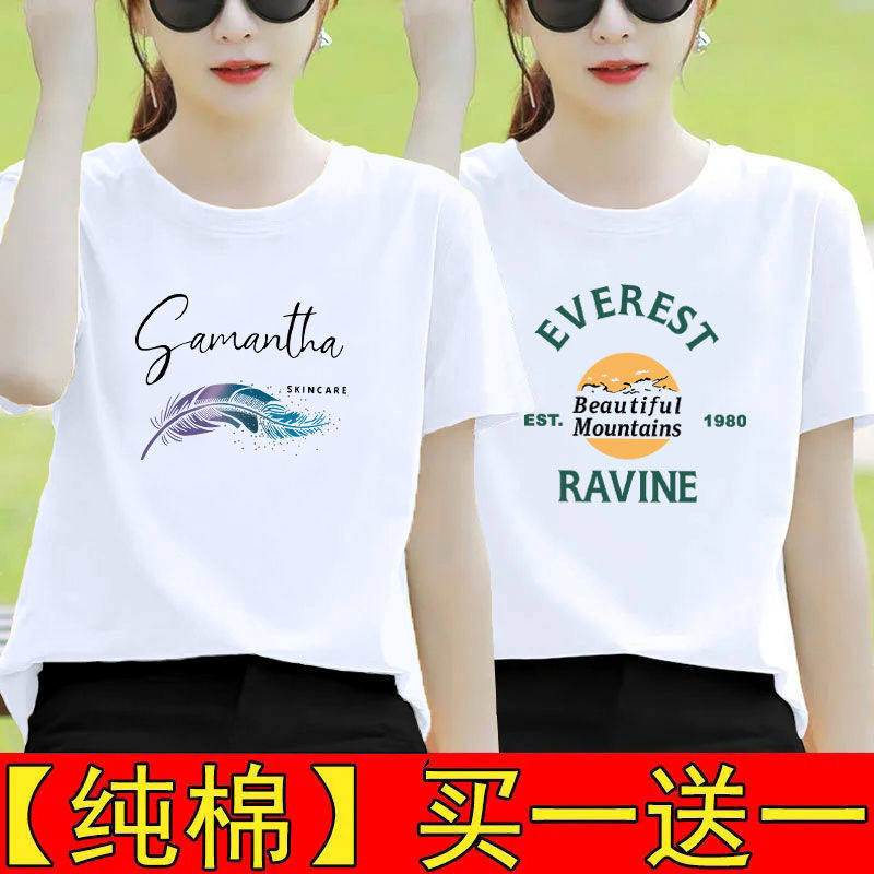 纯棉白色短袖t恤女夏装宽松半袖2025新款体恤打底衫印花百搭上衣