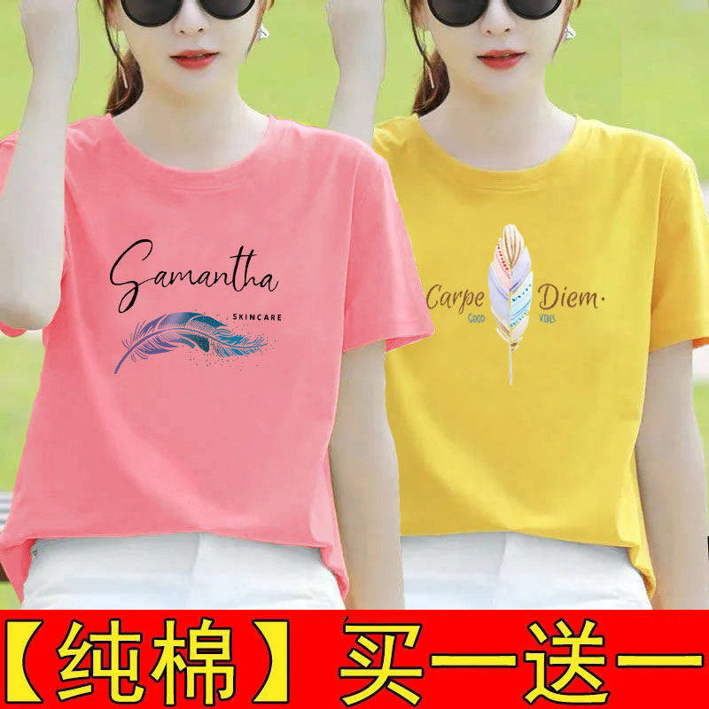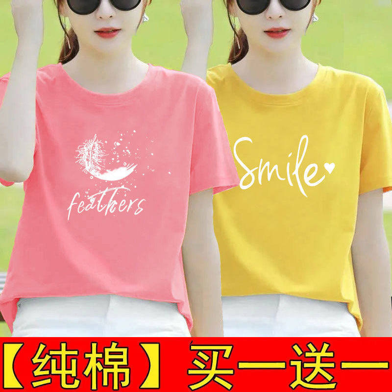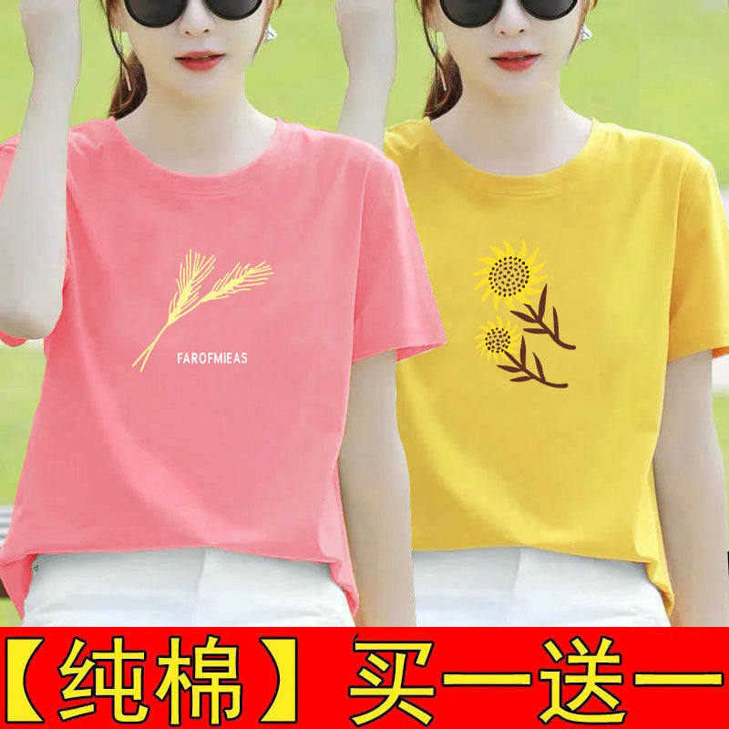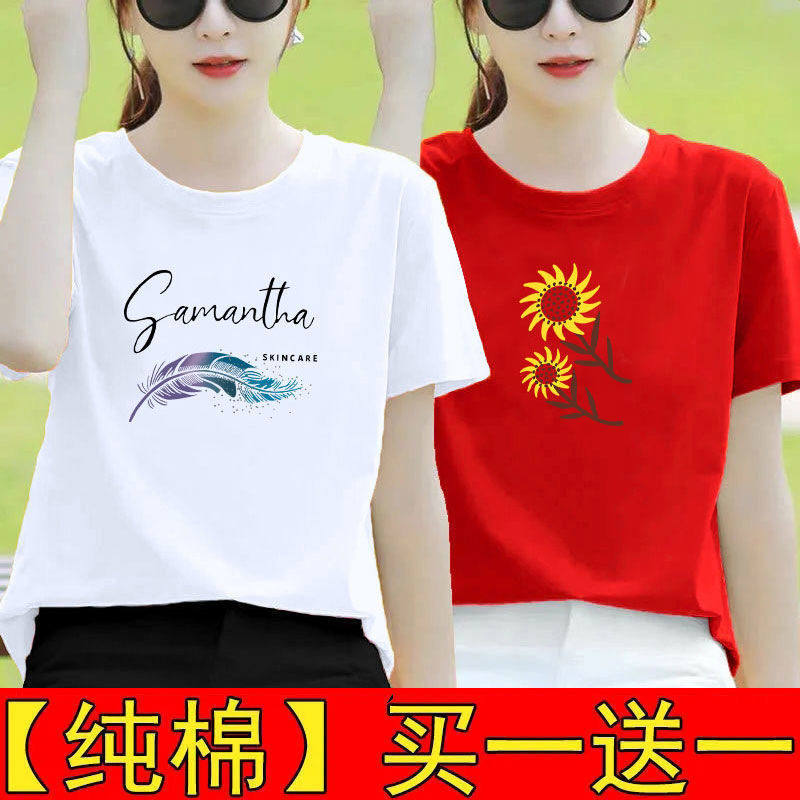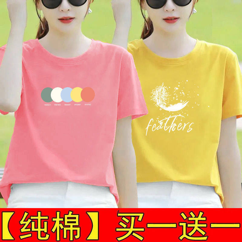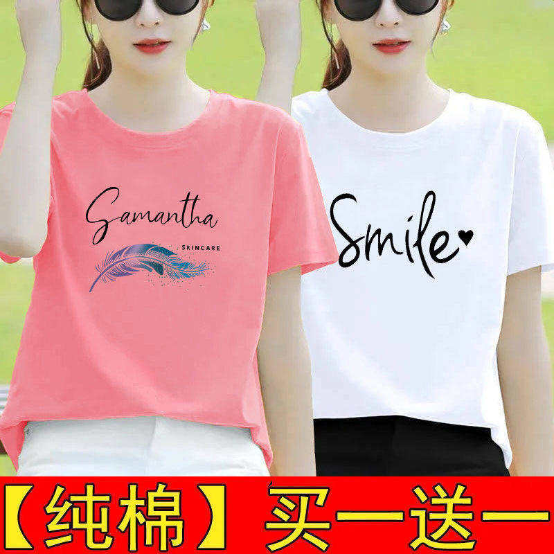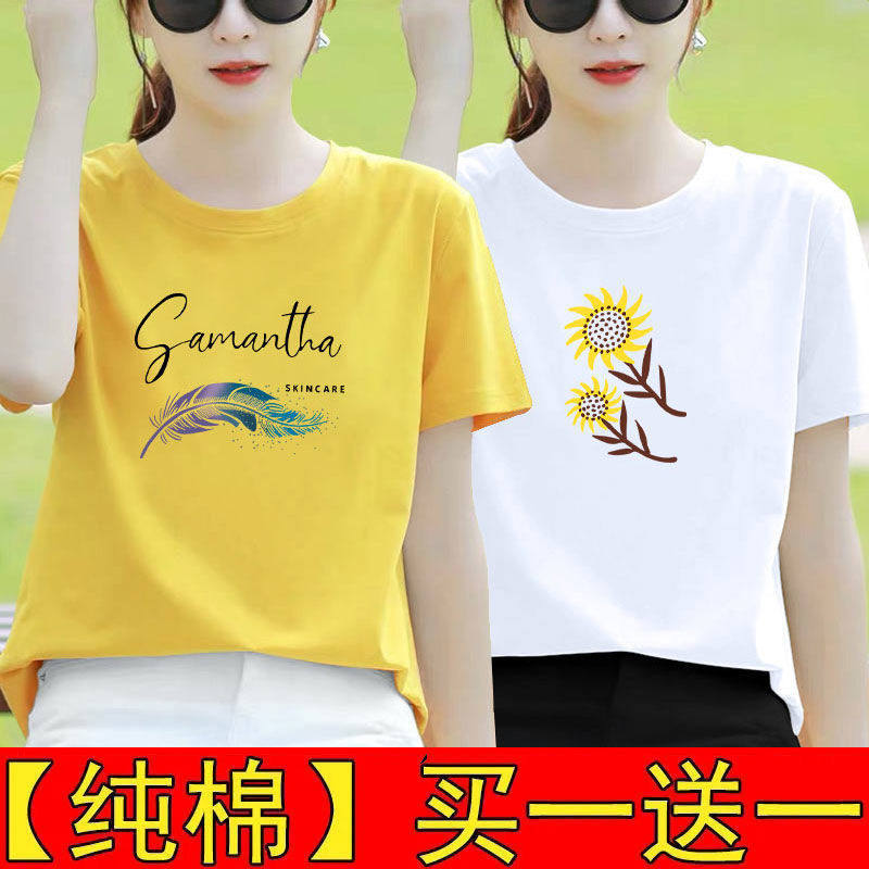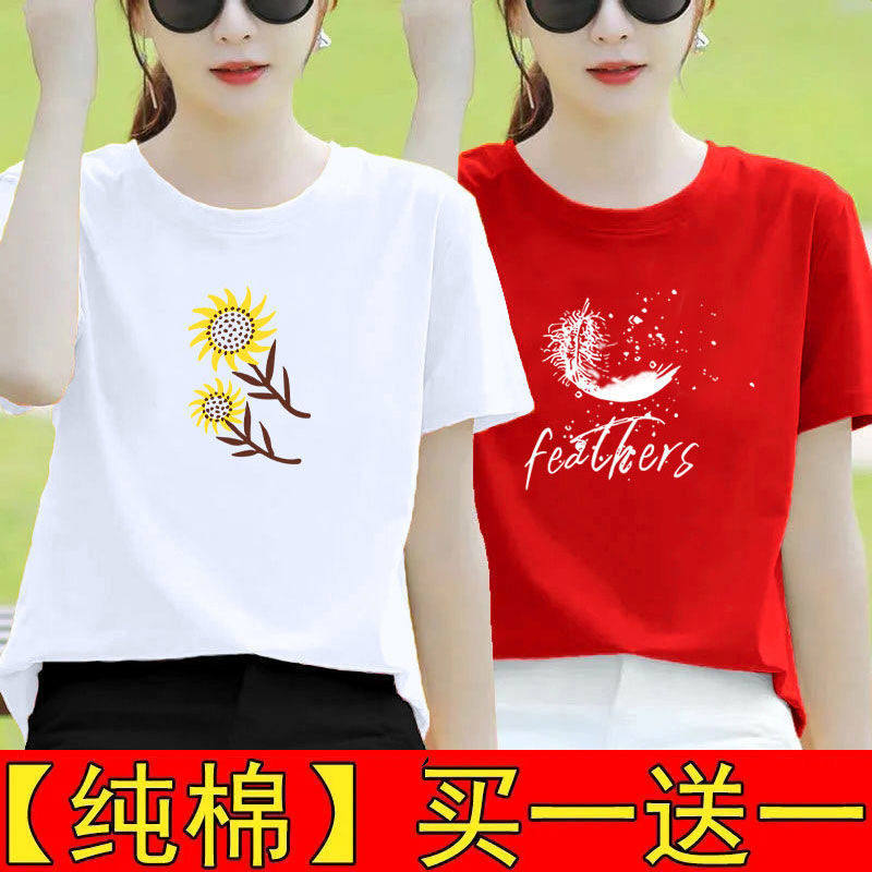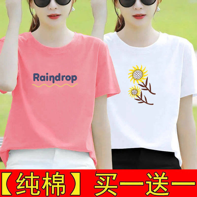 纯棉白色短袖t恤女夏装宽松半袖2025新款体恤打底衫印花百搭上衣