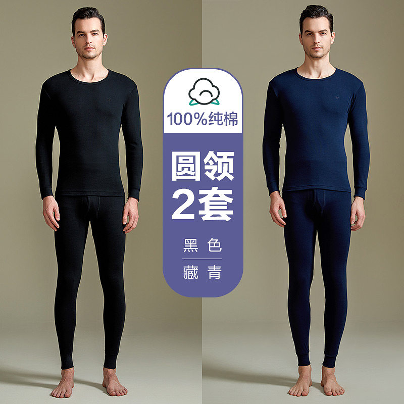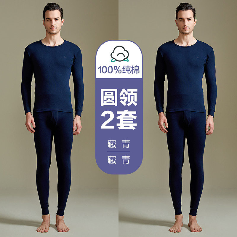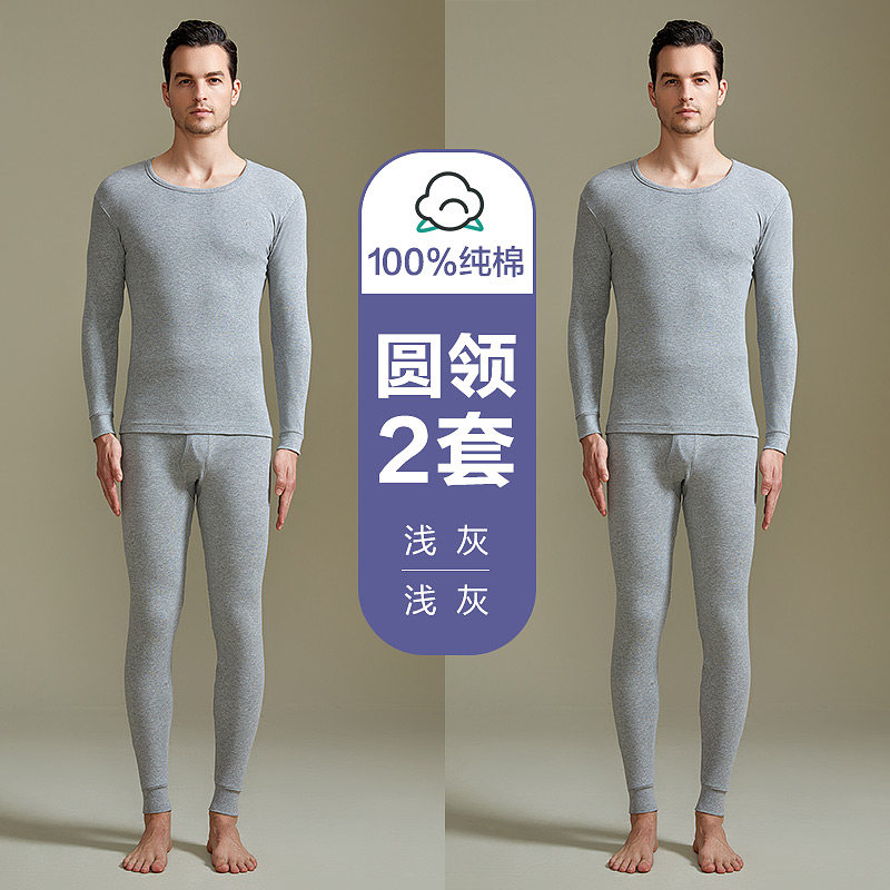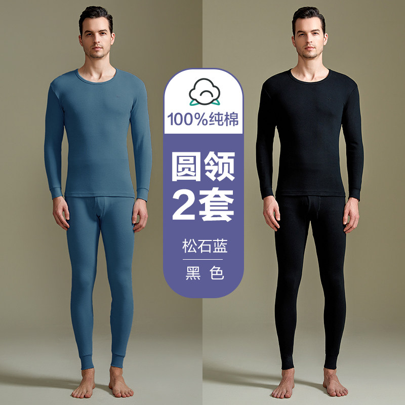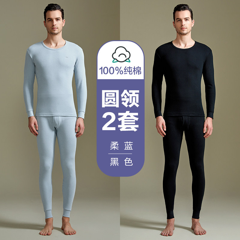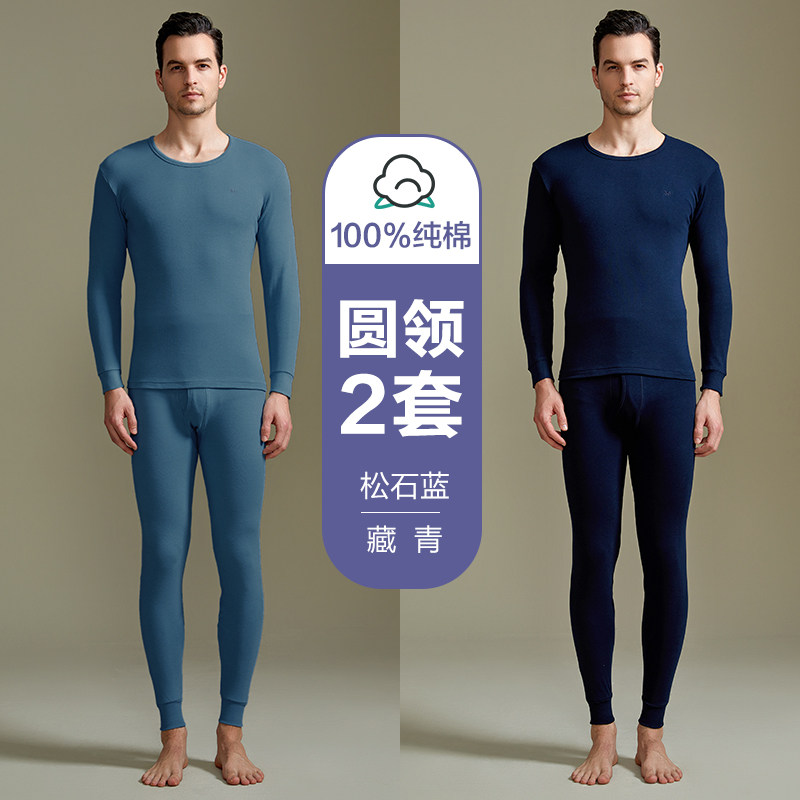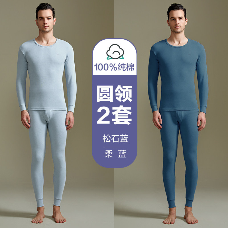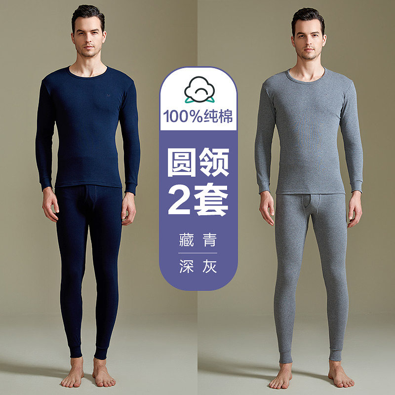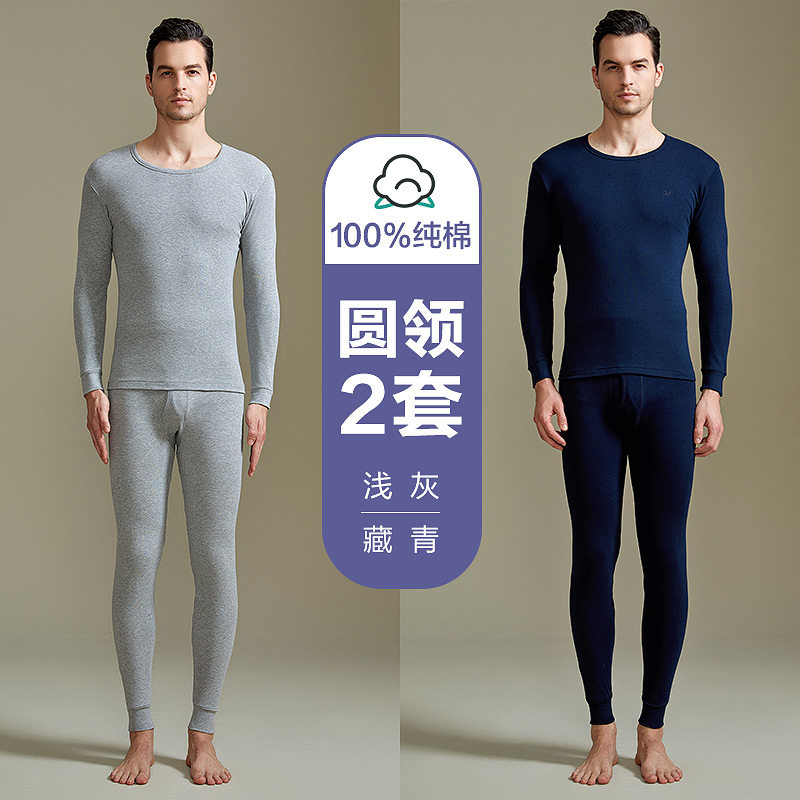 恒源祥秋衣秋裤男士打底全棉毛衫线衣衬裤薄款纯棉保暖内衣套装冬
