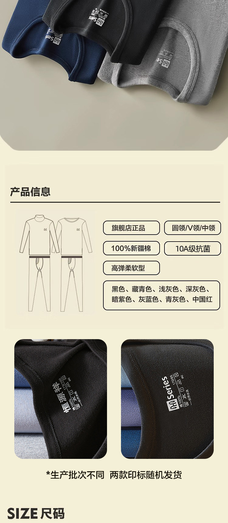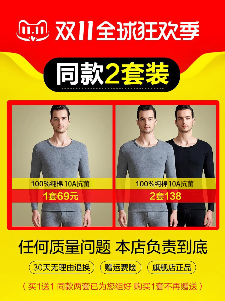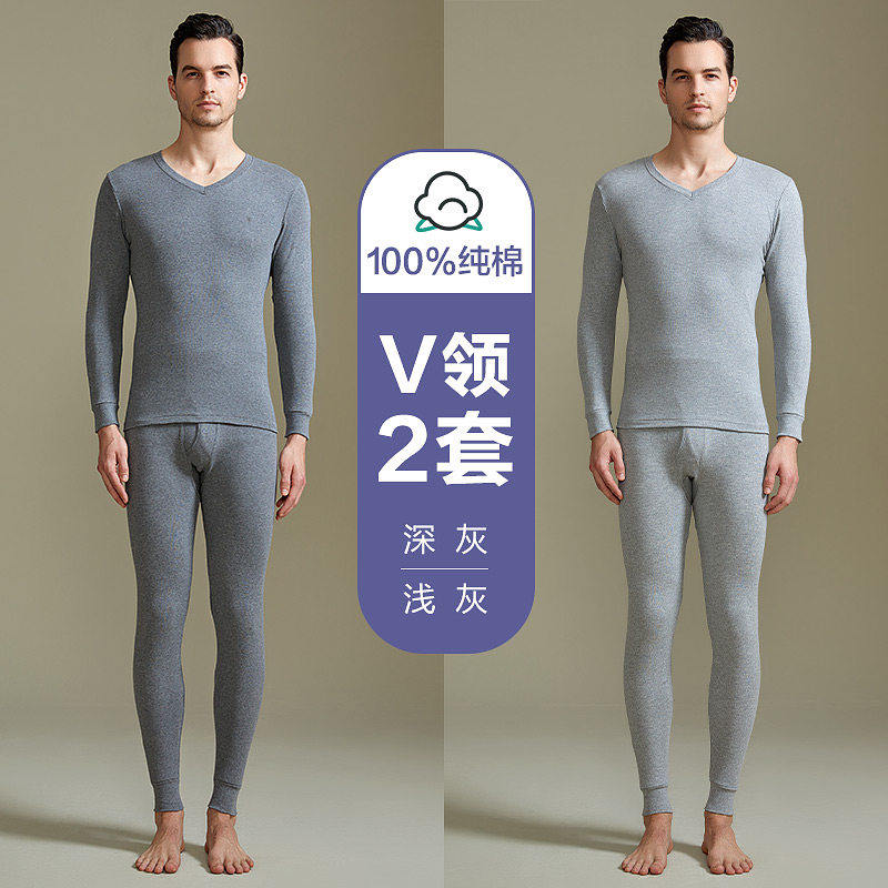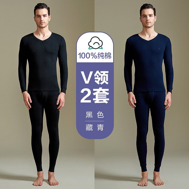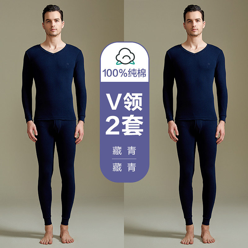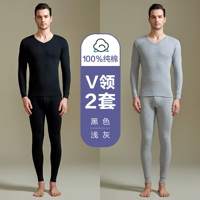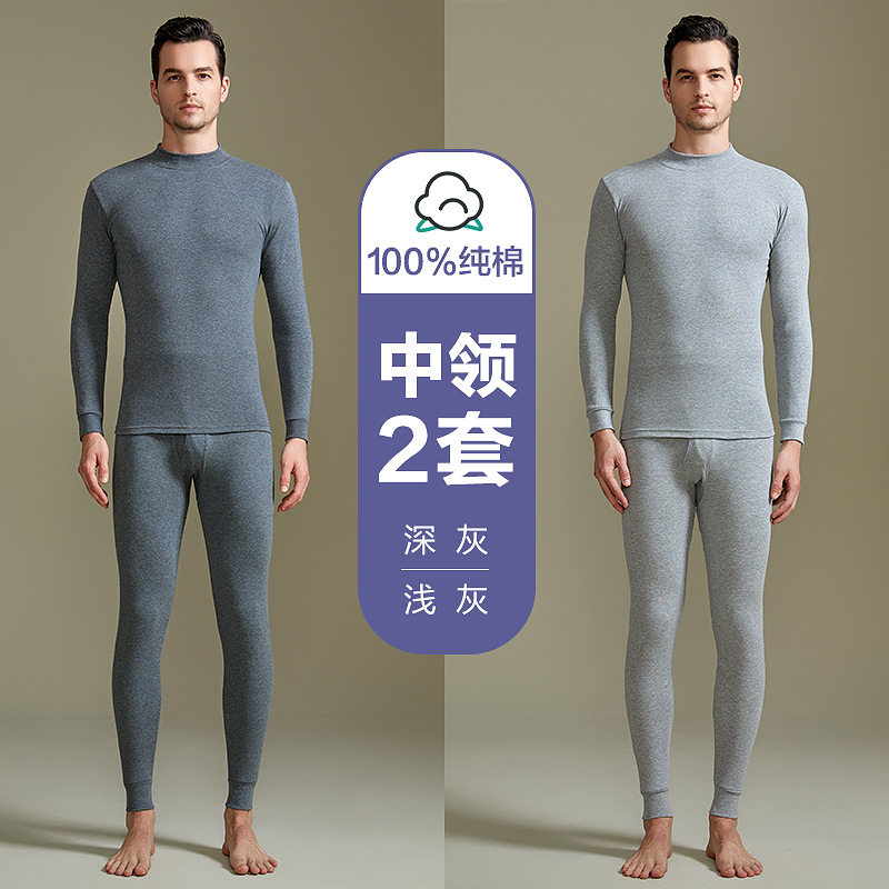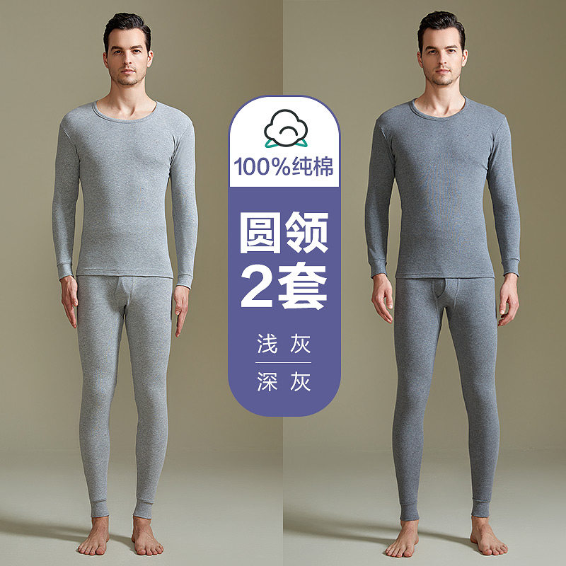 恒源祥秋衣秋裤男士打底全棉毛衫线衣衬裤薄款纯棉保暖内衣套装冬