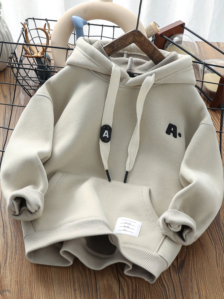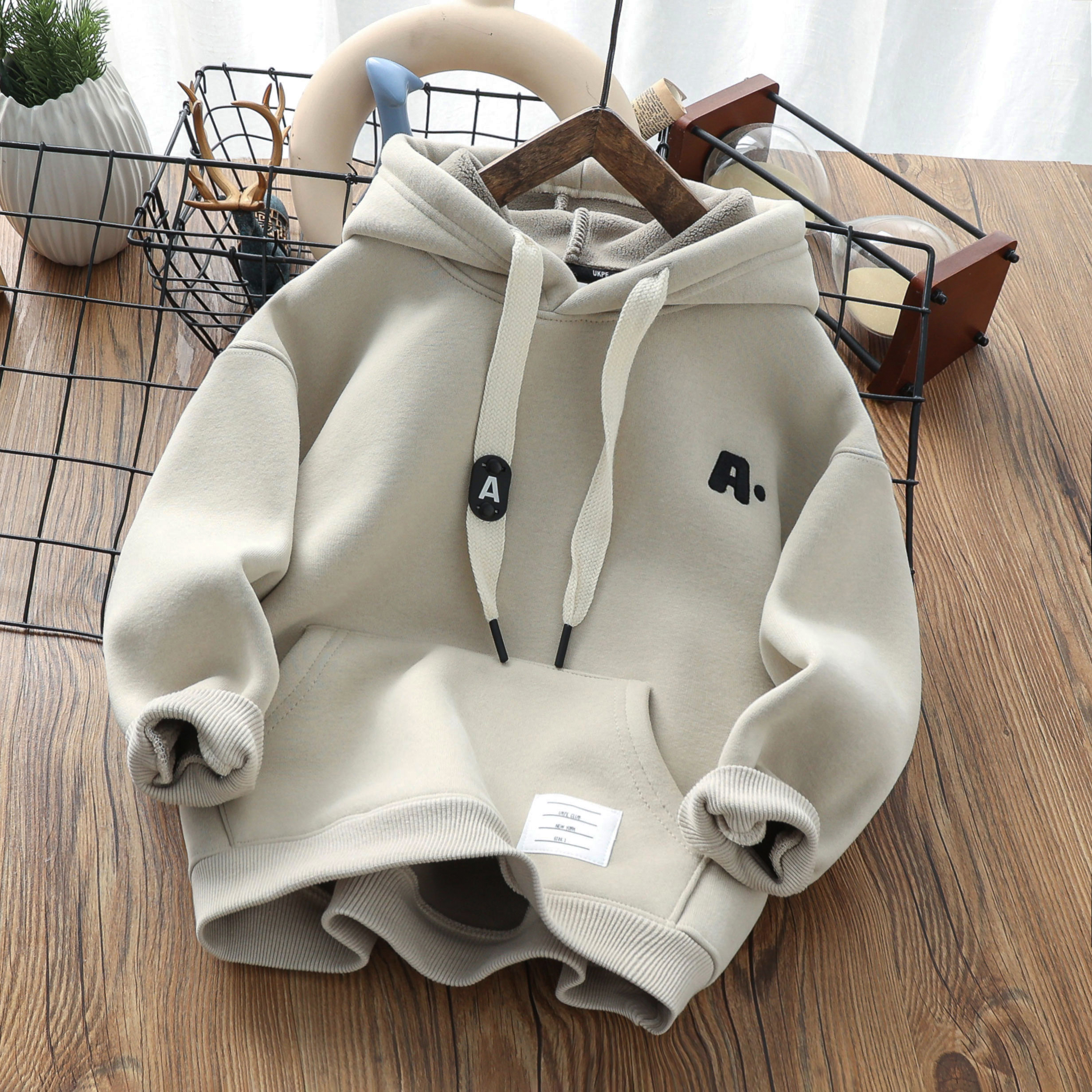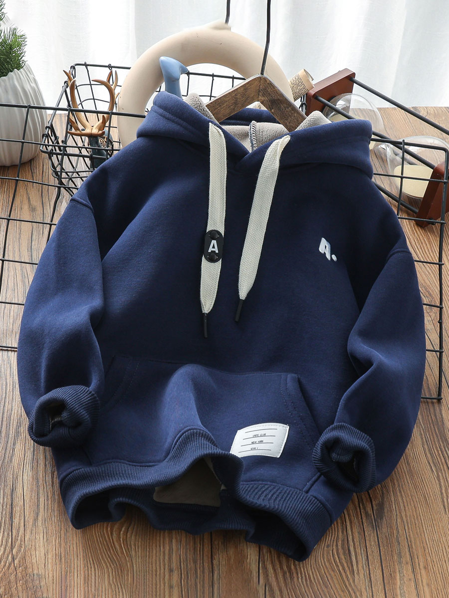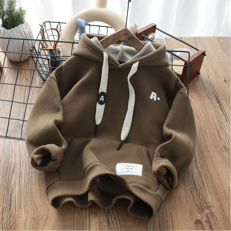 男童冬季加厚羊羔绒卫衣儿童一体复合绒连帽潮上衣中大童保暖绒衫
