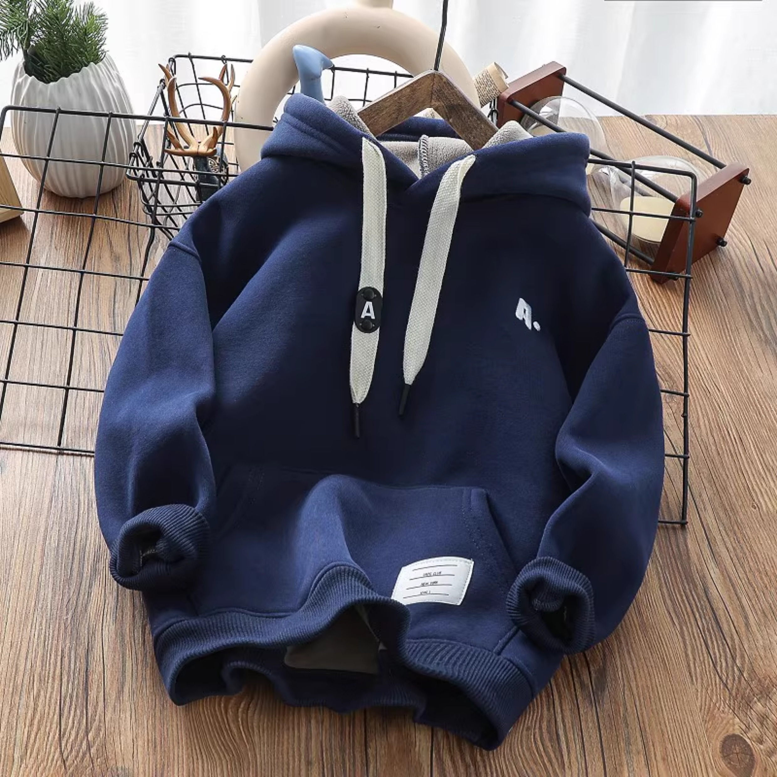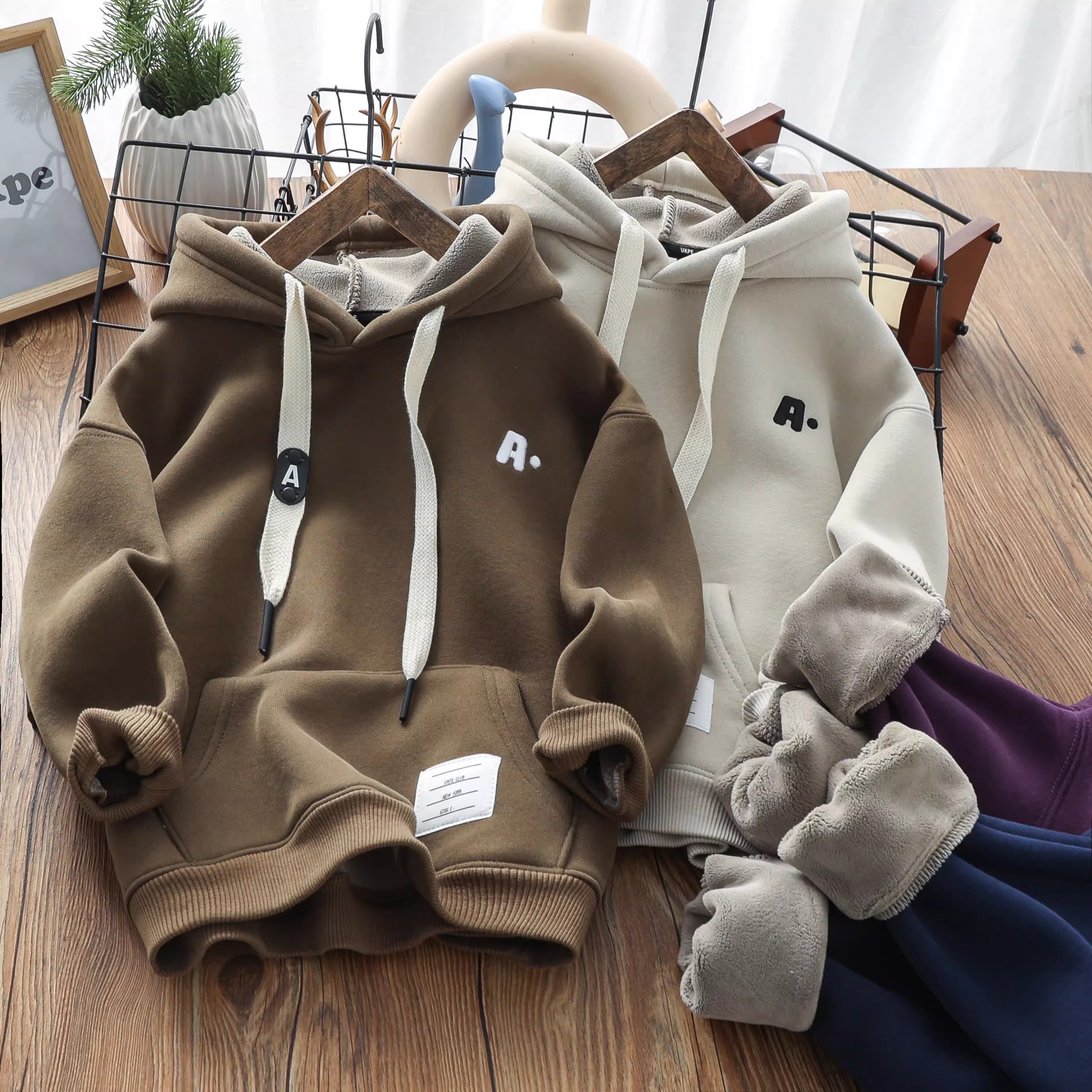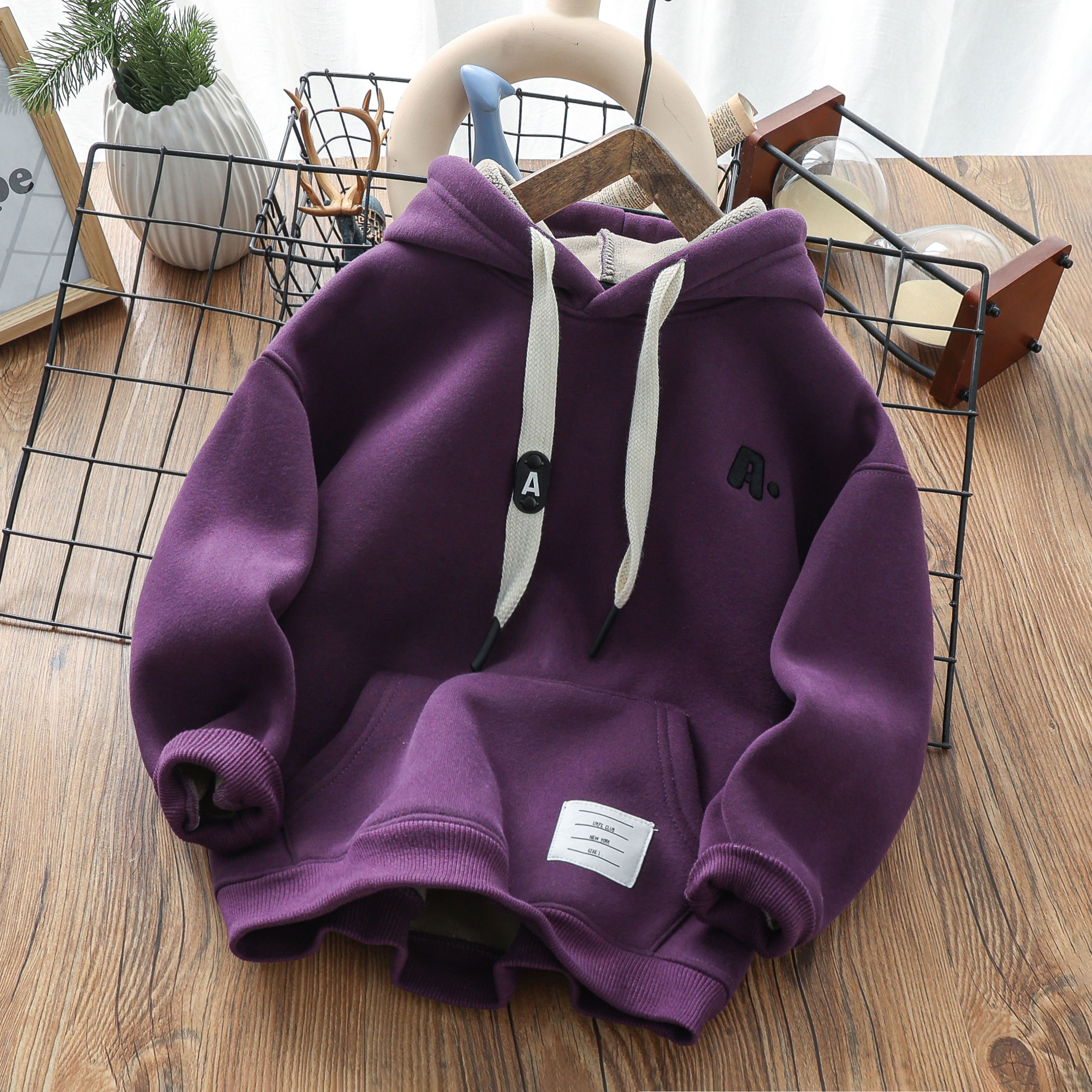 男童冬季加厚羊羔绒卫衣儿童一体复合绒连帽潮上衣中大童保暖绒衫