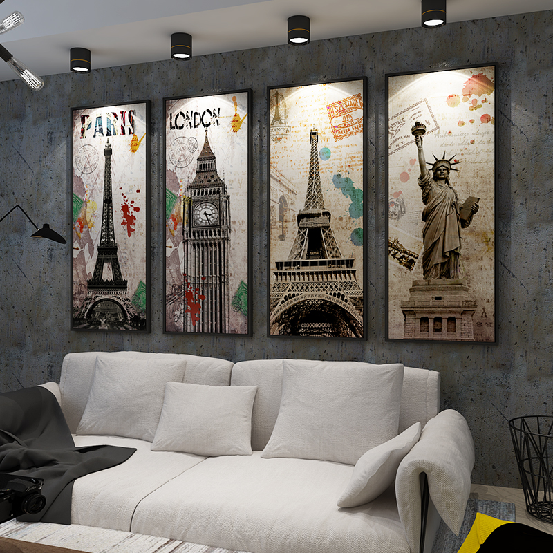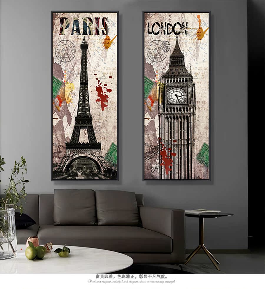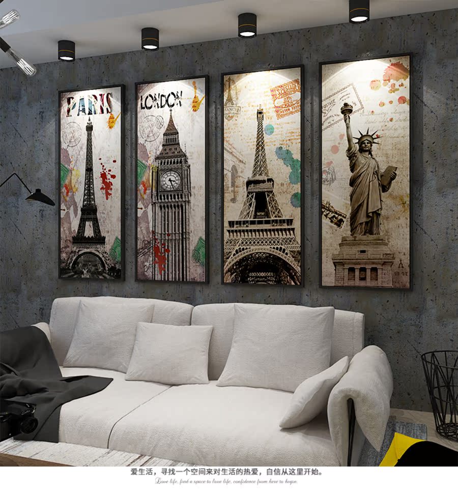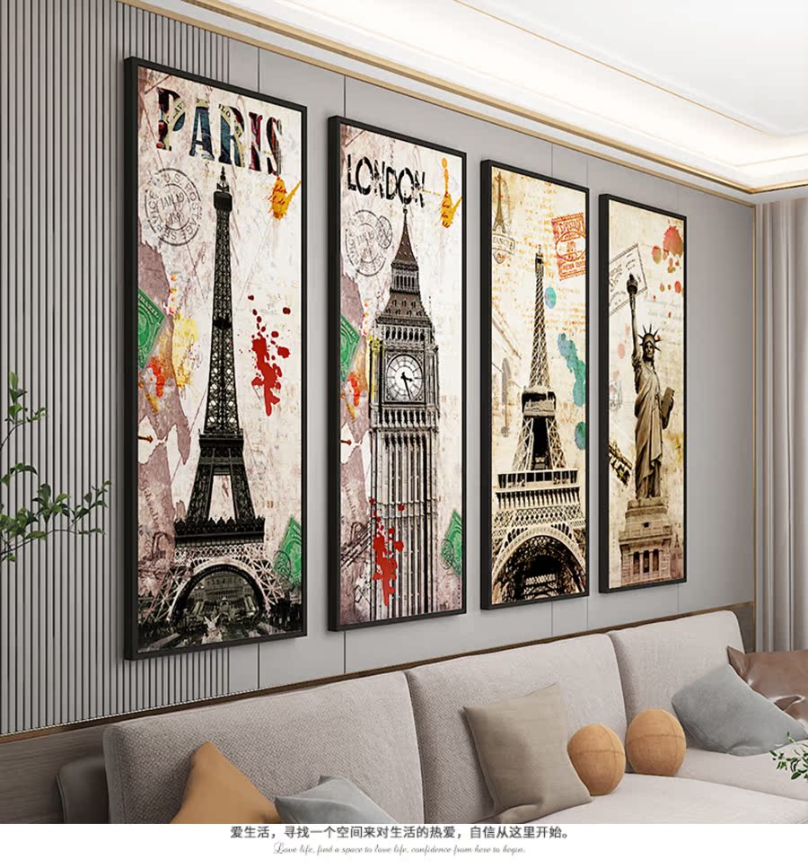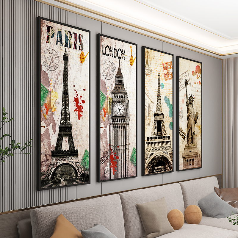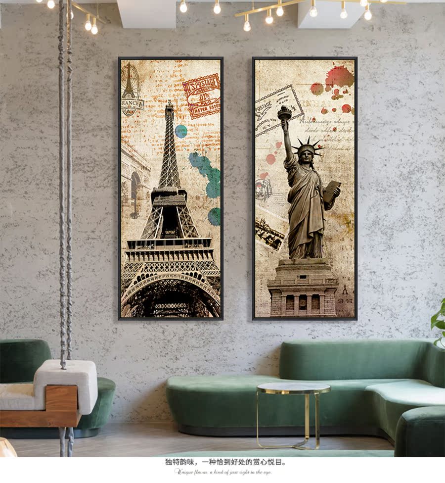 巴黎铁塔自由女神像法式复古挂画建筑入户玄关装饰画沙发走廊挂画
