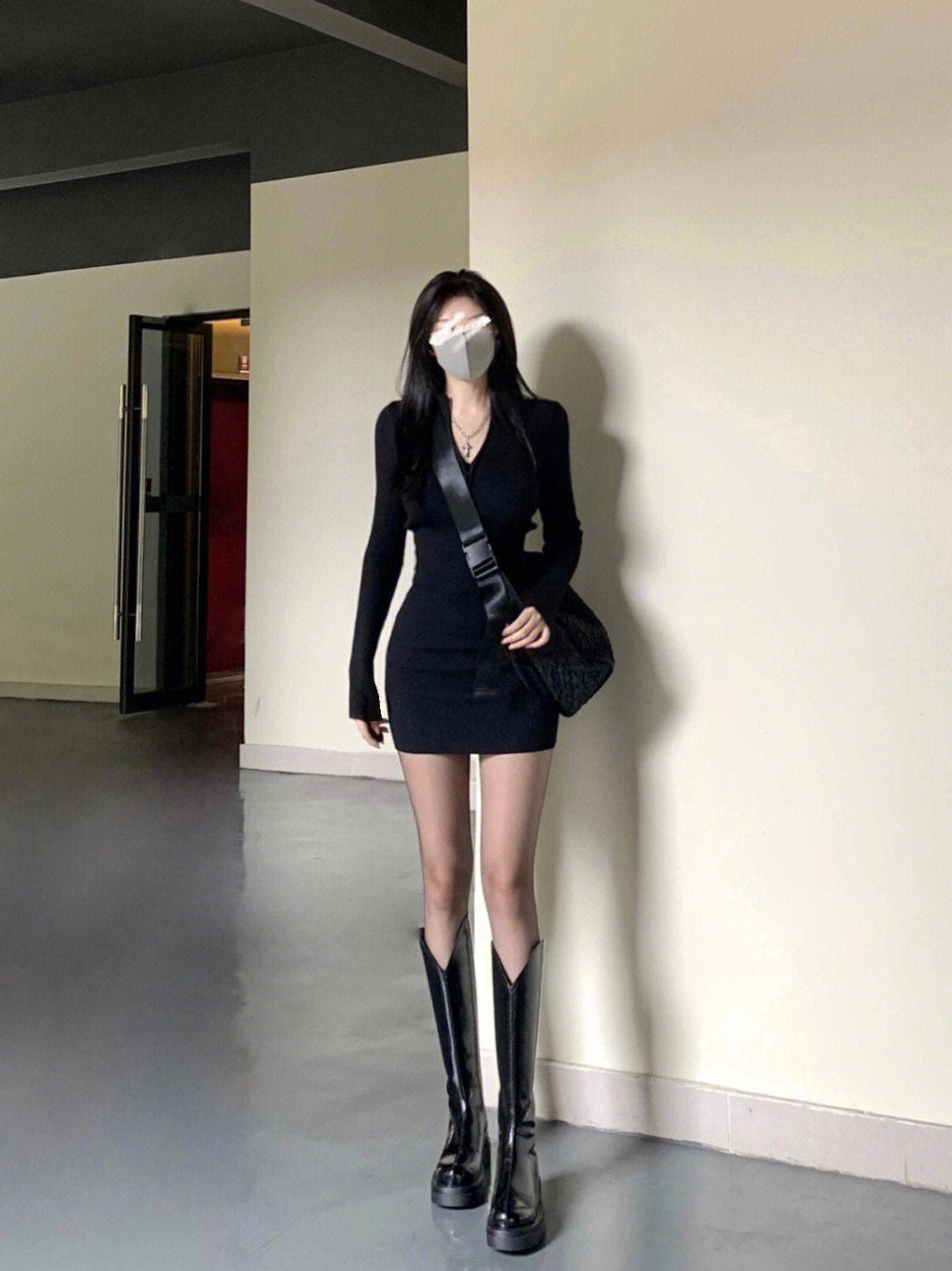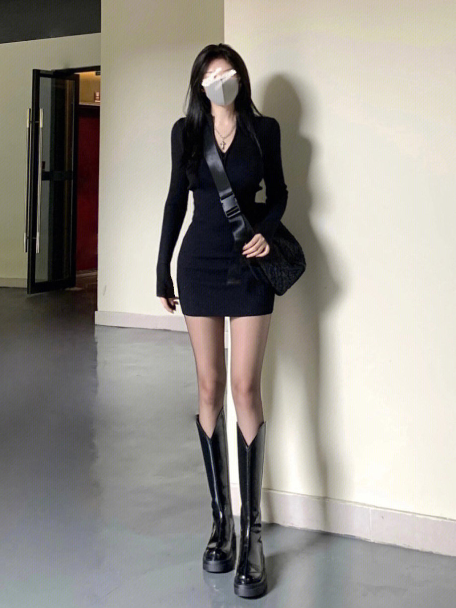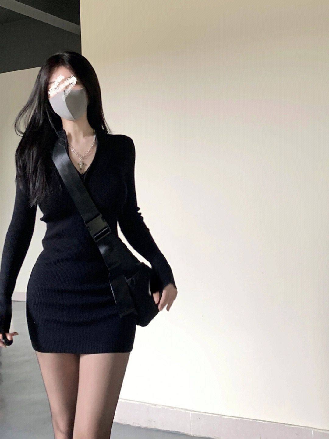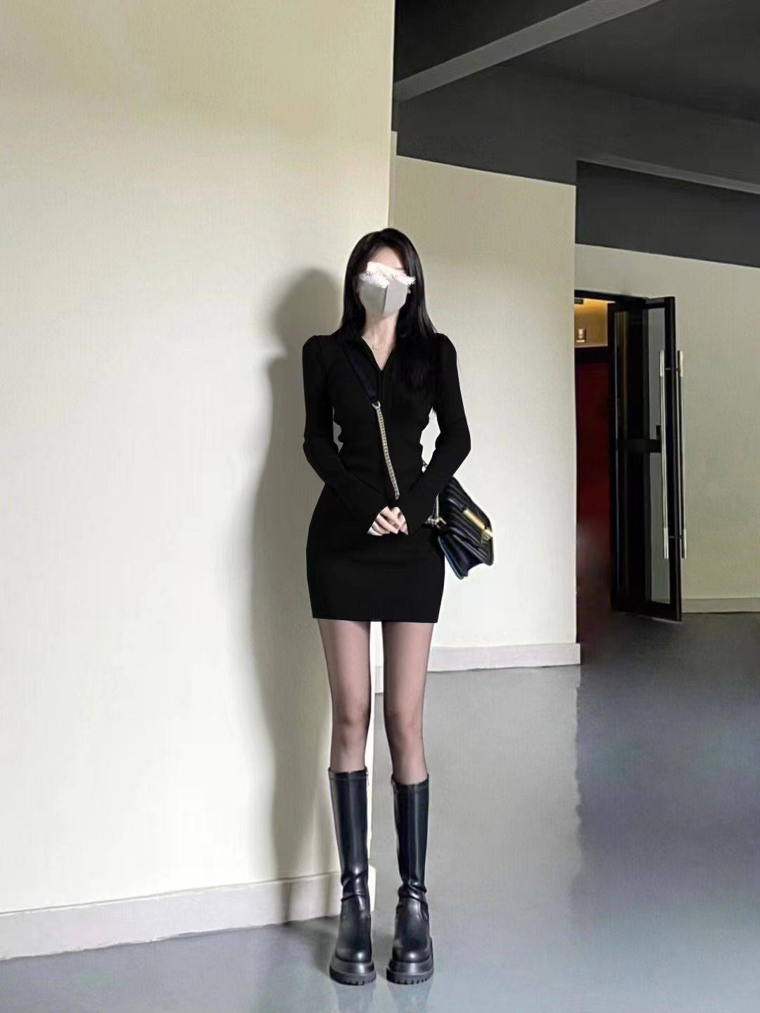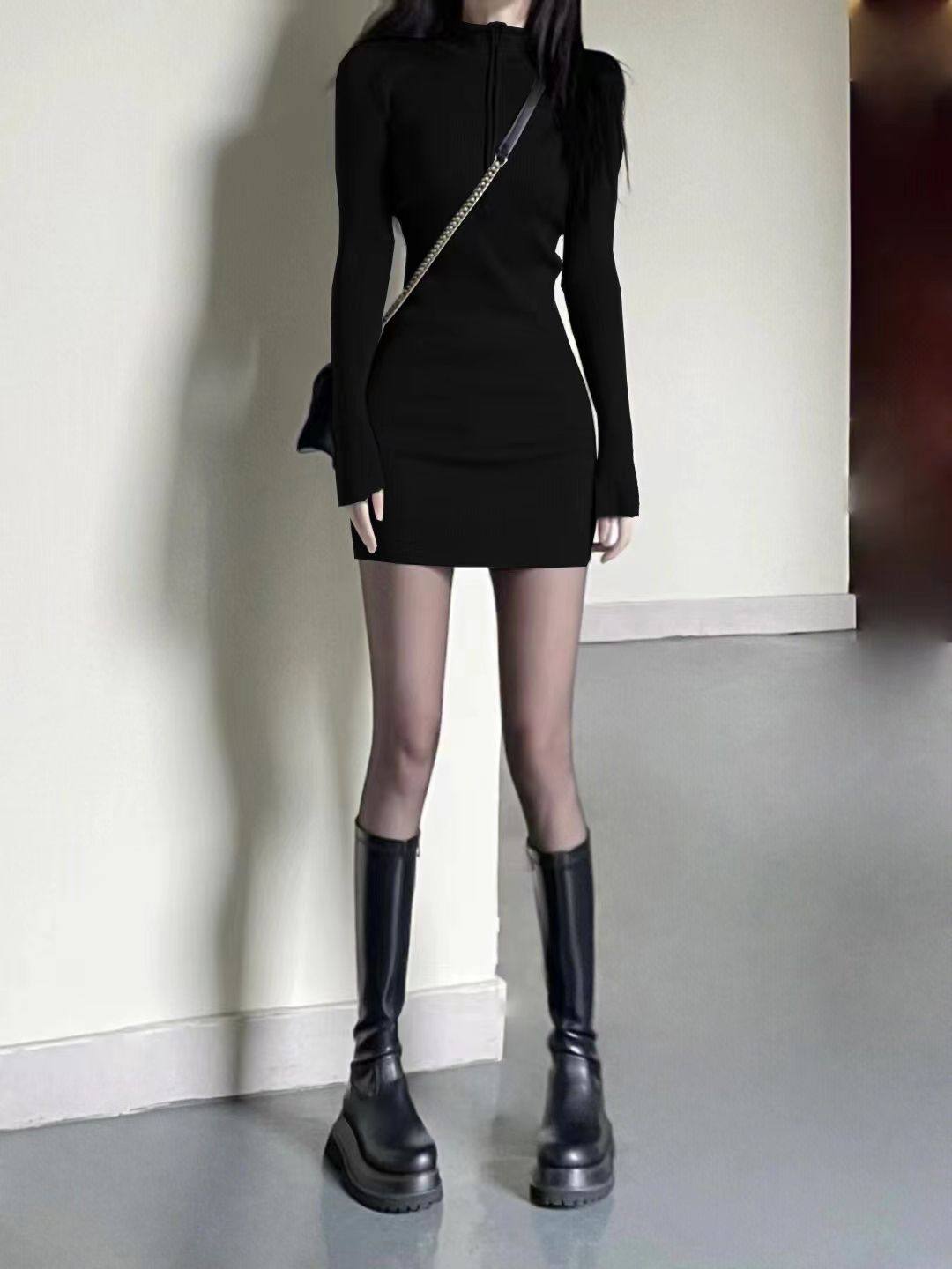 秋冬新款长袖德绒打底连衣裙内搭修身御姐辣妹包臀气质小黑裙子潮