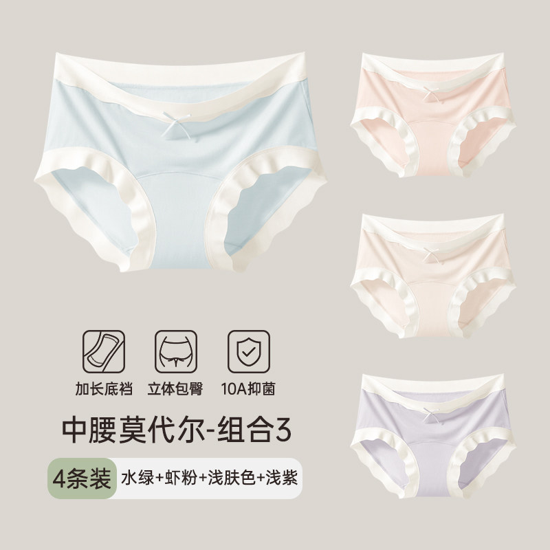 2025新款莫代尔少女内裤女无痕纯棉全棉抗菌裆中腰春夏款三角裤头