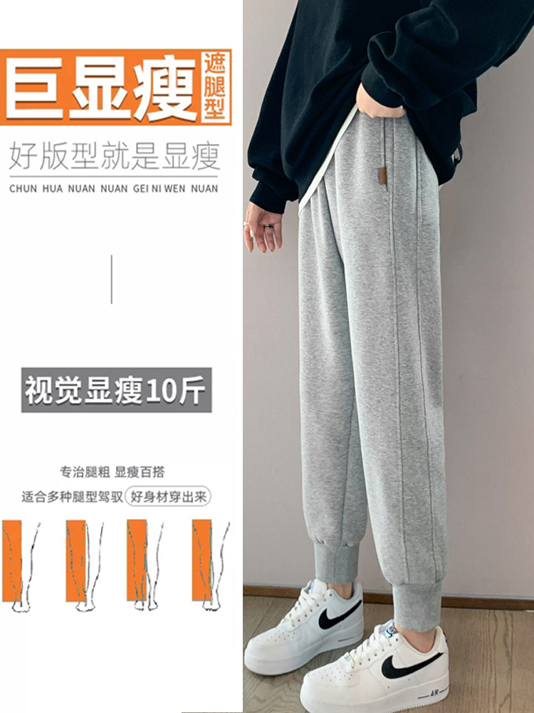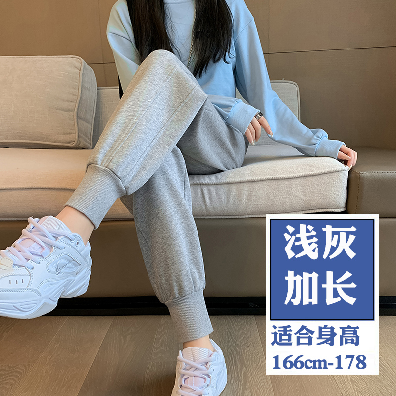 白色运动裤女春秋哈伦秋冬加绒休闲裤宽松加长版高个子卫裤女新款
