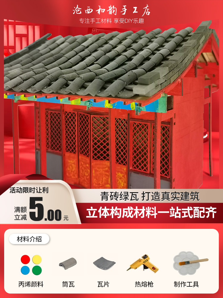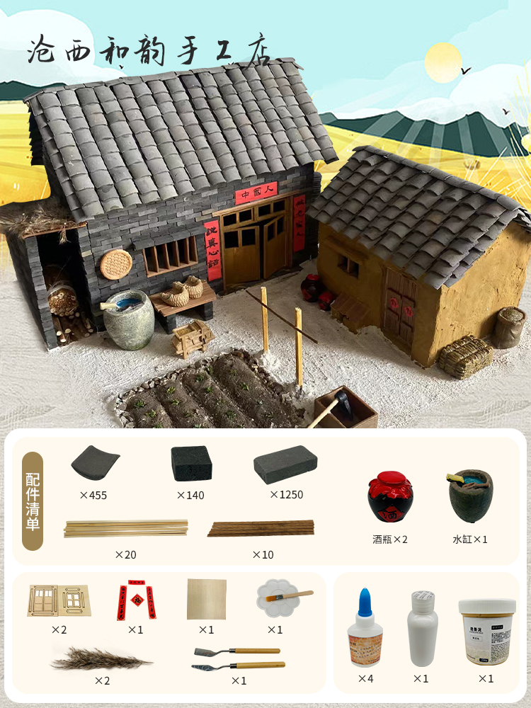 砖头diy盖房子砌墙建筑玩具沙盘造景真砖块材料仿真房子模型小屋