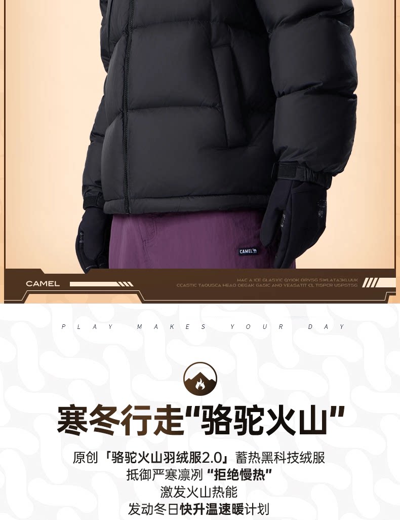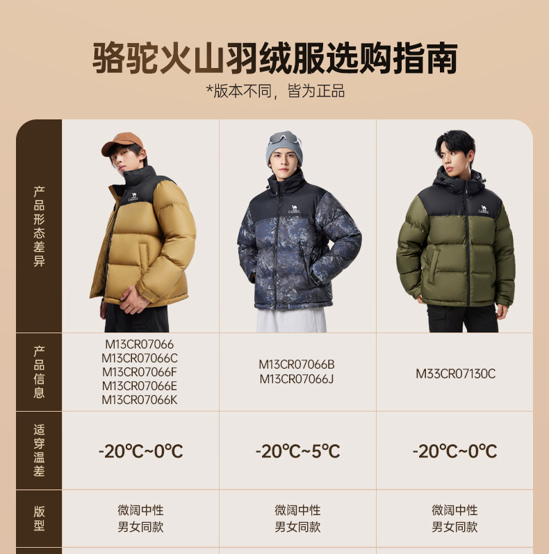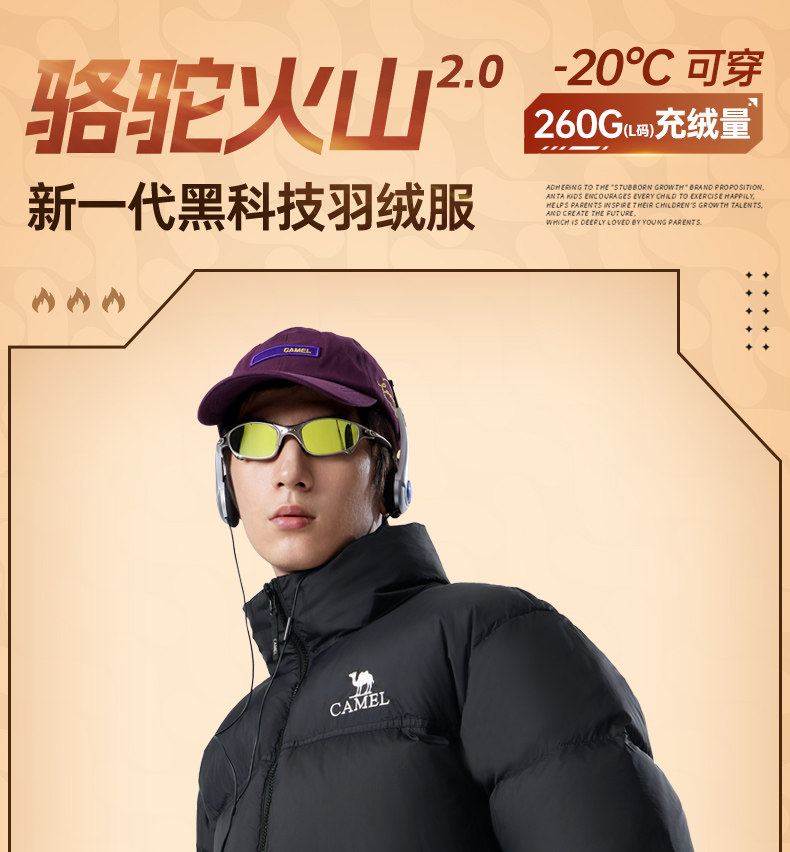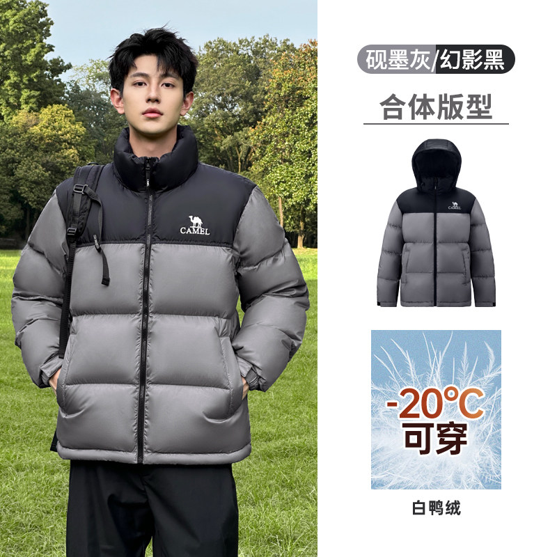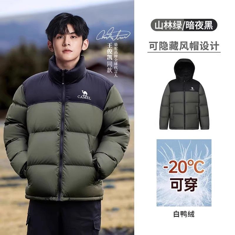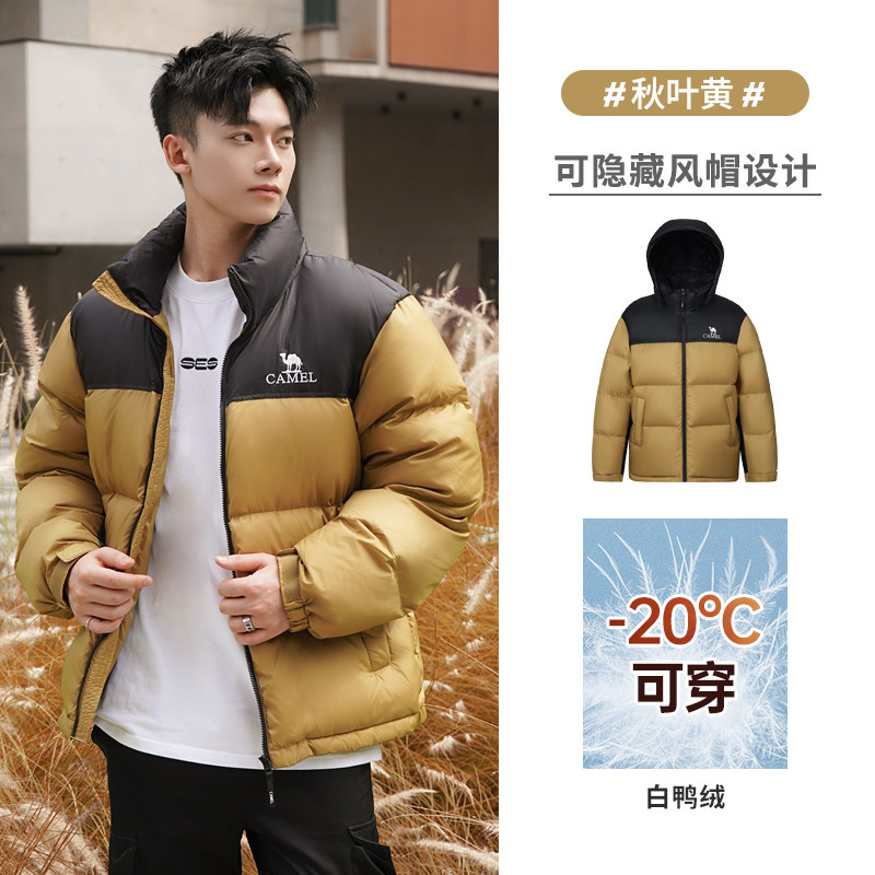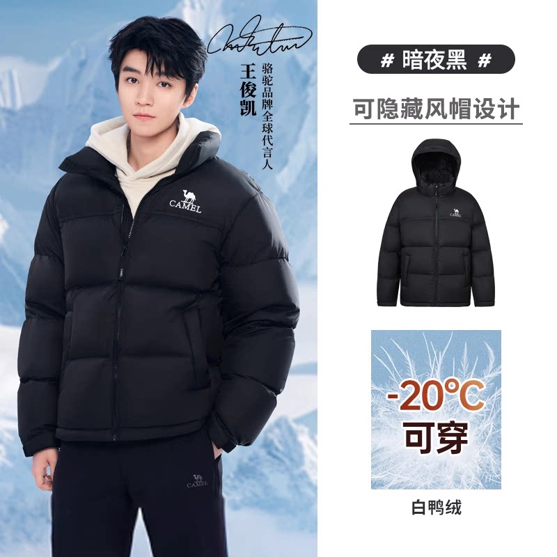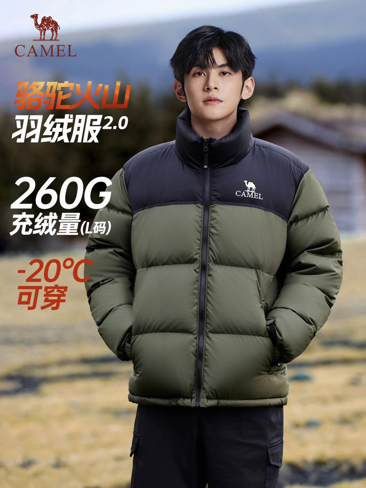 王俊凯同款骆驼火山羽绒服男冬季加厚保暖短款面包防寒男装外套