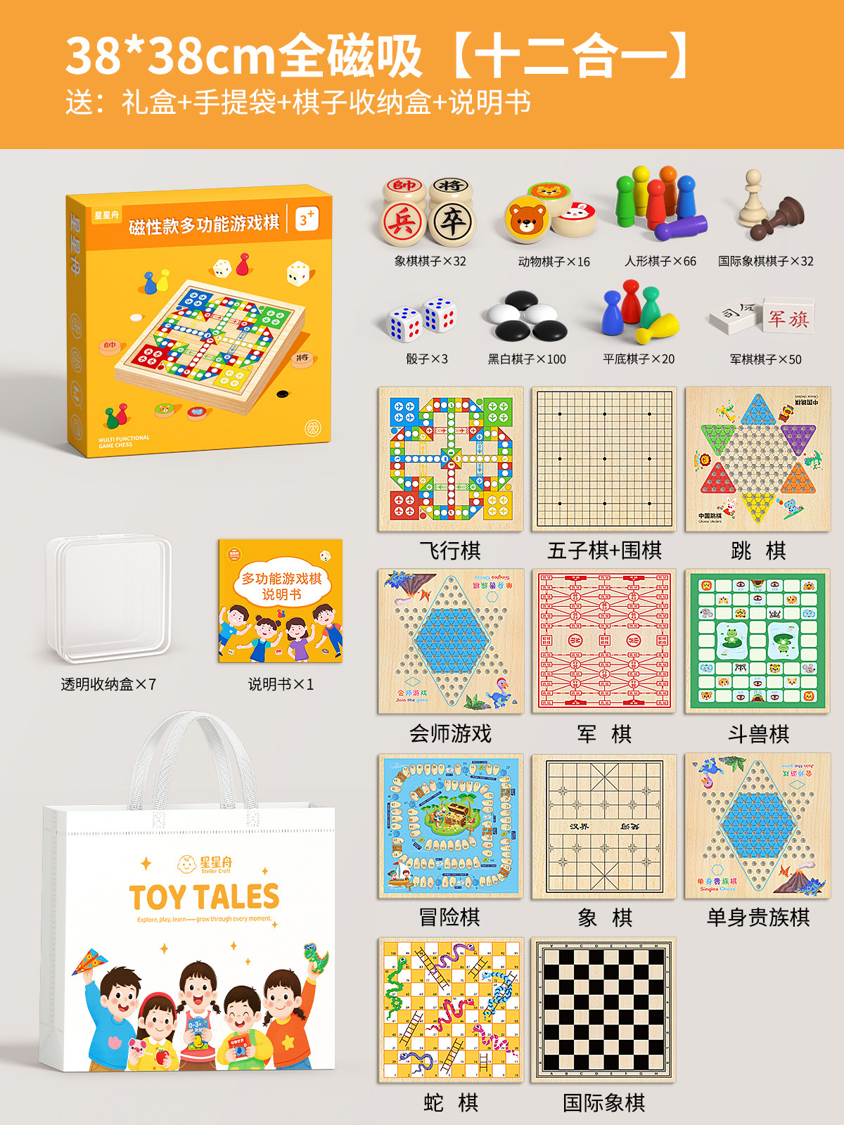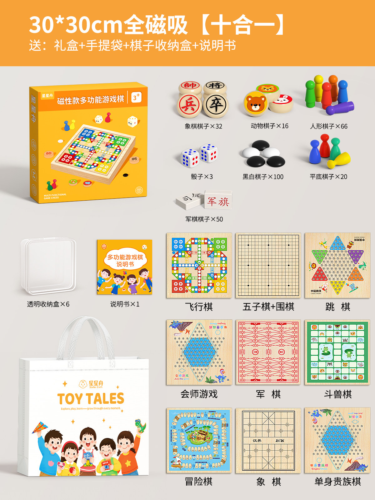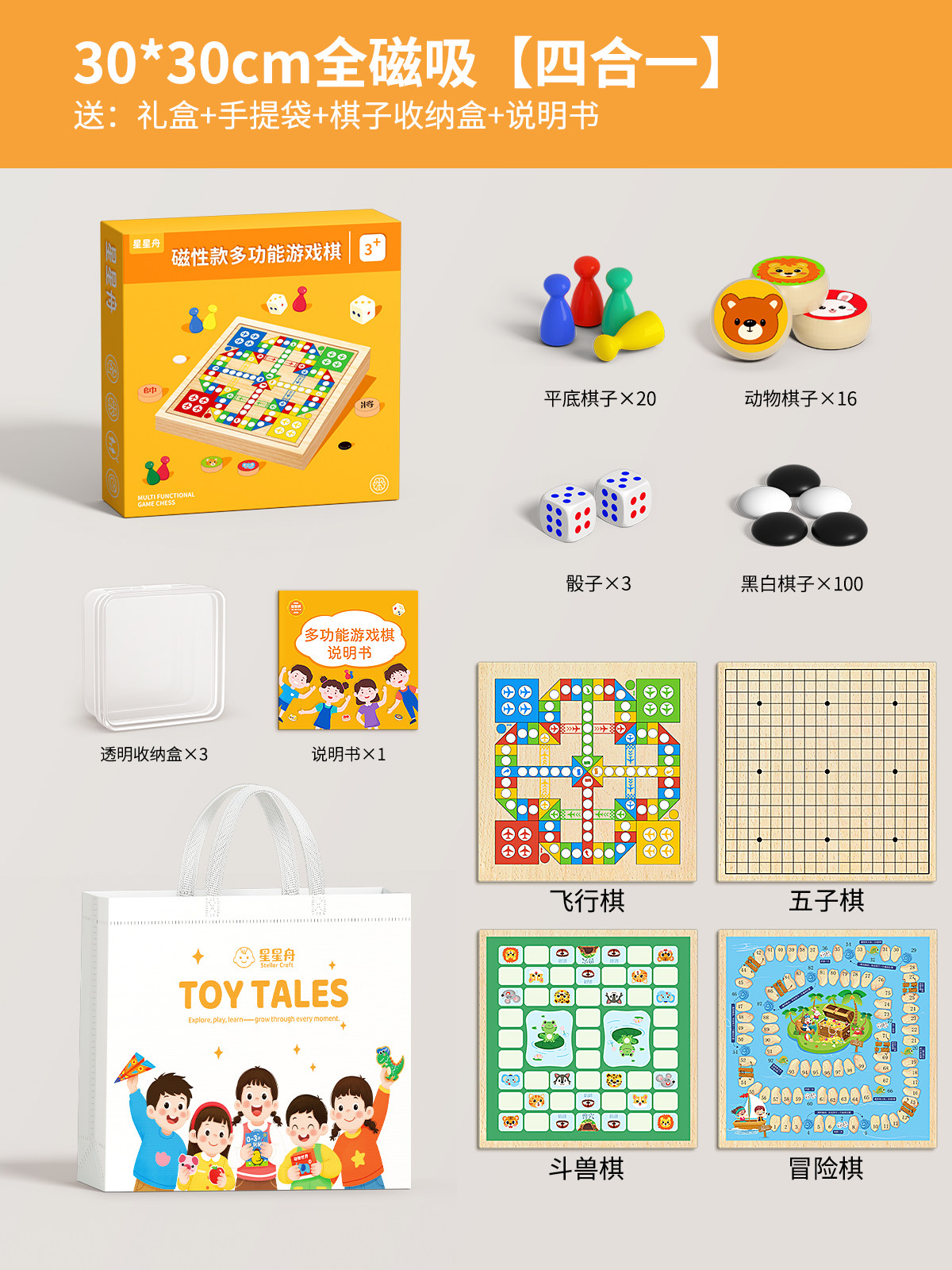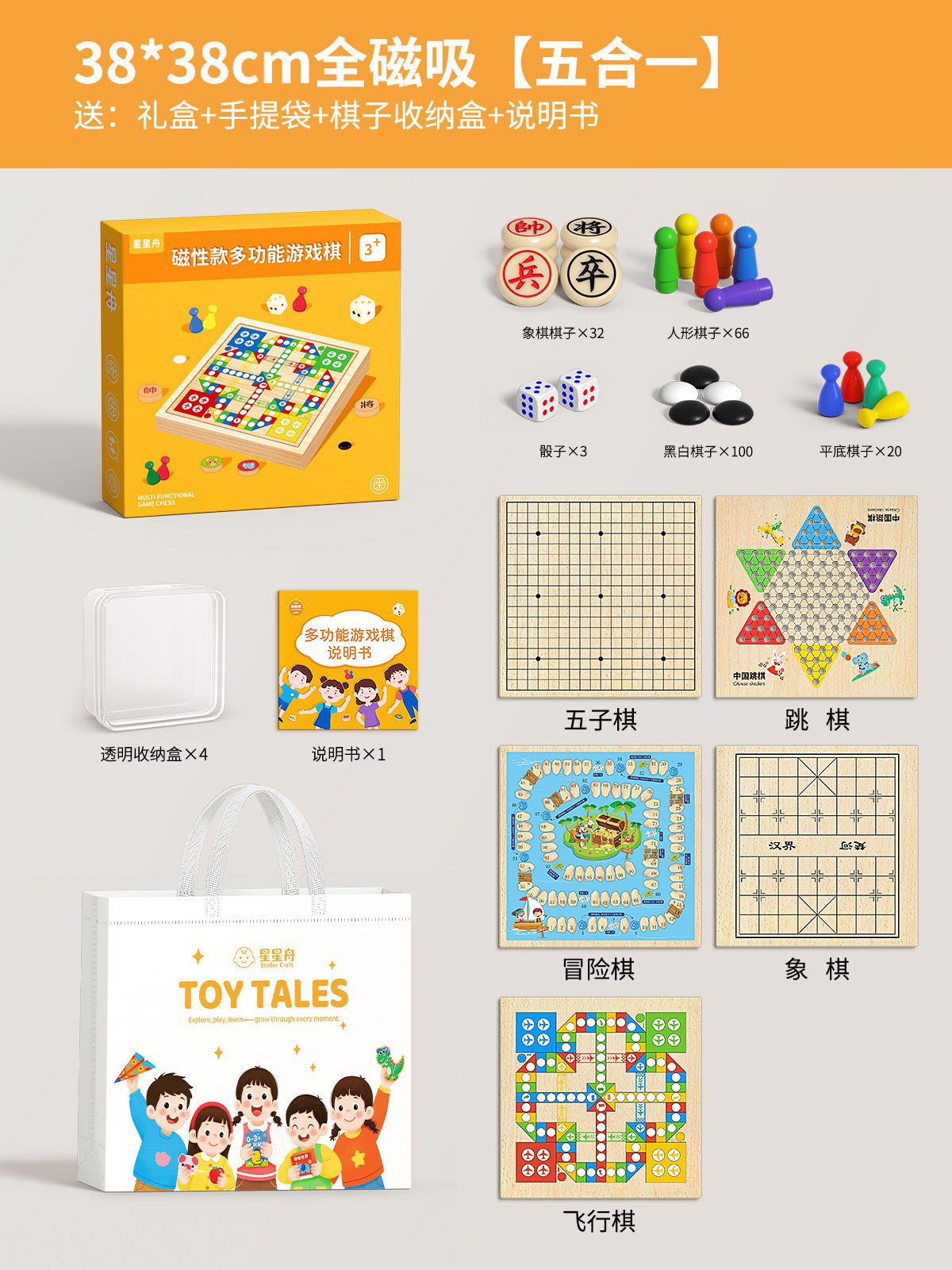 飞行棋五子棋儿童益智玩具跳棋多功能棋盘多合一棋类小学生版套装