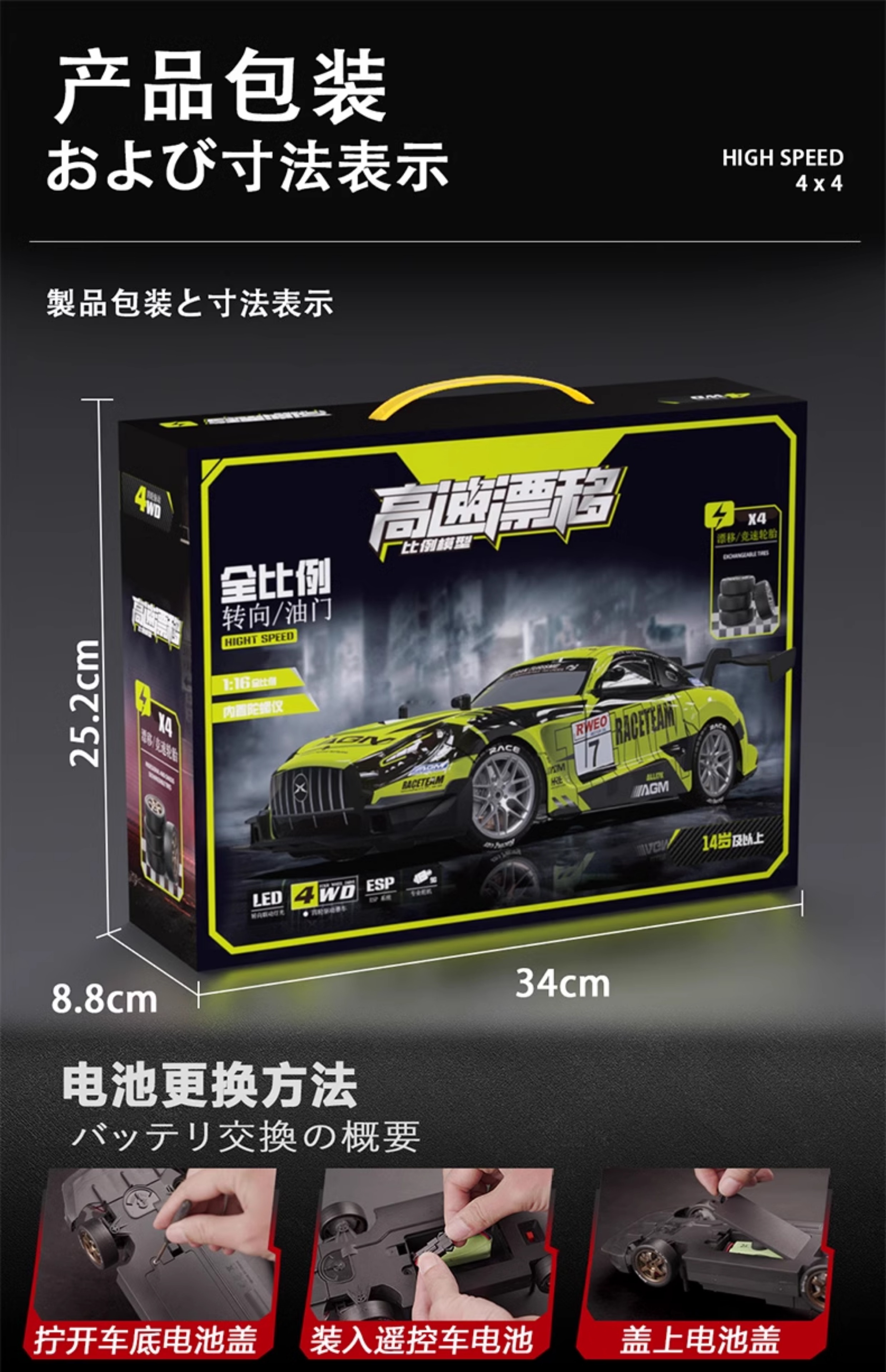 全比例专业rc漂移遥控车GTR高速车电动四驱成人赛车C男孩汽车玩具