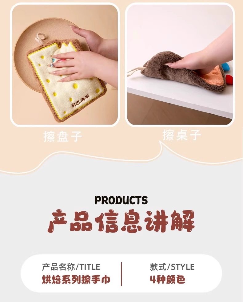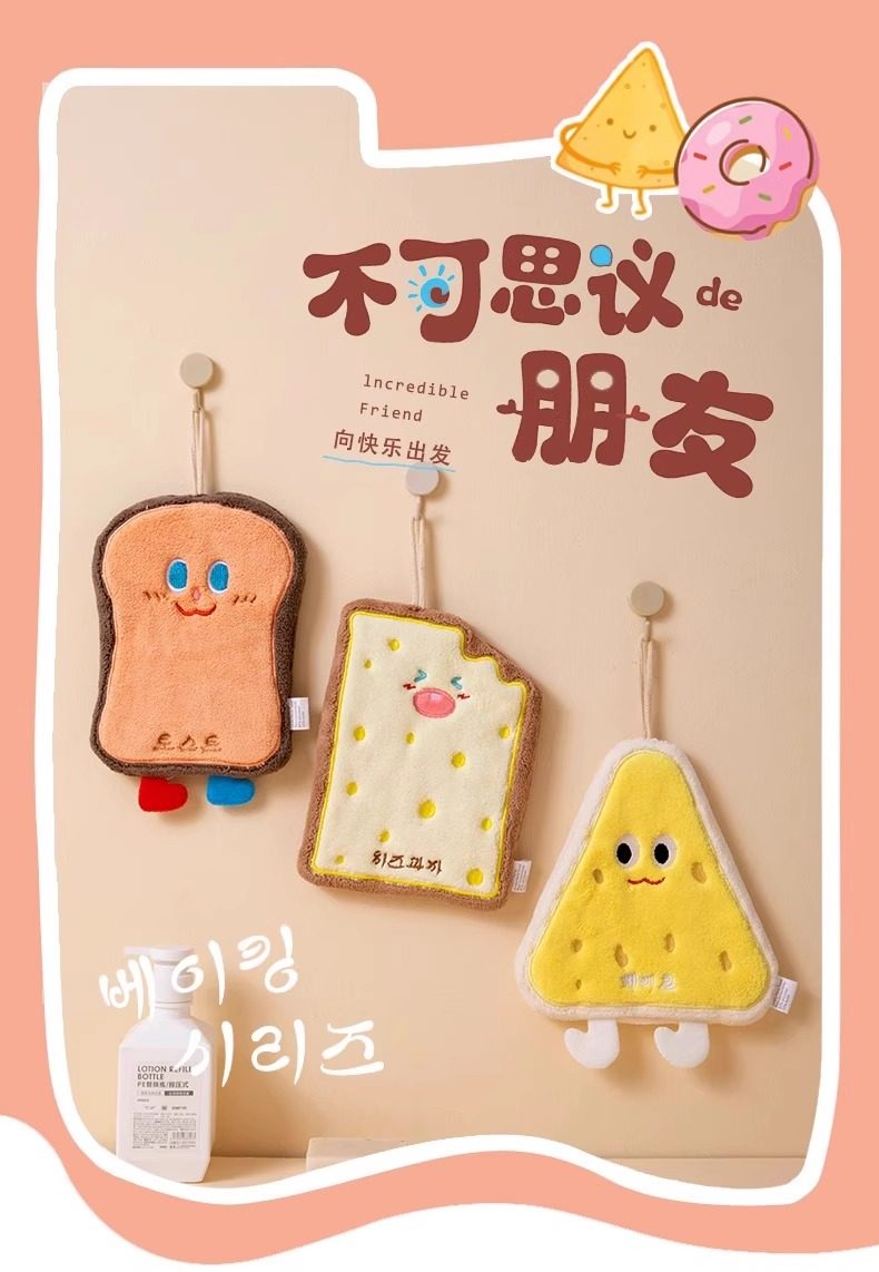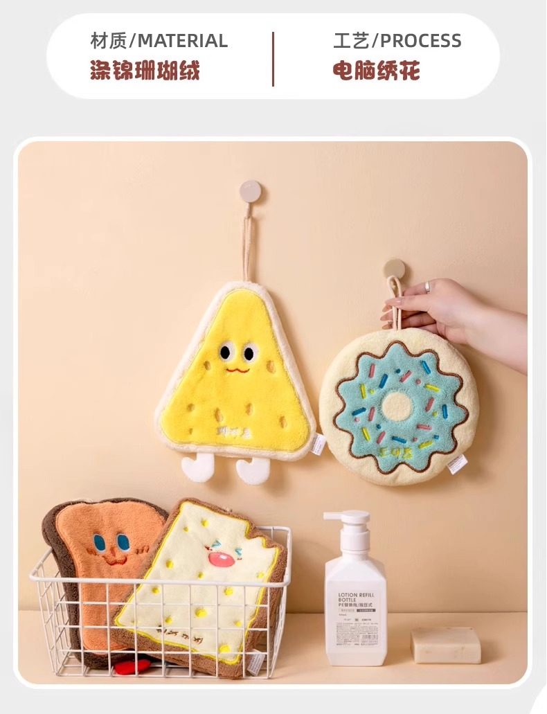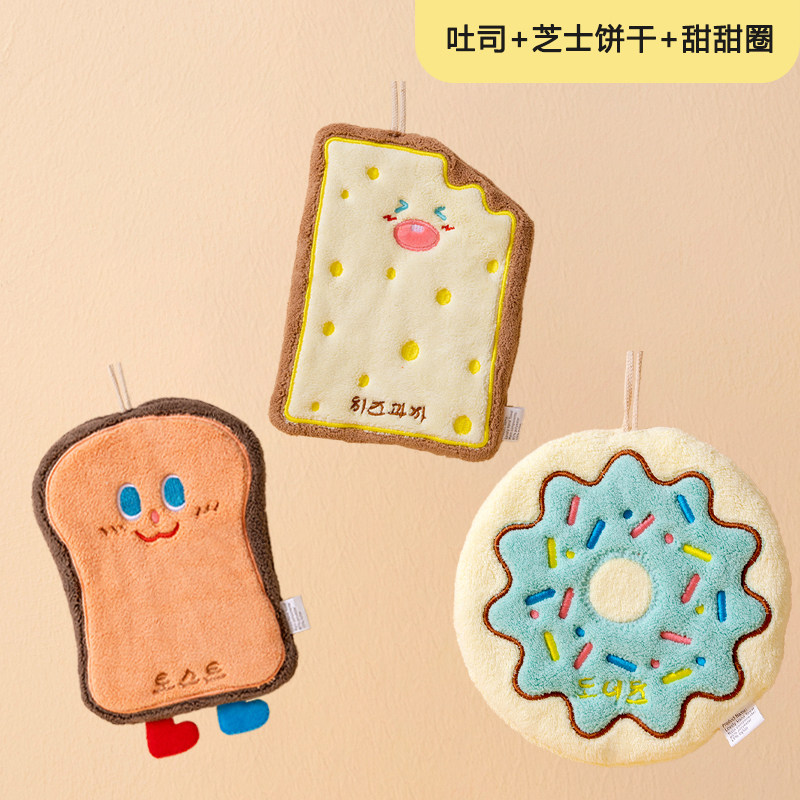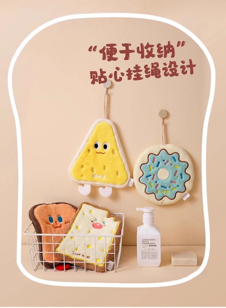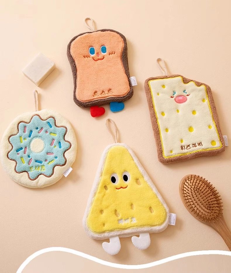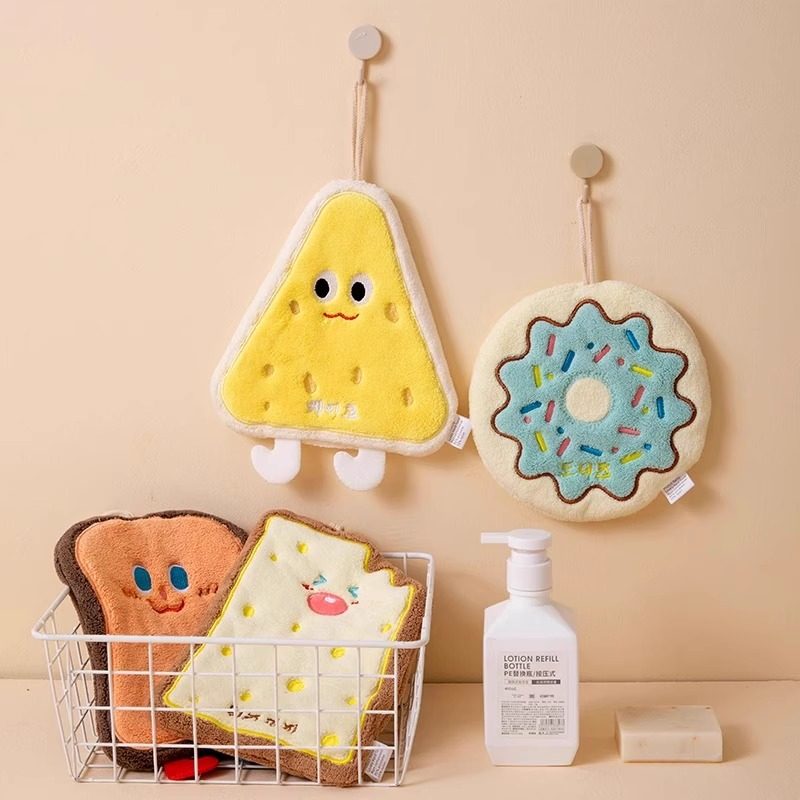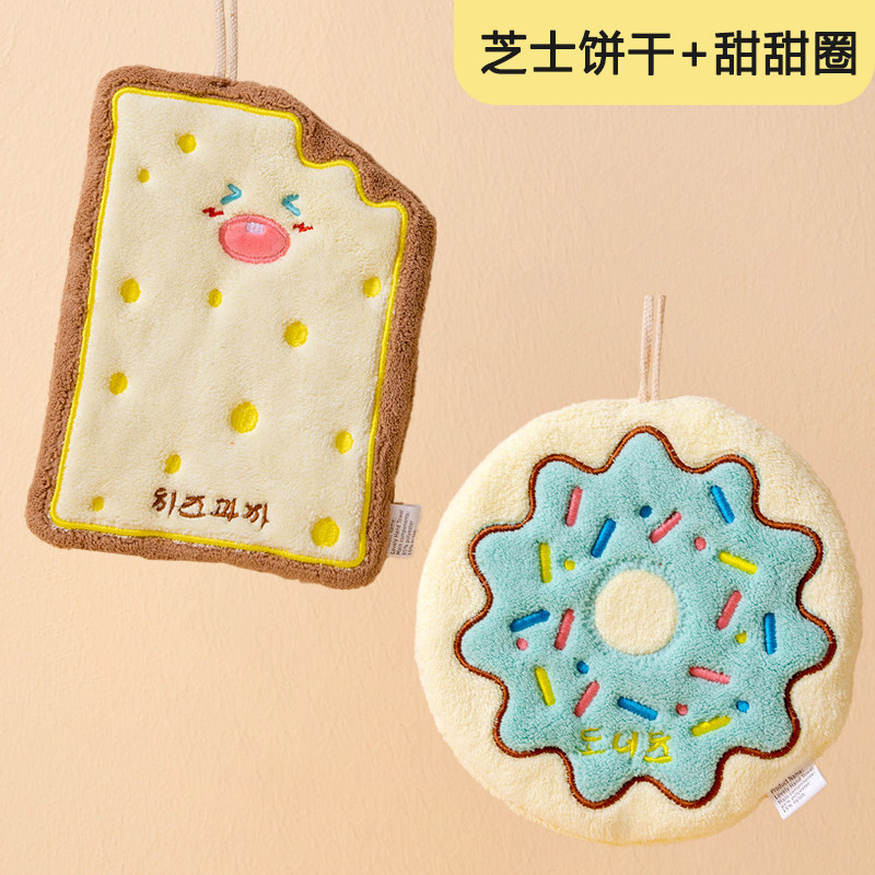 擦手巾可挂式吸水毛巾洗手巾宝宝擦手布可爱奶酪饼干亲肤柔软儿童
