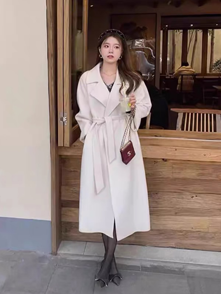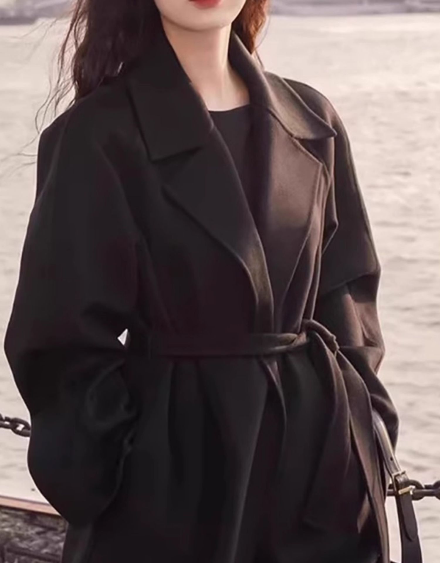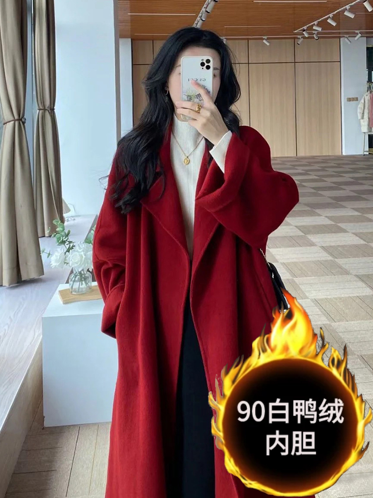 西西里红色双面呢大衣女小个子2025秋冬新款宽松高级感毛呢外套女