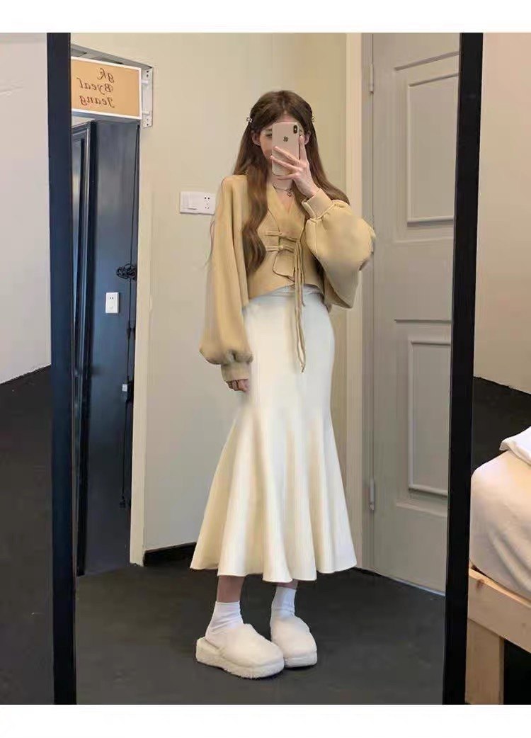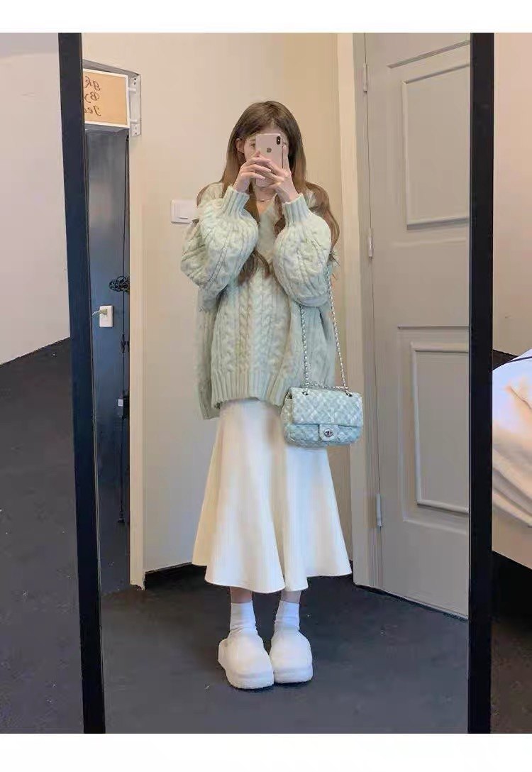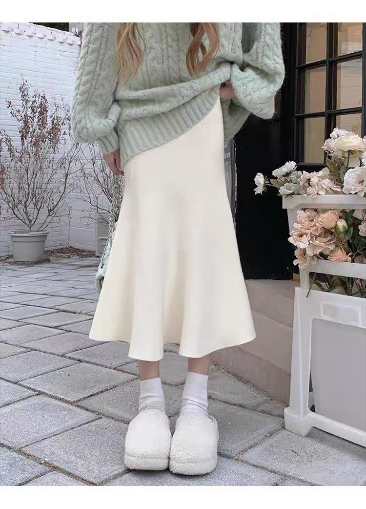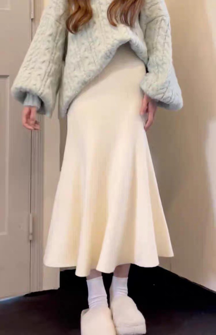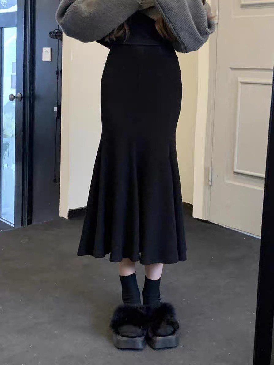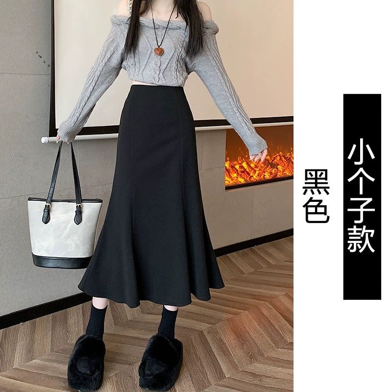 150cm小个子针织黑色鱼尾半身裙秋冬新款a字包臀半裙中长裙145xxs