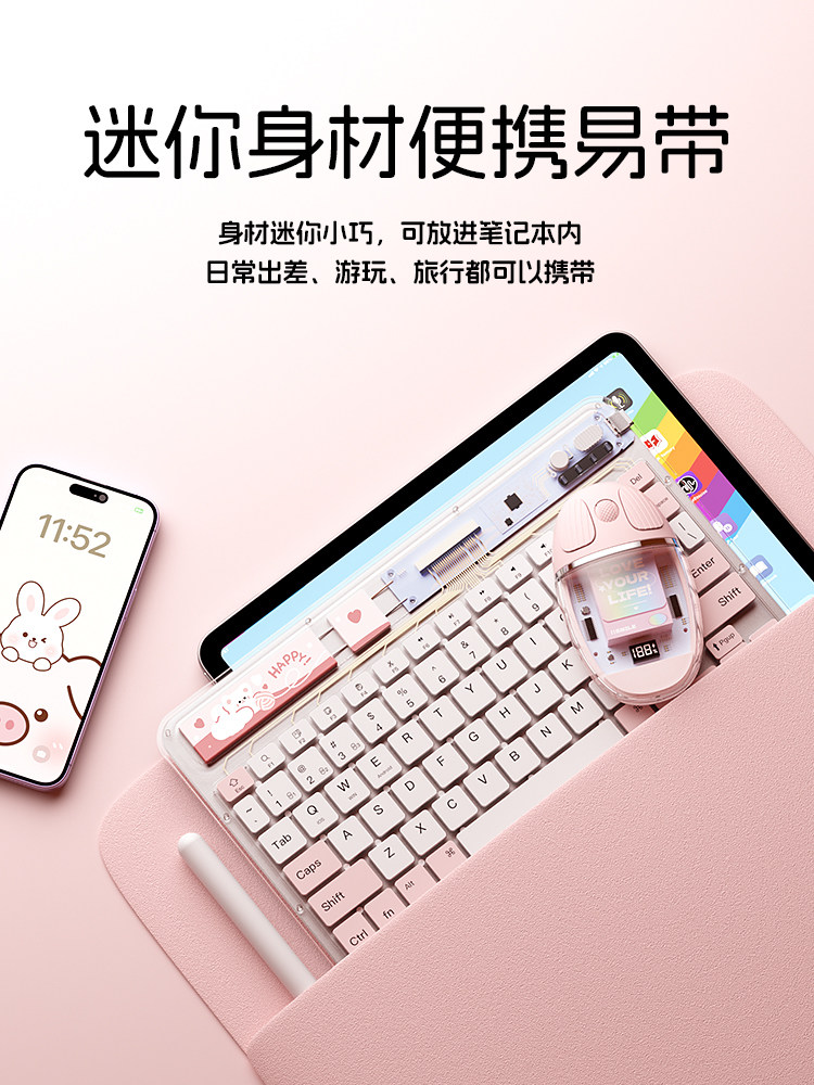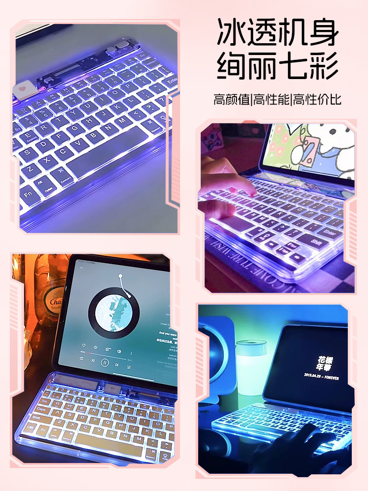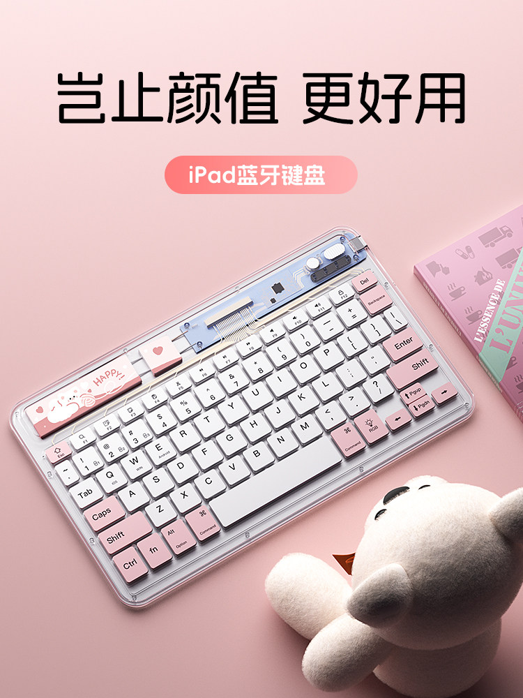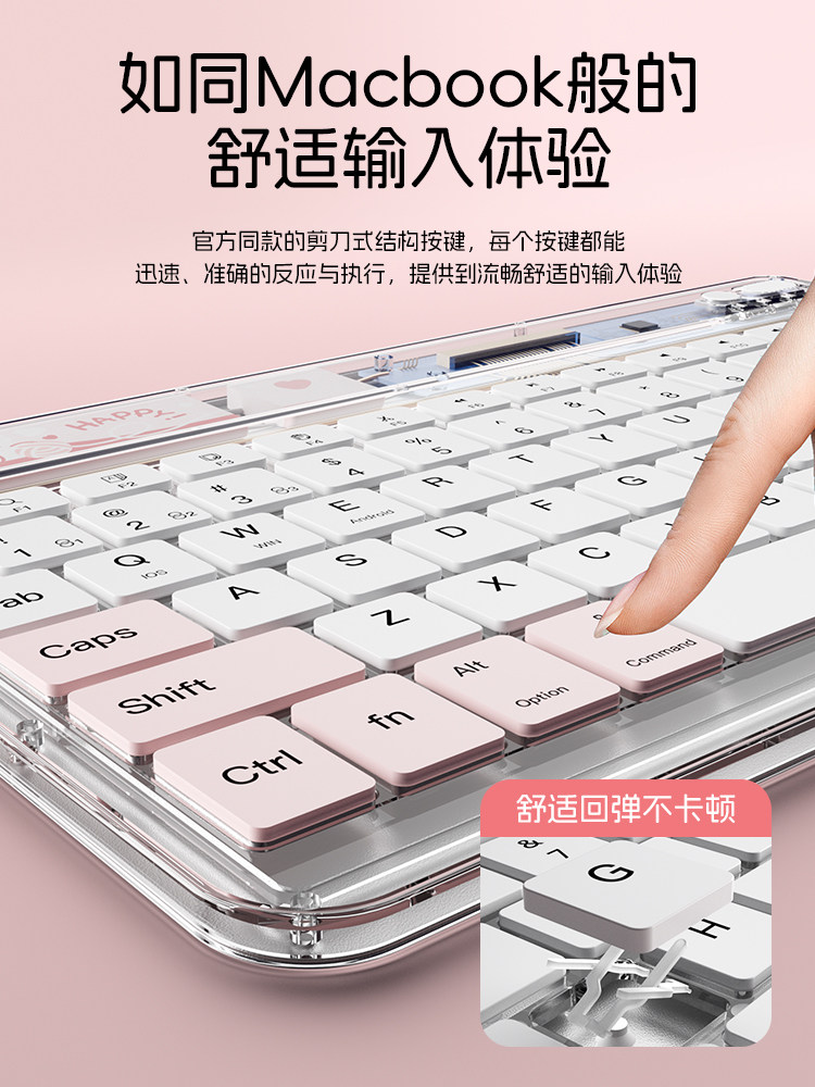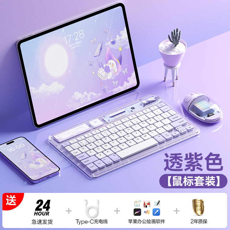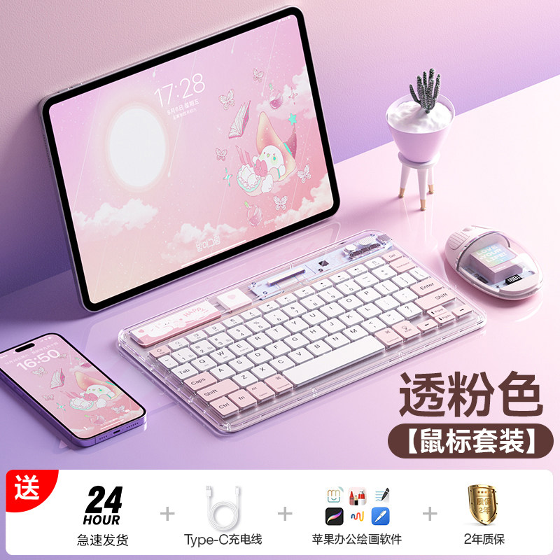 科技鱼无线ipad蓝牙键盘冰晶透明轻薄可充电适用于苹果华为联想安卓手机平板电脑静音办公多设备系统鼠标套装