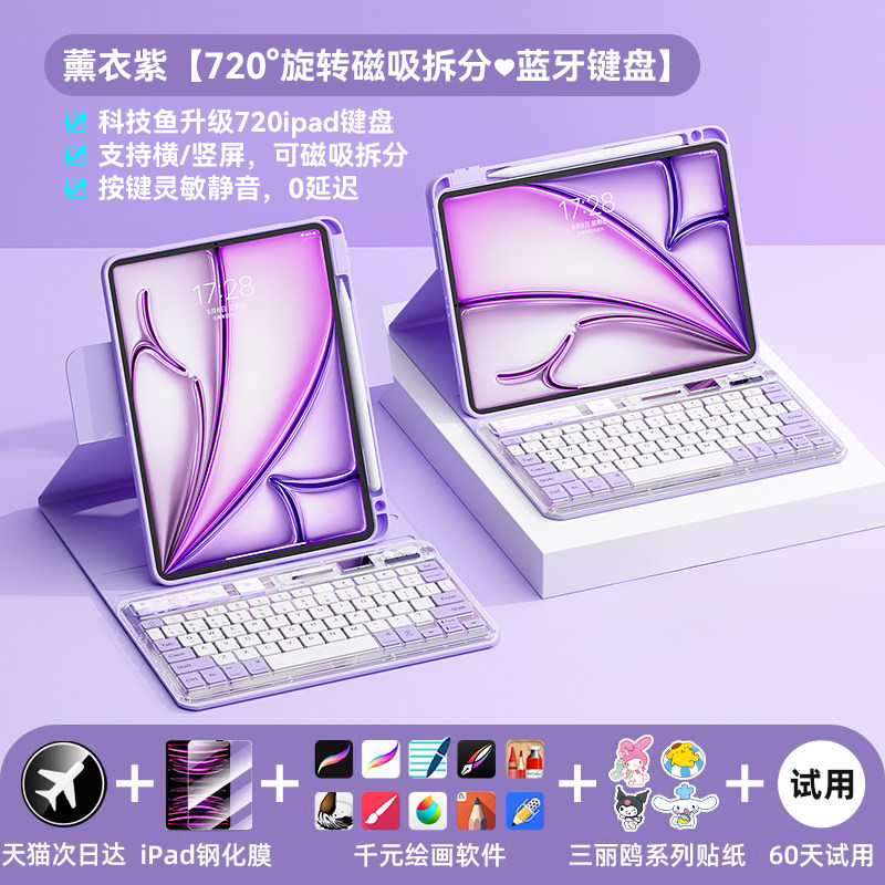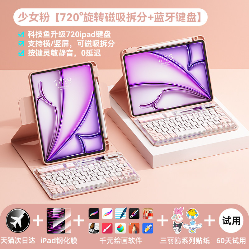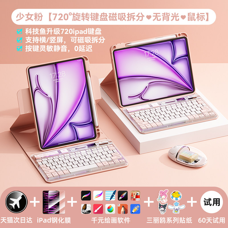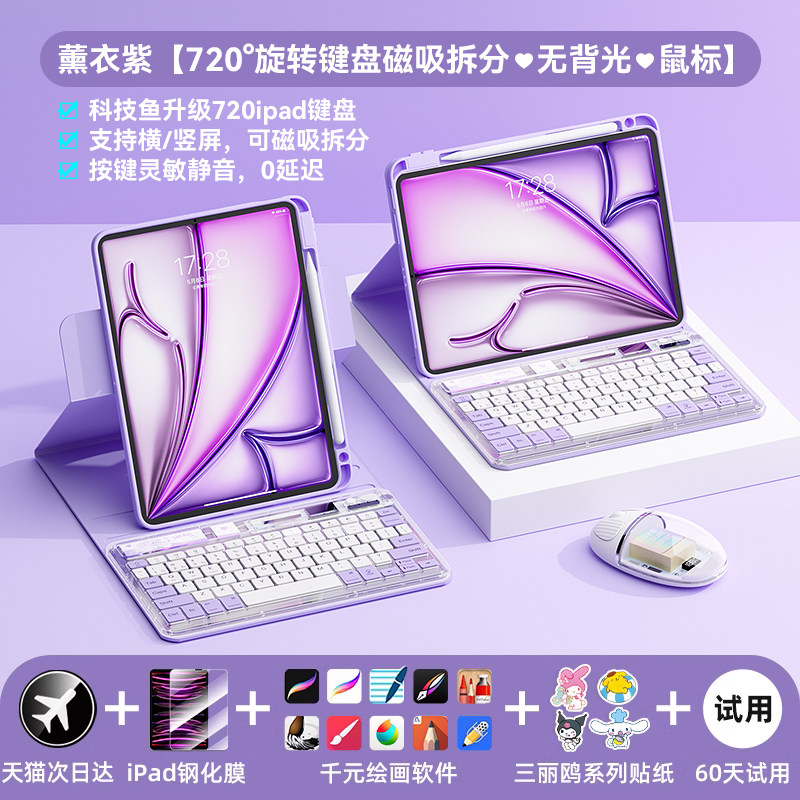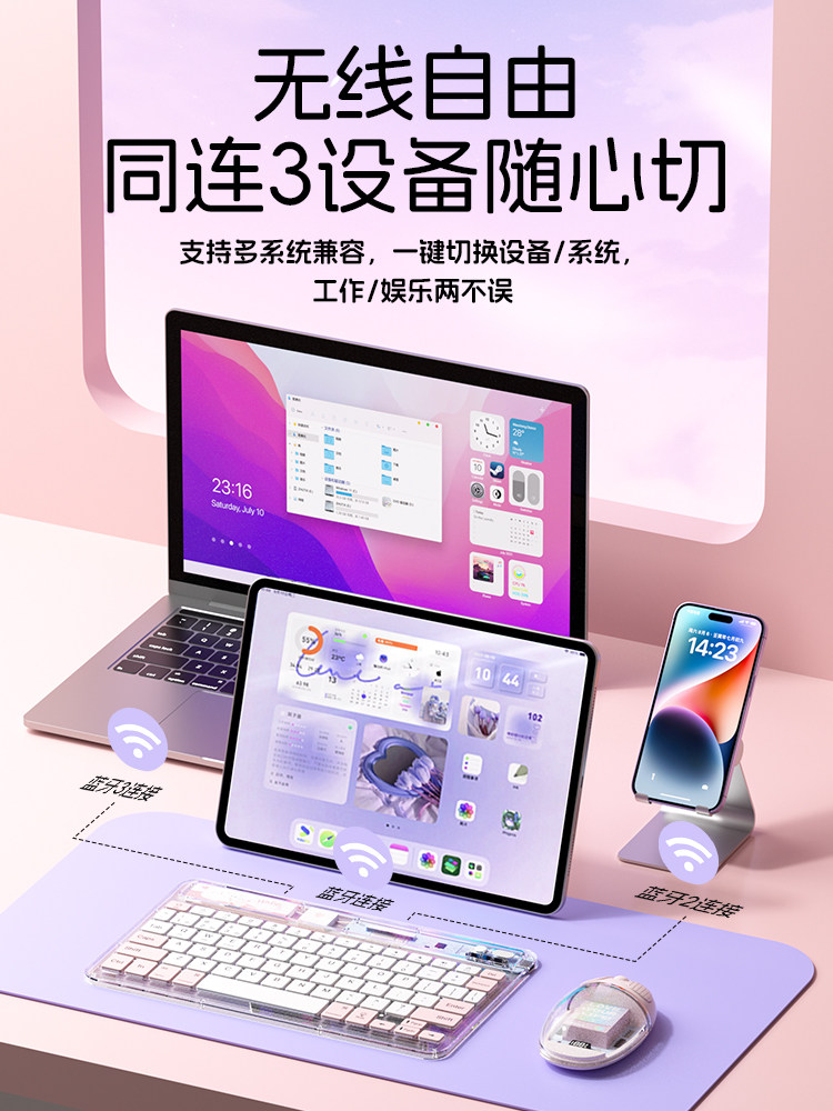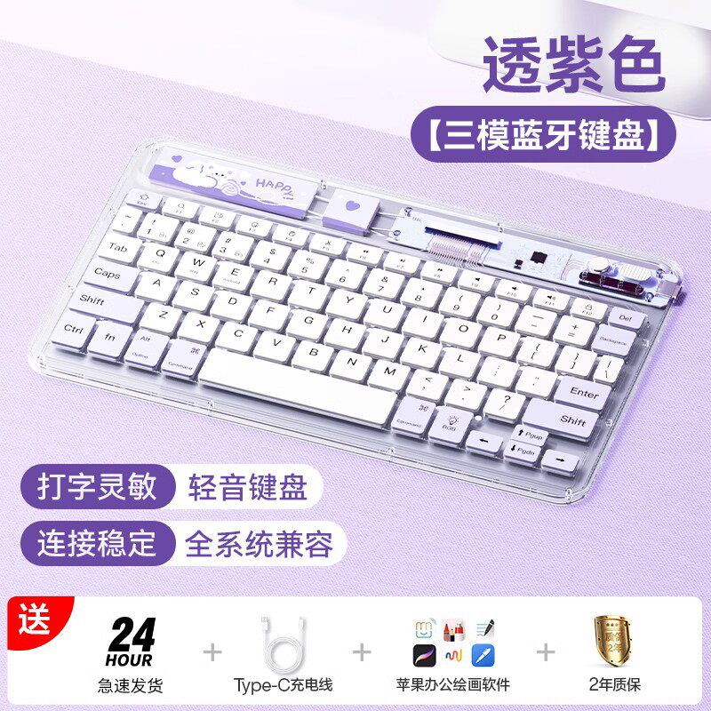 科技鱼无线ipad蓝牙键盘冰晶透明轻薄可充电适用于苹果华为联想安卓手机平板电脑静音办公多设备系统鼠标套装