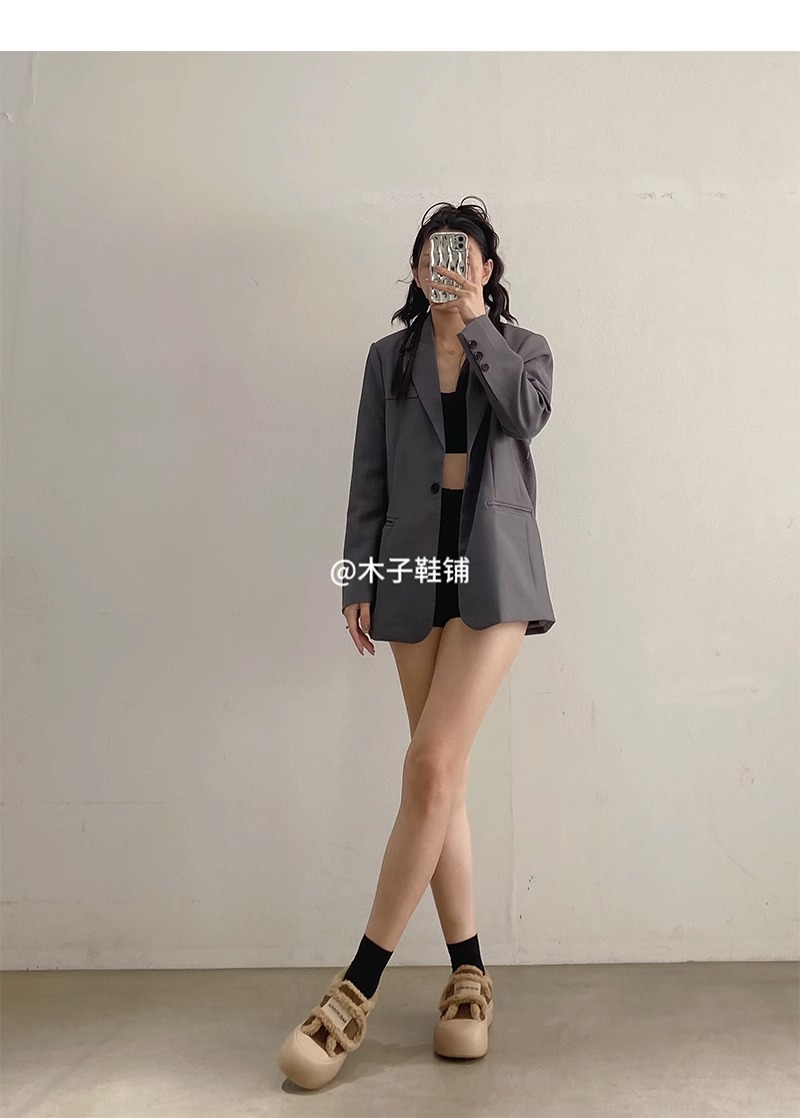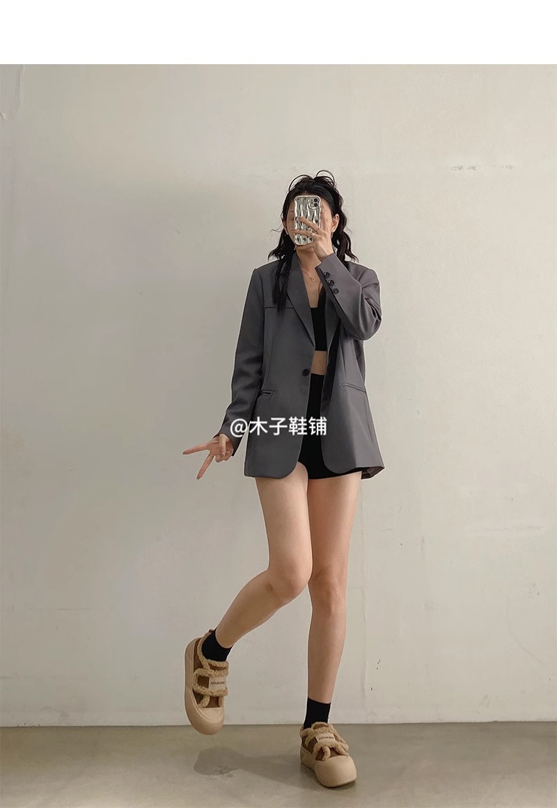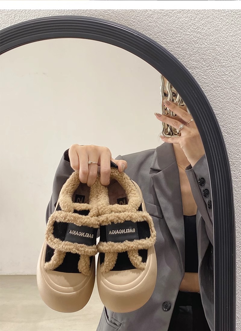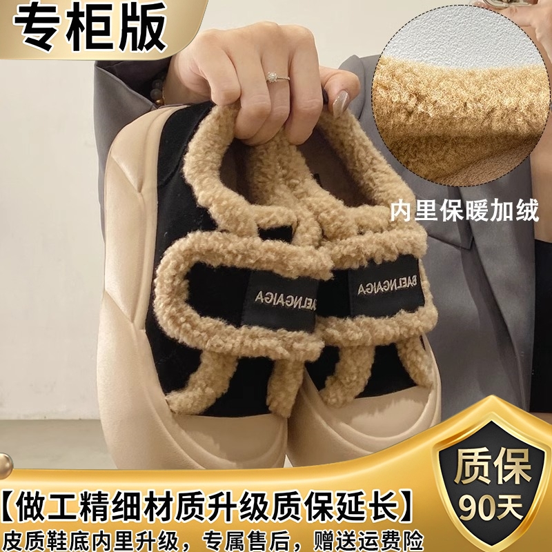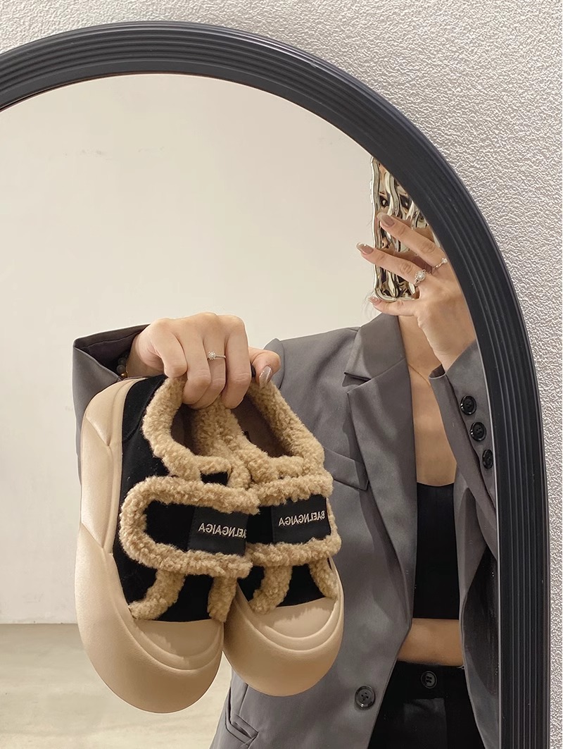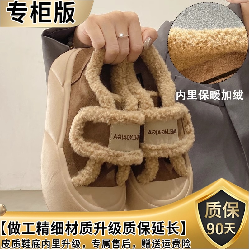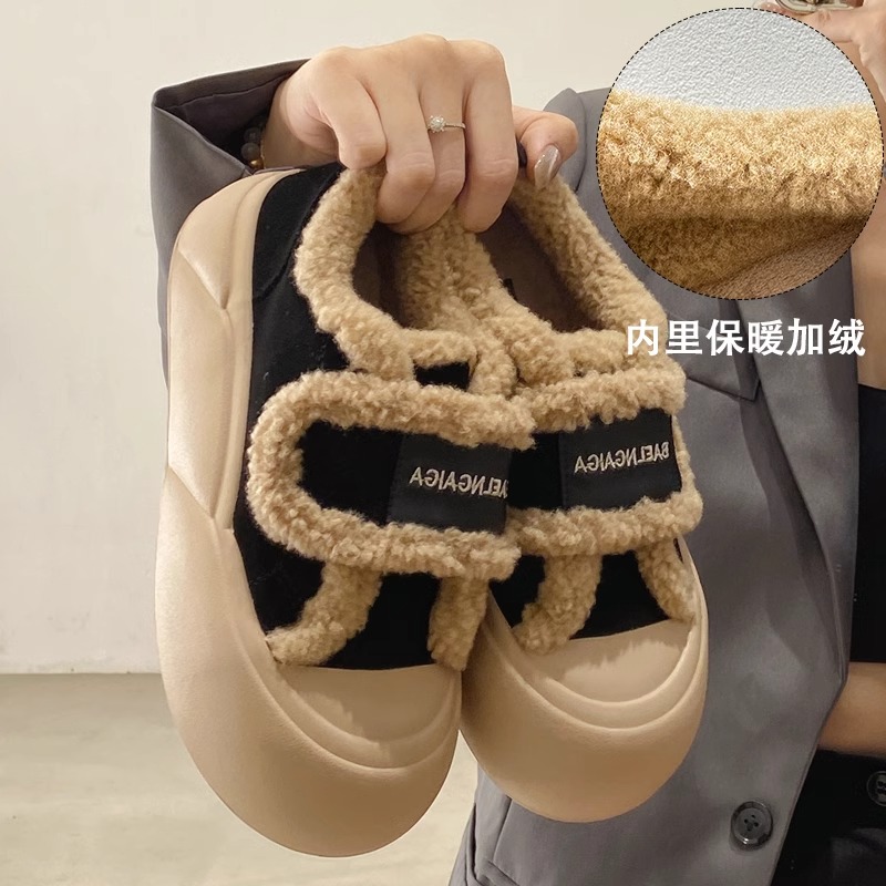 松糕底魔术贴棉鞋女冬加绒加厚2025冬季新款一脚蹬乐福鞋面包鞋潮