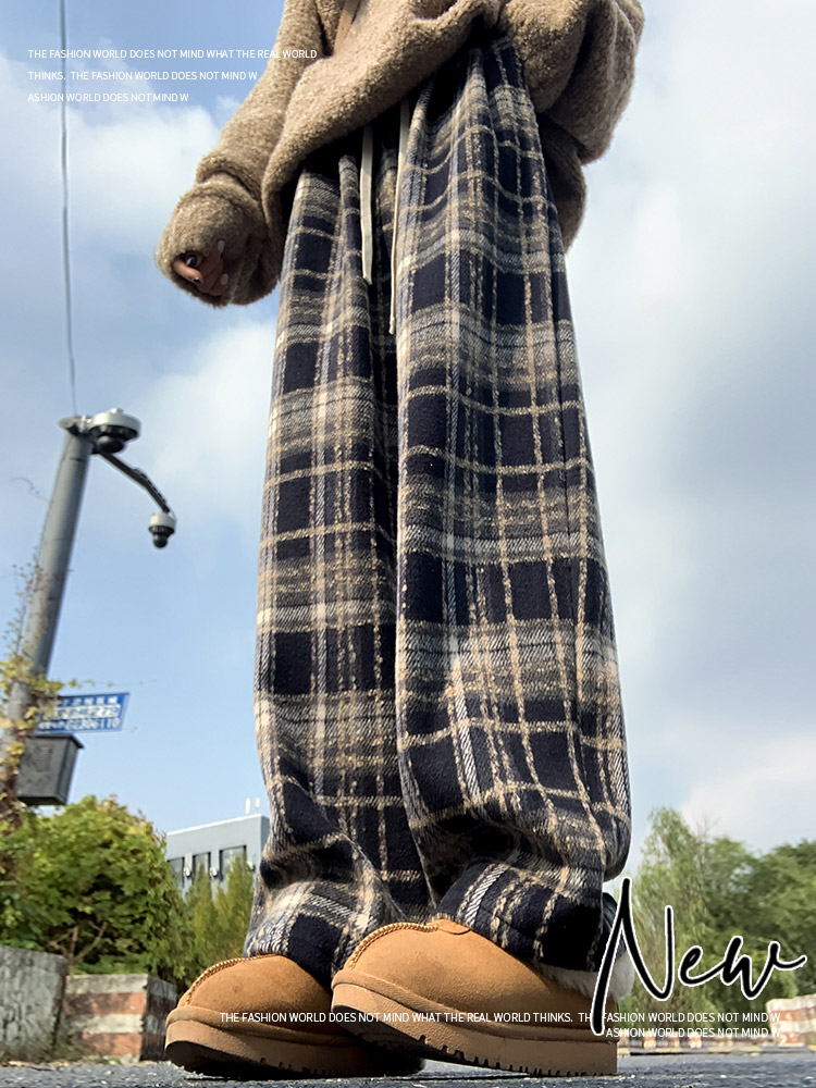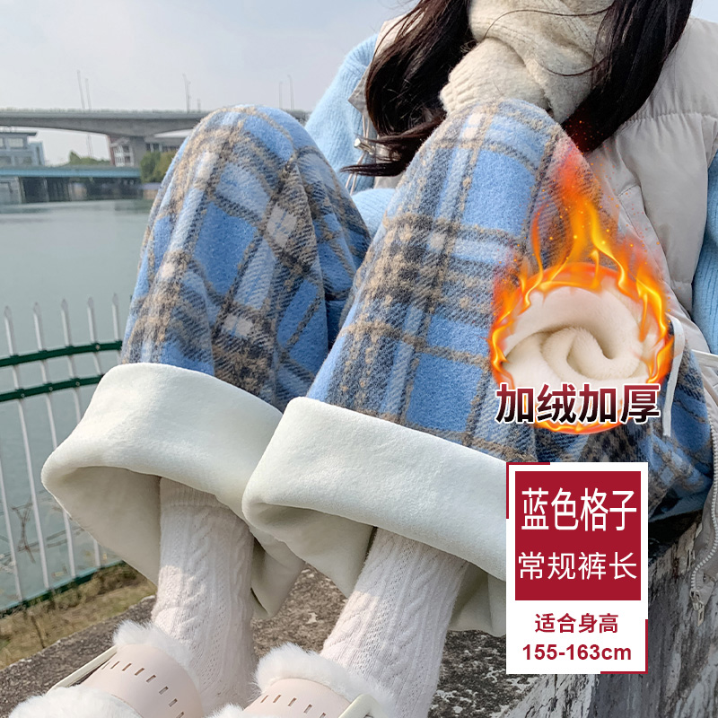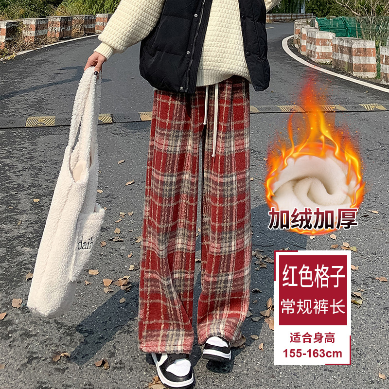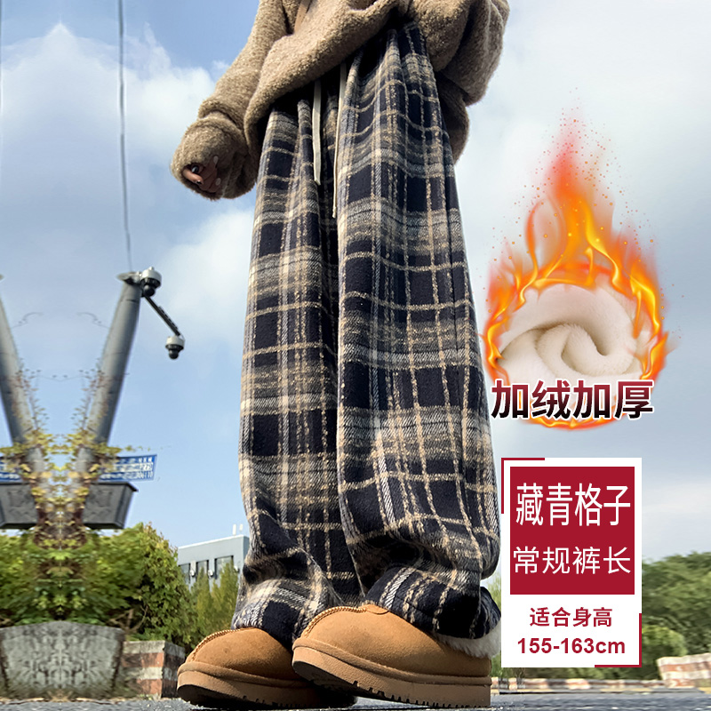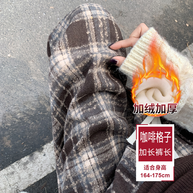 加厚格子裤女秋冬2025年新款加绒裤子高腰垂感小众休闲毛呢阔腿裤