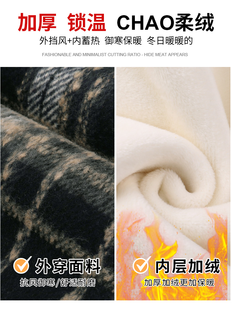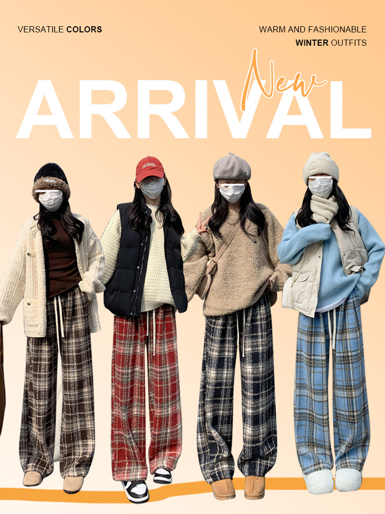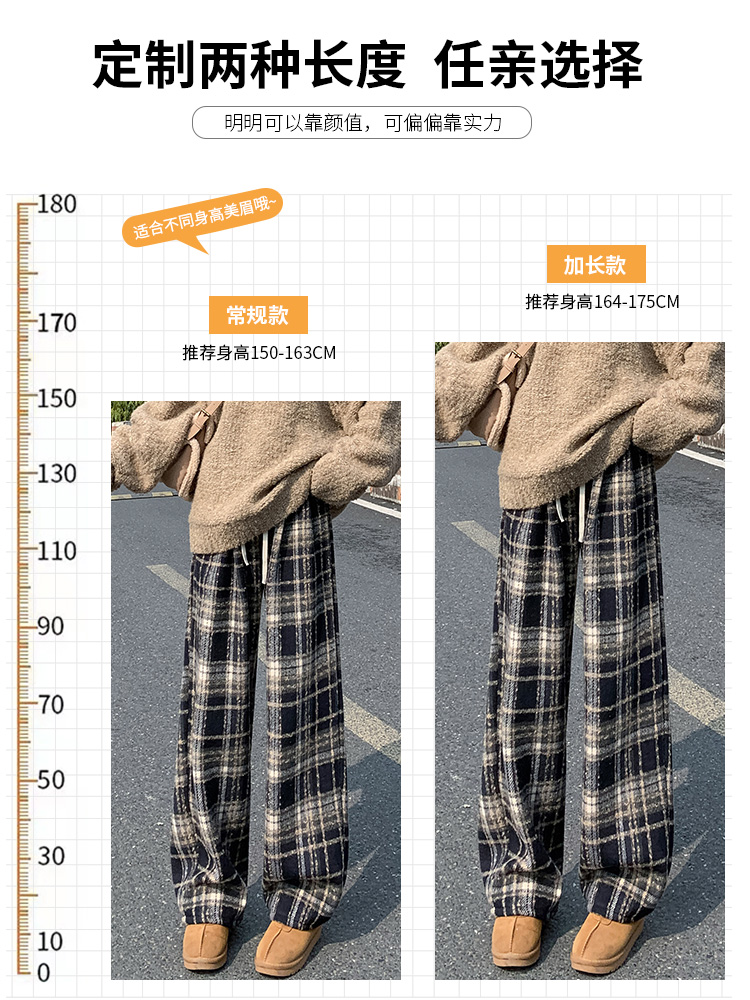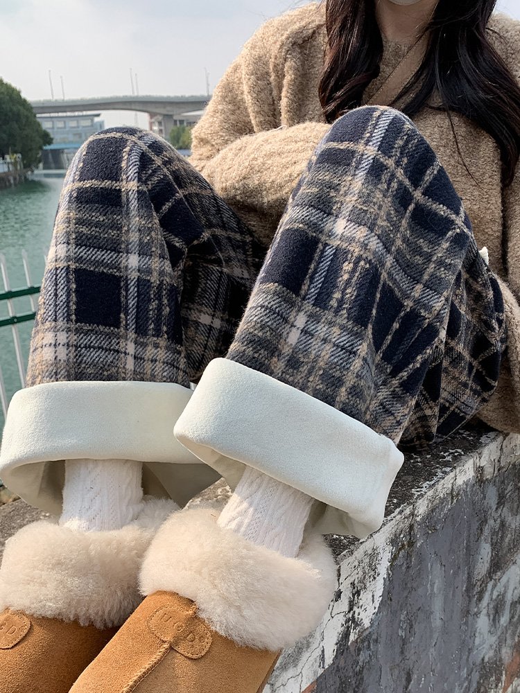加厚格子裤女秋冬2025年新款加绒裤子高腰垂感小众休闲毛呢阔腿裤