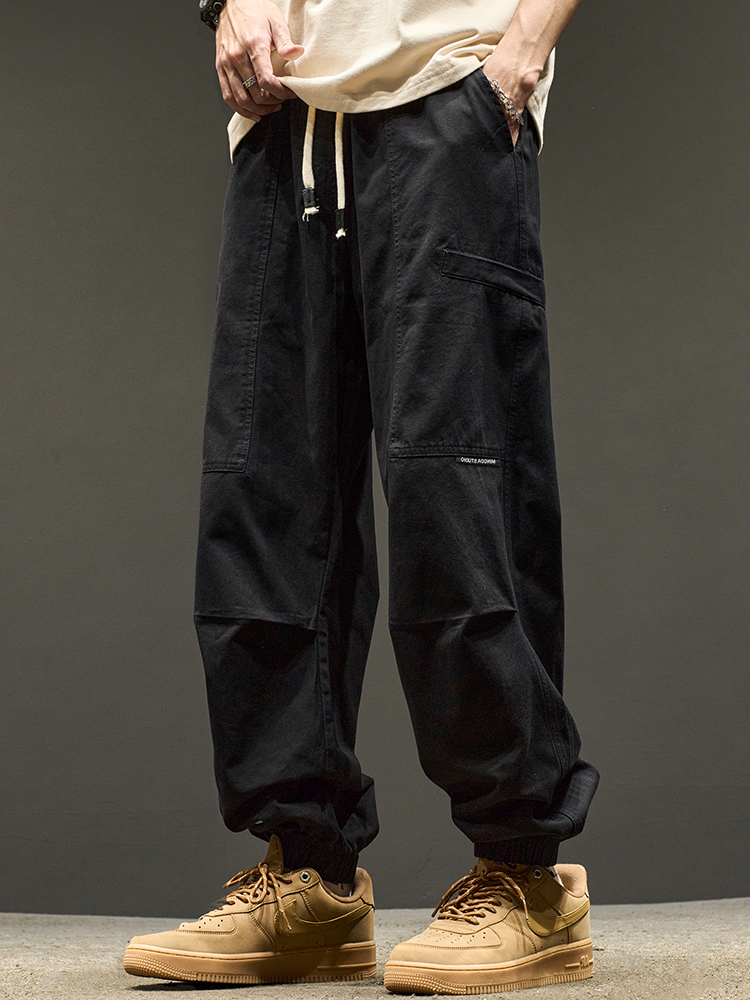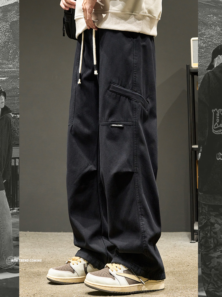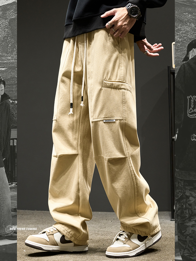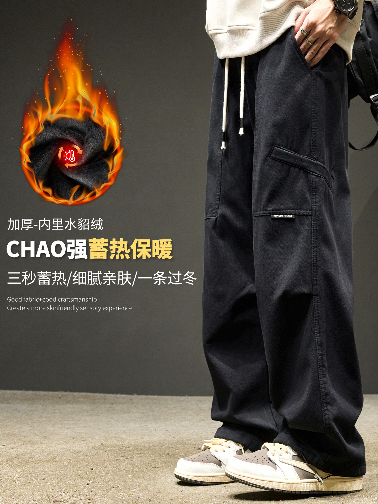 工装裤男2025新款加绒加厚抽绳直筒裤拼接褶皱美式潮牌伞兵裤秋冬