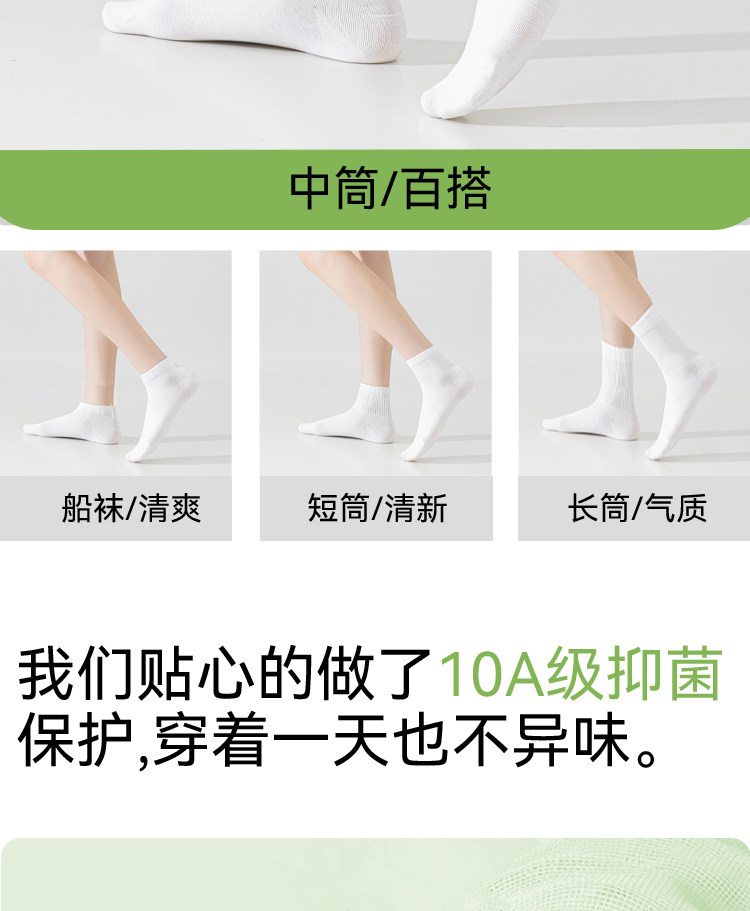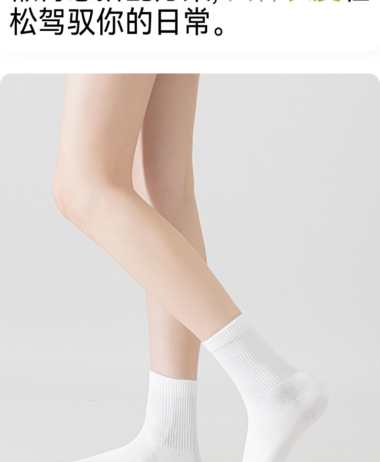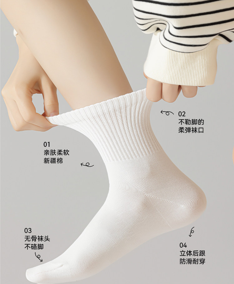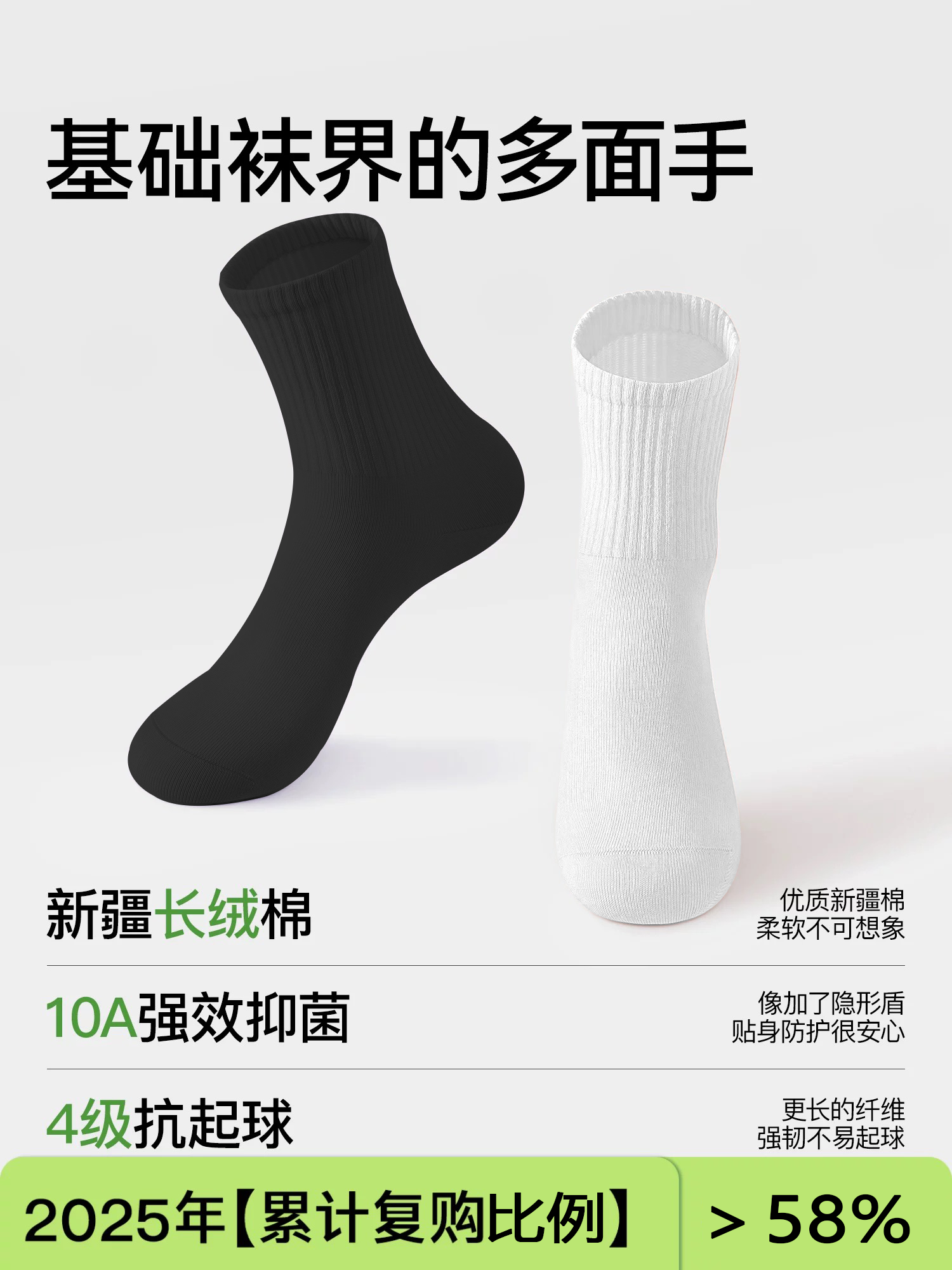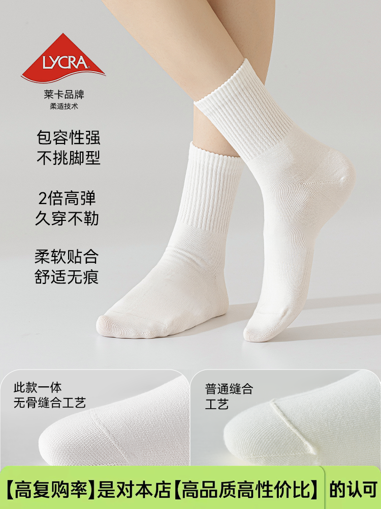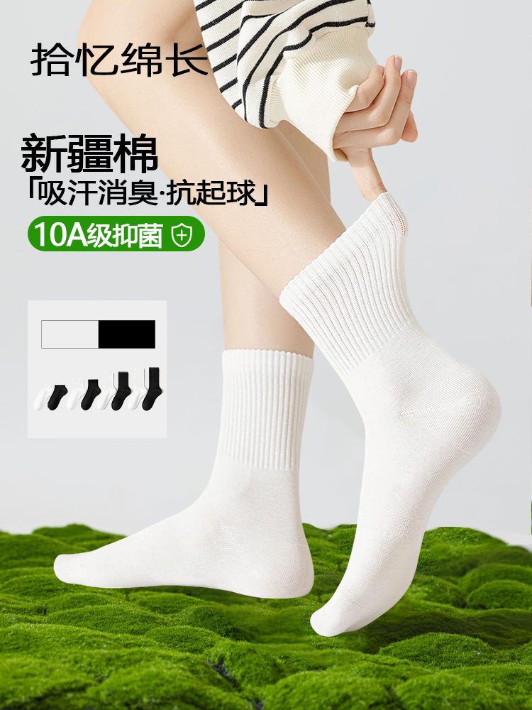 【10A抗菌】袜子女纯棉纱线吸汗防臭秋冬中筒袜白色春秋袜抗起球