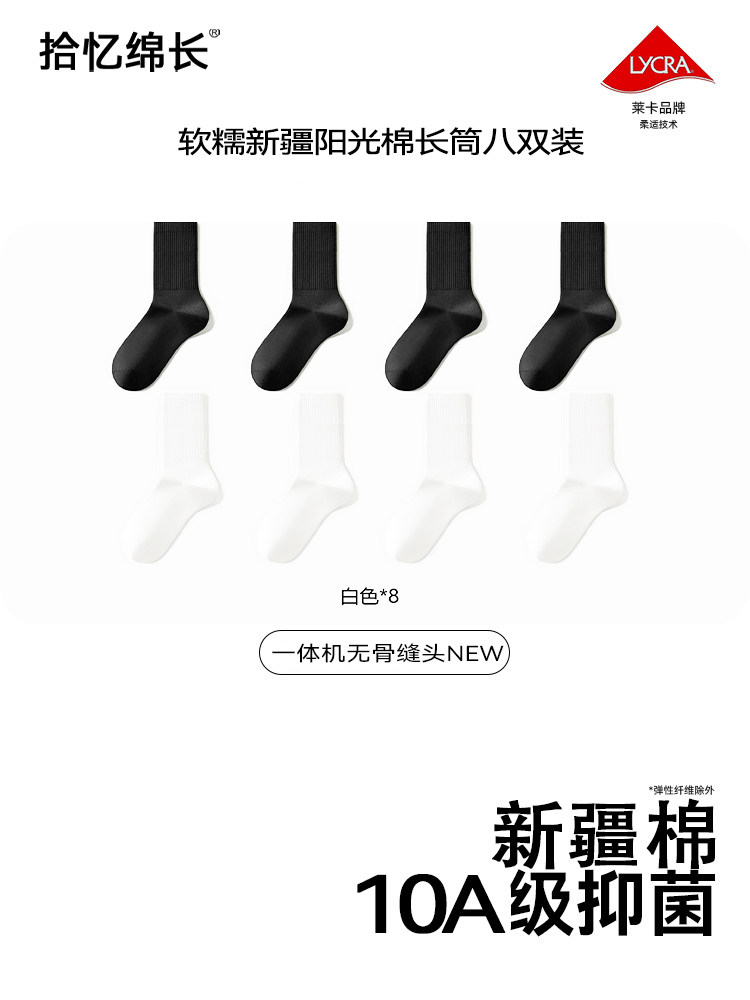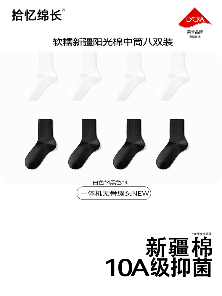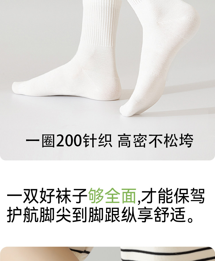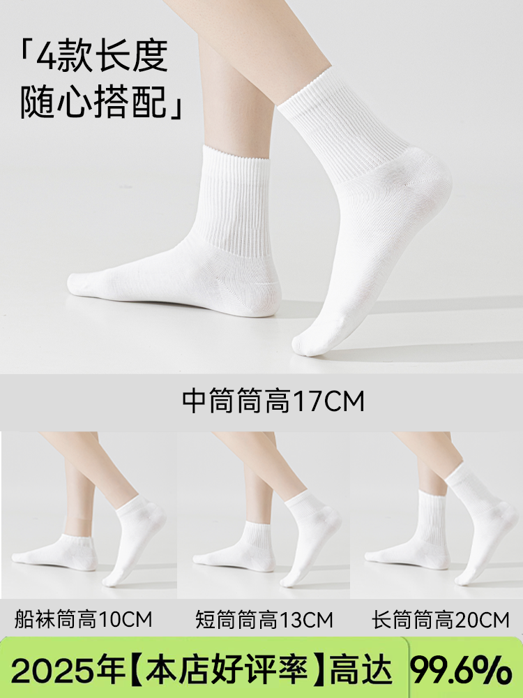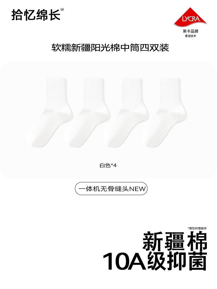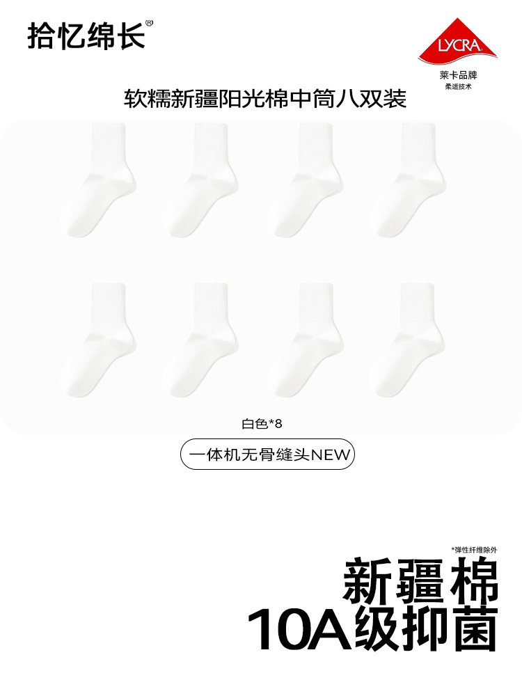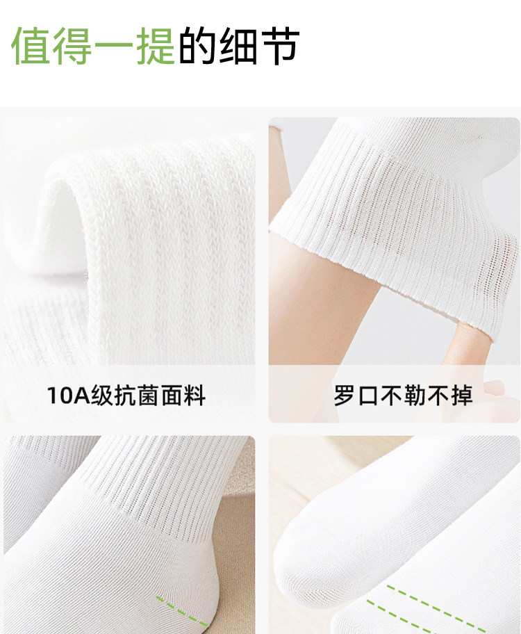 【10A抗菌】袜子女纯棉纱线吸汗防臭秋冬中筒袜白色春秋袜抗起球