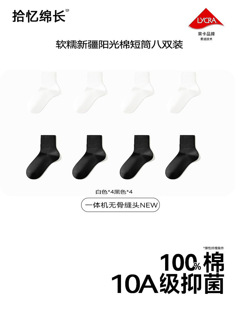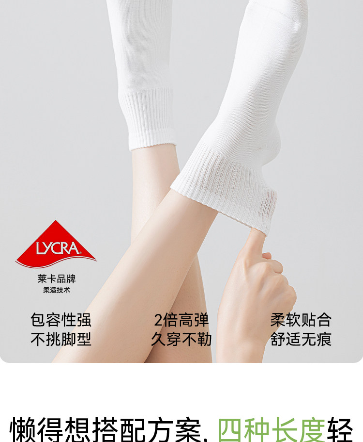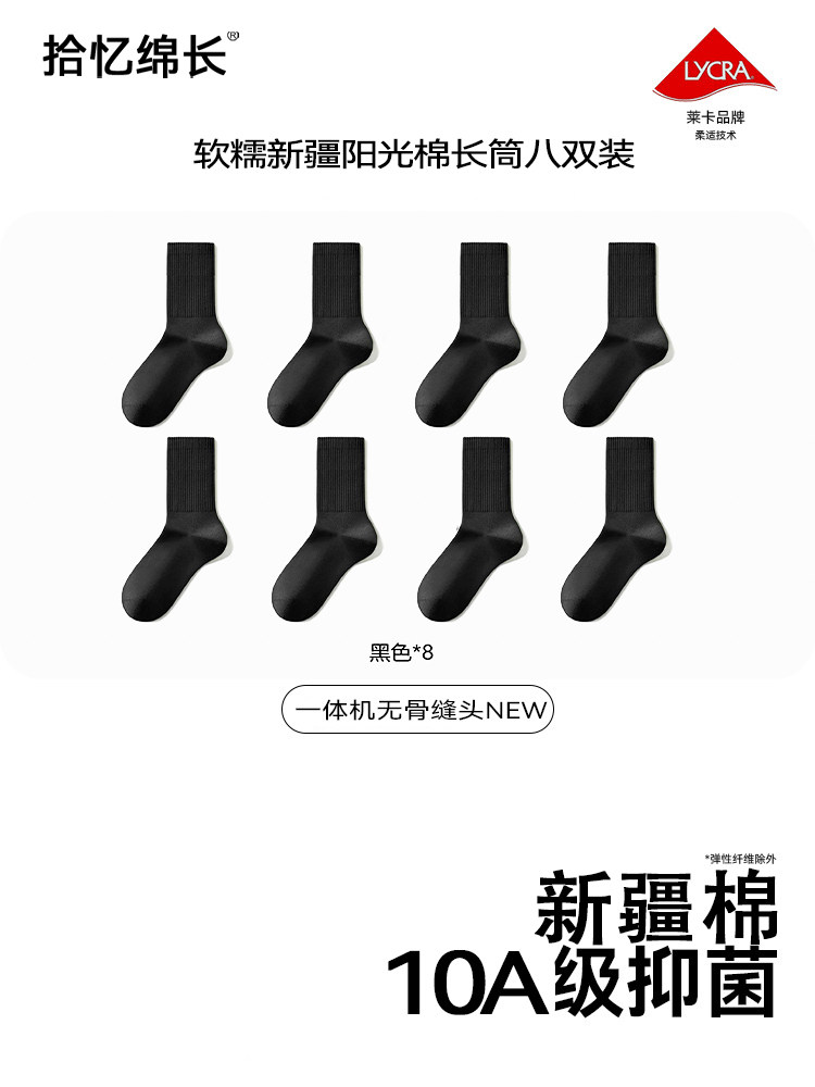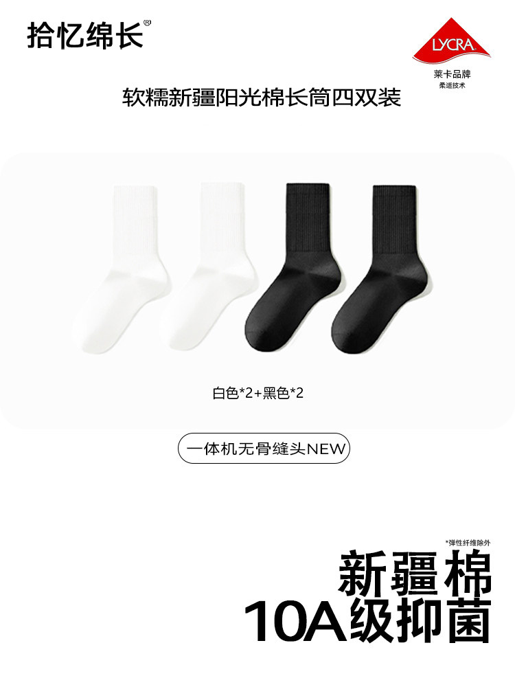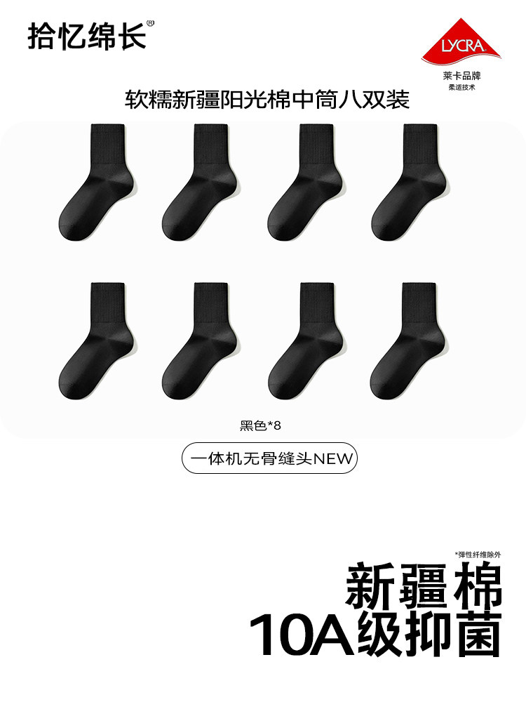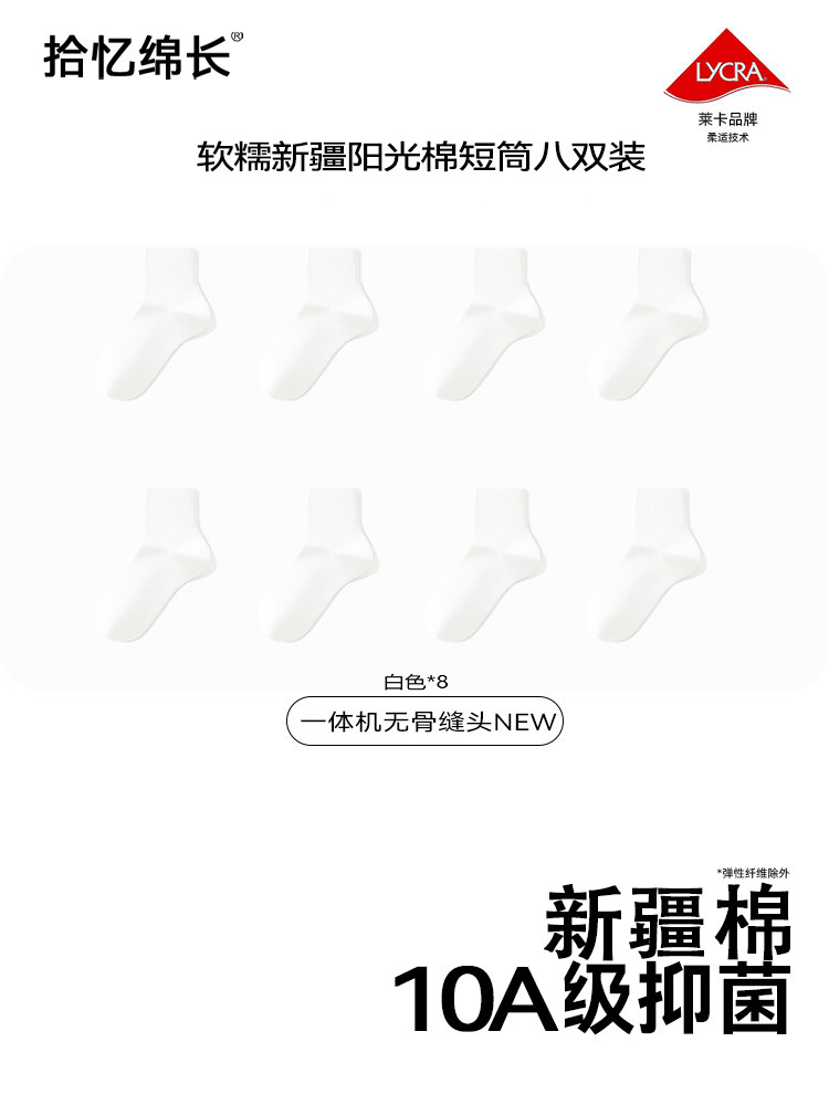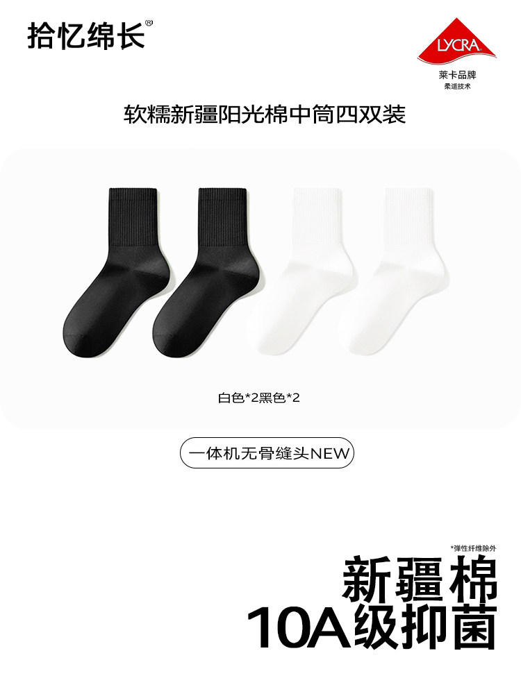 【10A抗菌】袜子女纯棉纱线吸汗防臭秋冬中筒袜白色春秋袜抗起球