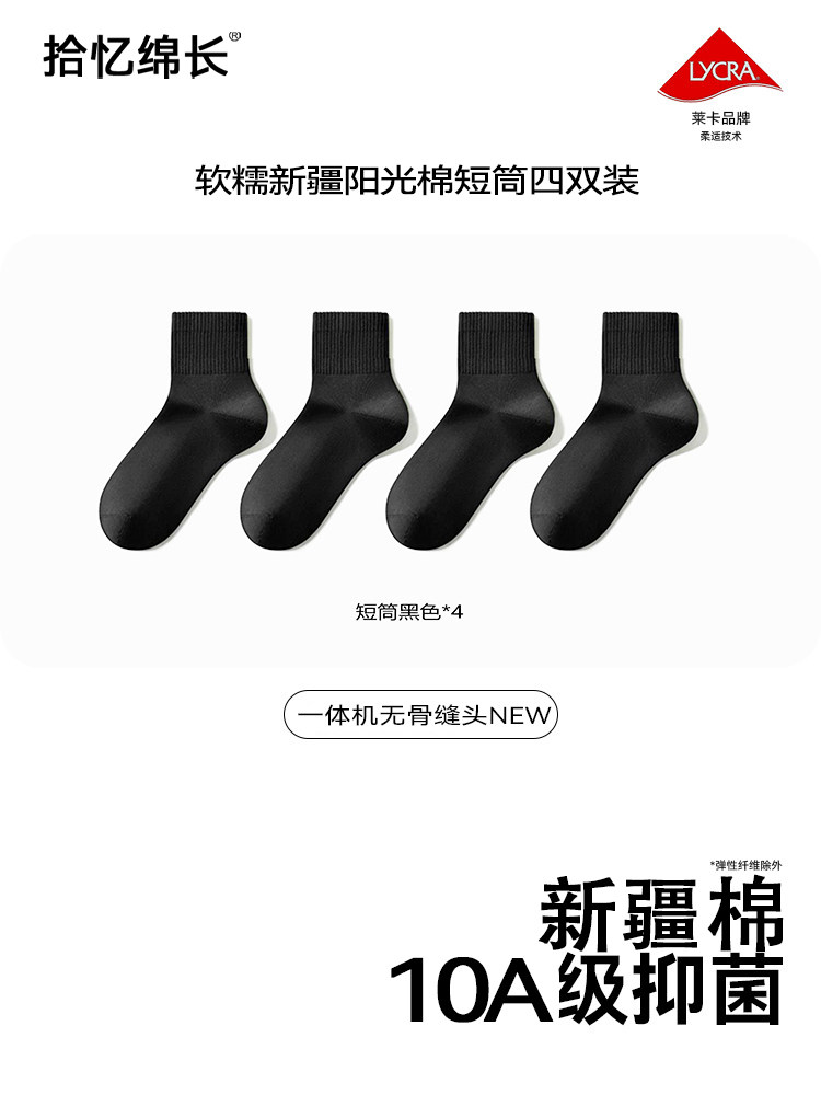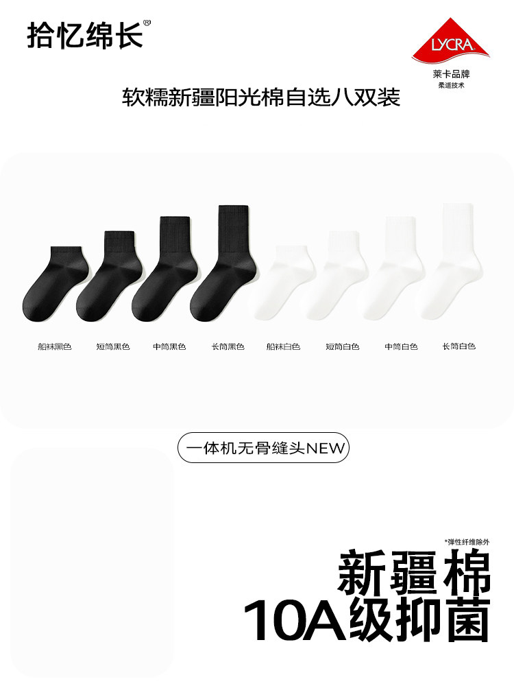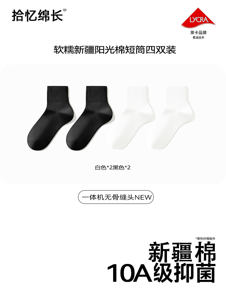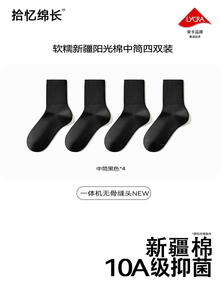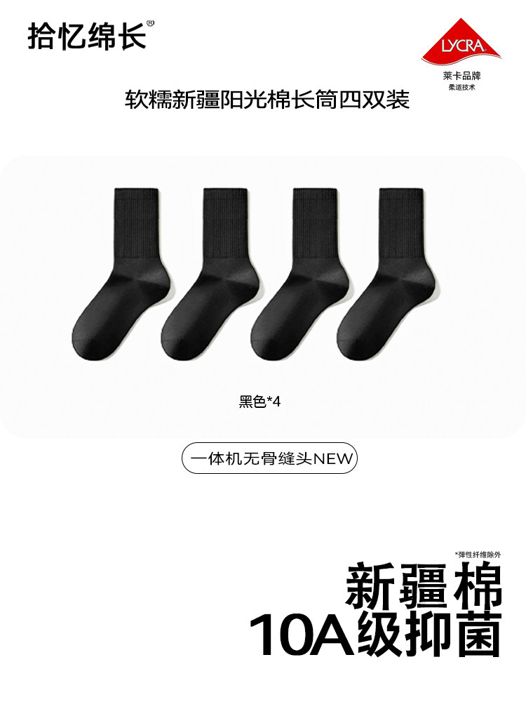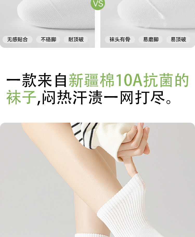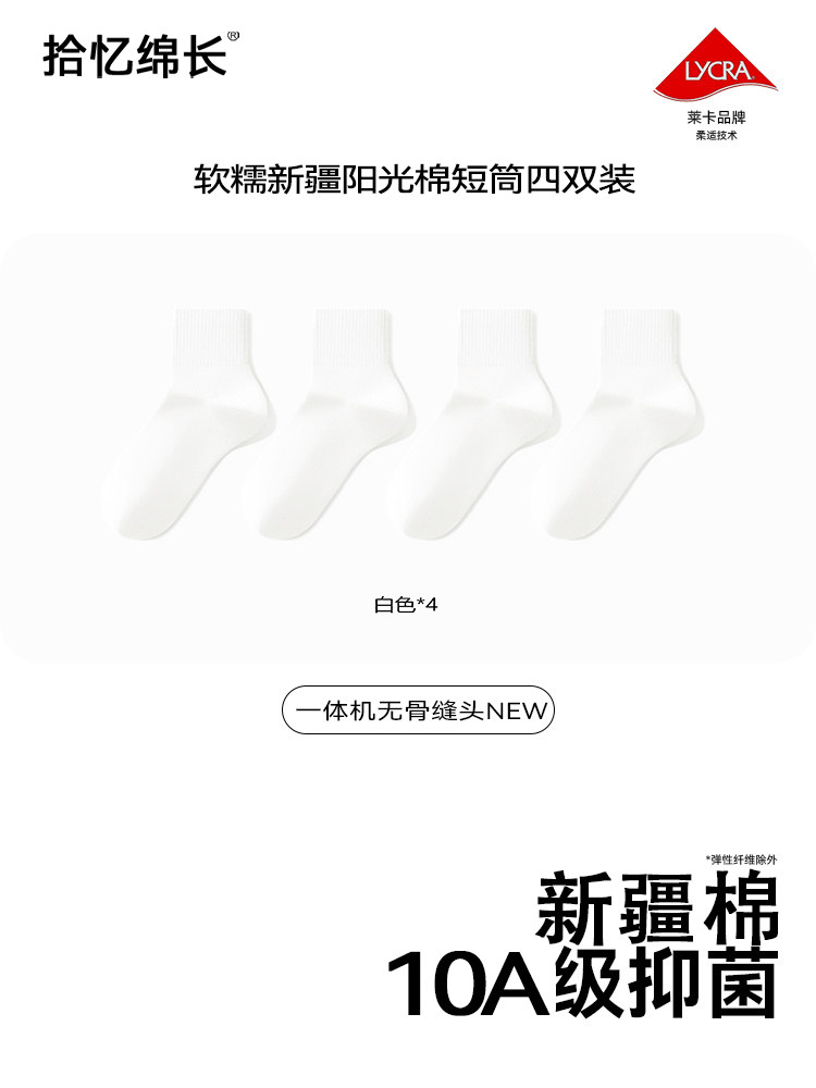 【10A抗菌】袜子女纯棉纱线吸汗防臭秋冬中筒袜白色春秋袜抗起球