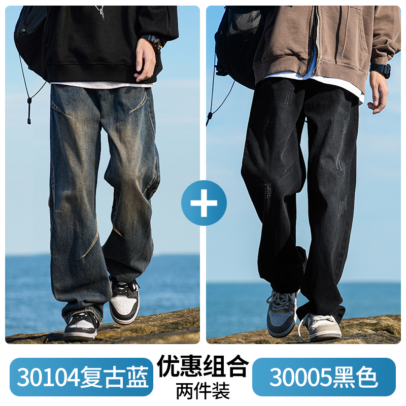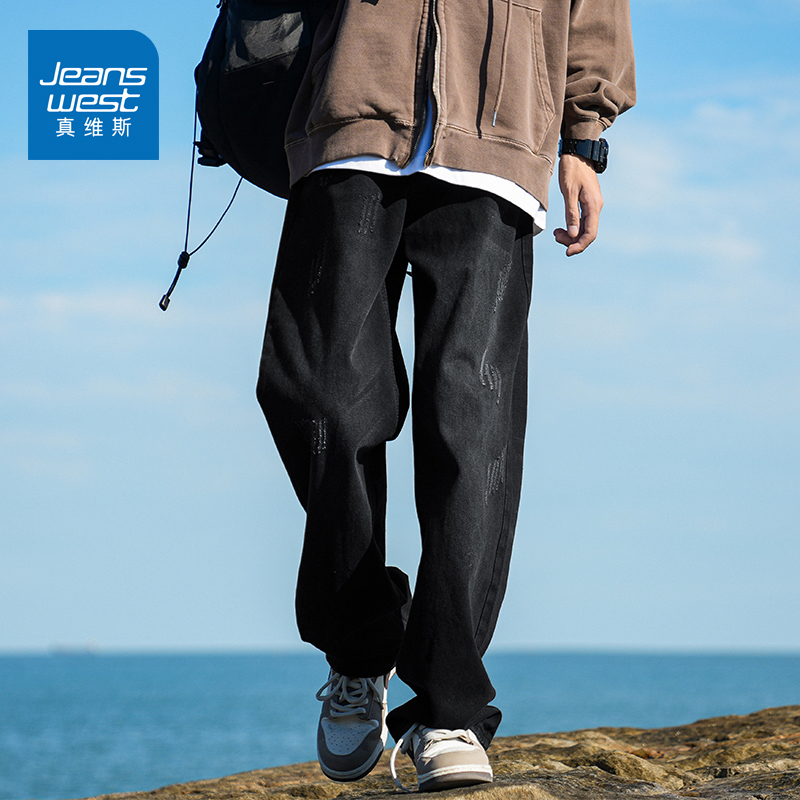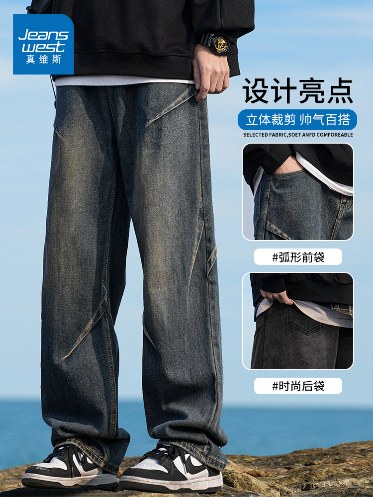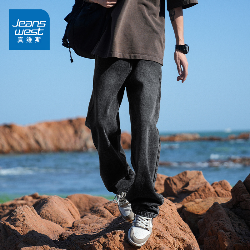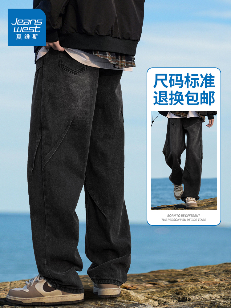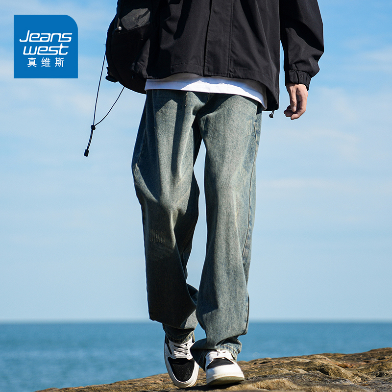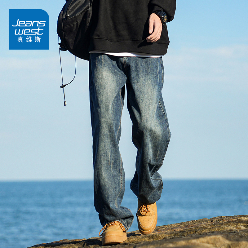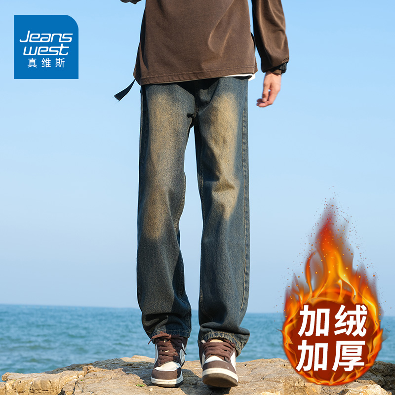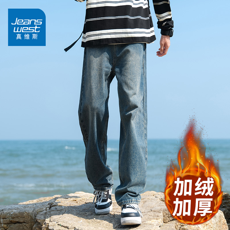 真维斯加绒牛仔裤男士秋冬2025新款直筒裤宽松男生阔腿裤男款长裤