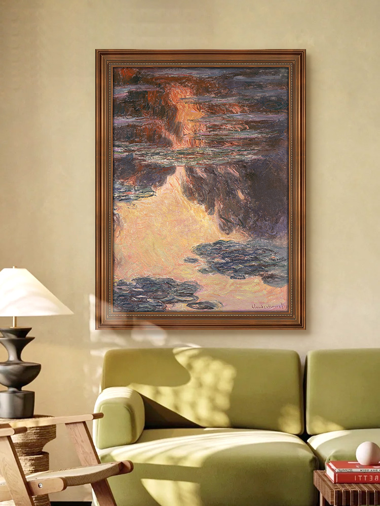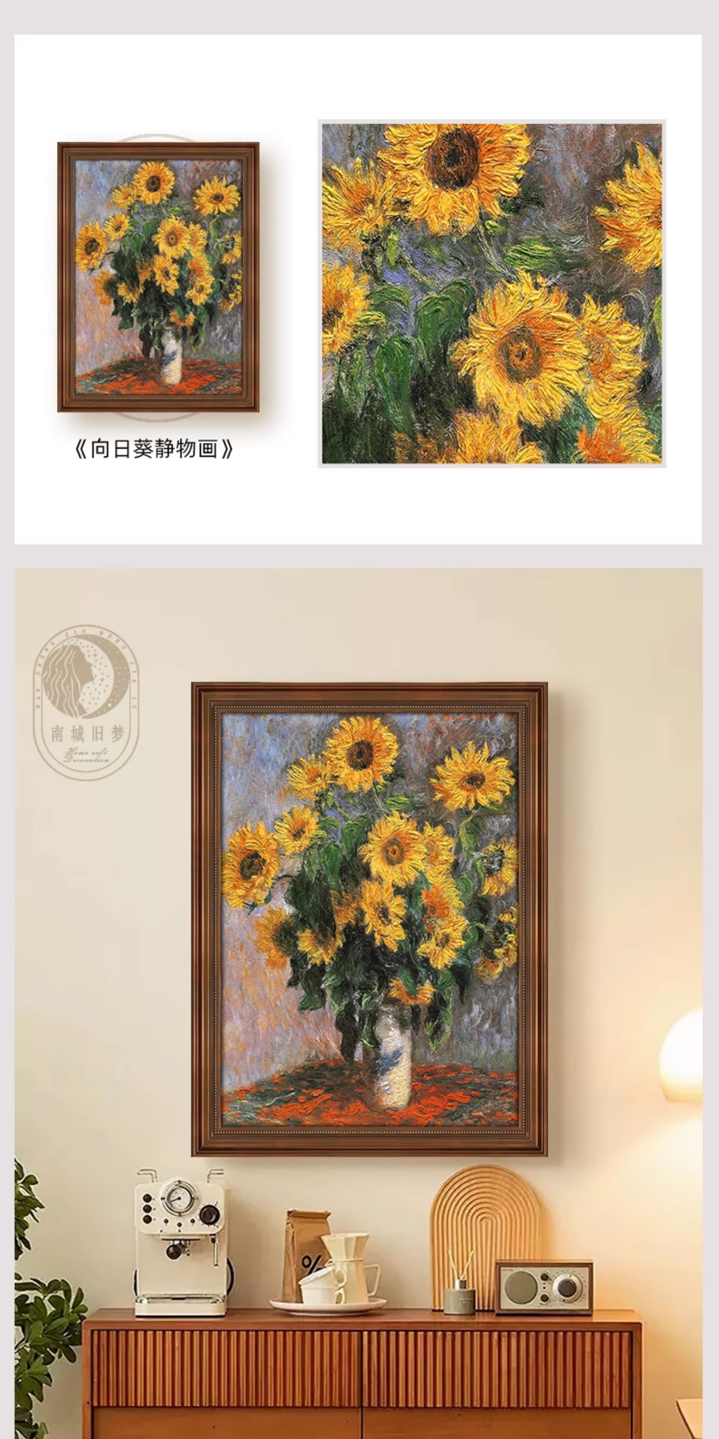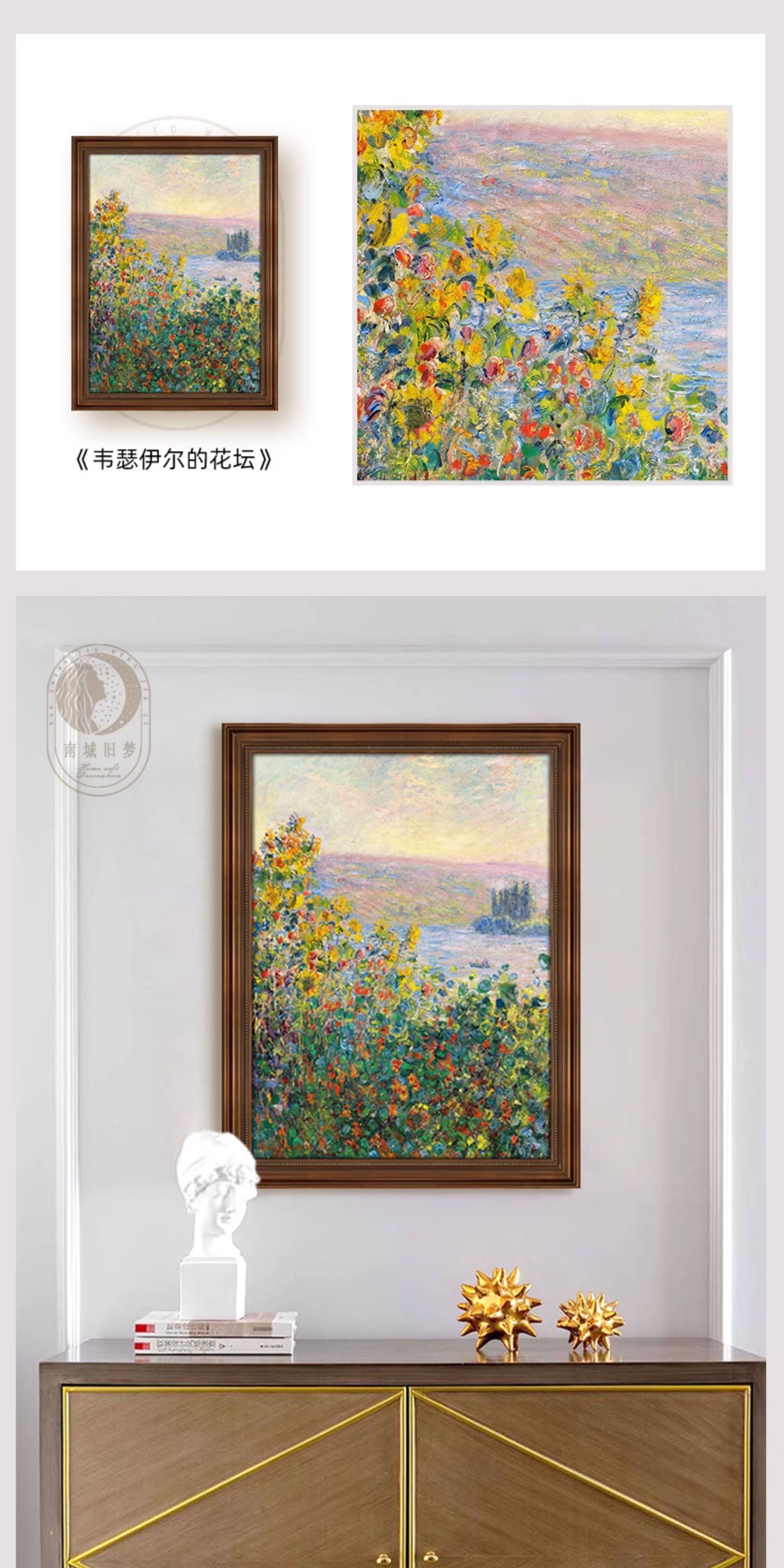 莫奈睡莲油画装饰画美式复古挂画日出印象客厅玄关组合画世界名画