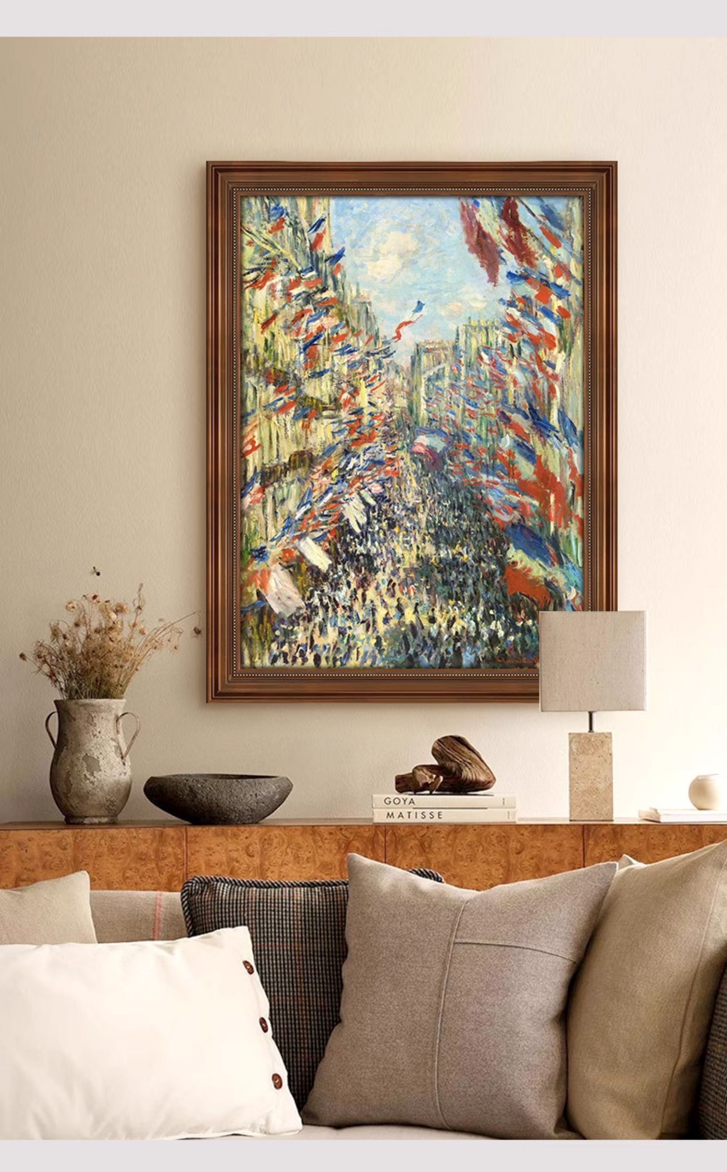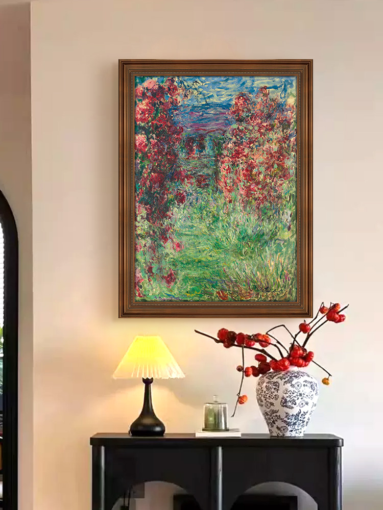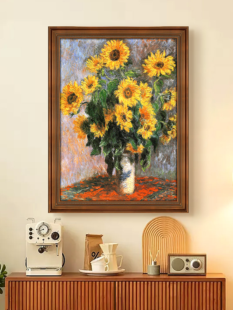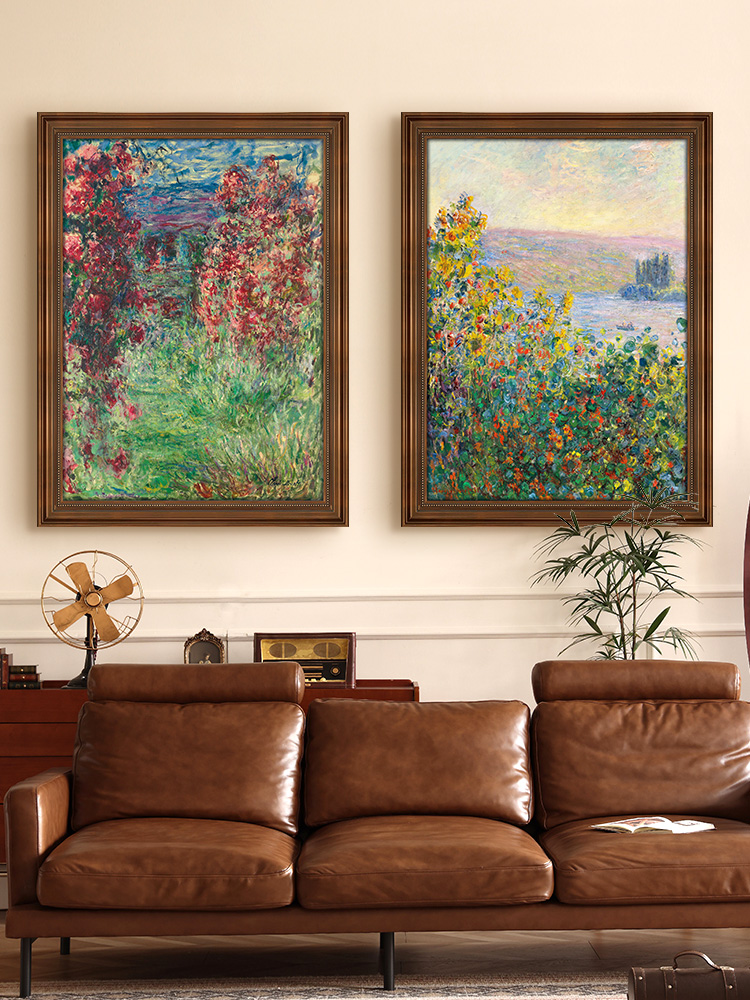 莫奈睡莲油画装饰画美式复古挂画日出印象客厅玄关组合画世界名画