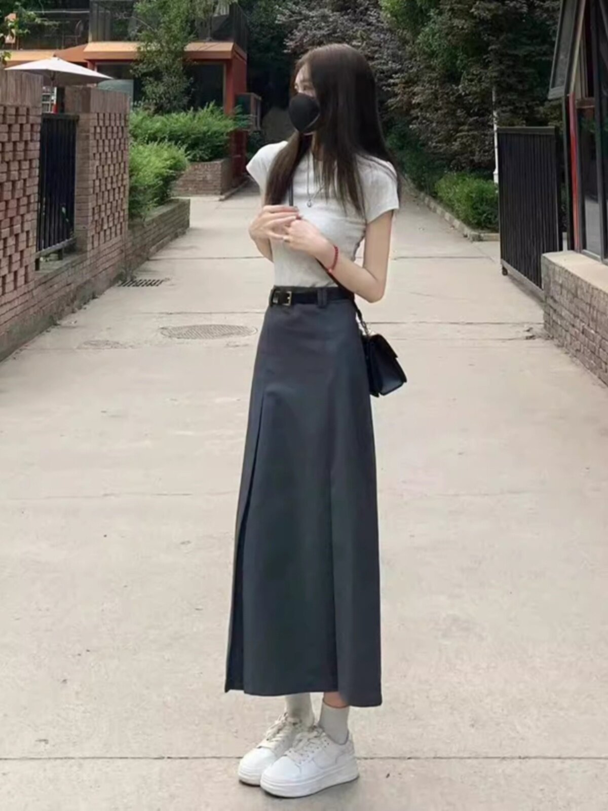 初夏装搭配一整套夏日小个子茶系减龄穿搭半身裙子两件套装女夏季