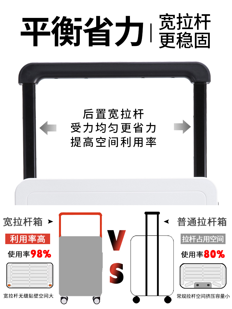中置宽拉杆行李箱女新款20寸小型旅行箱登机箱22大容量皮箱子男26