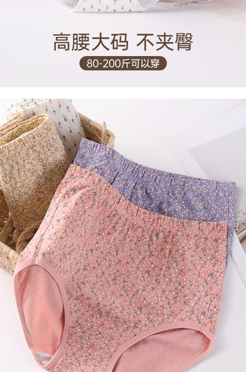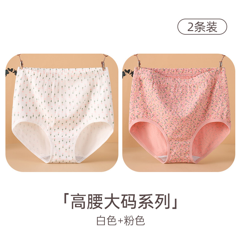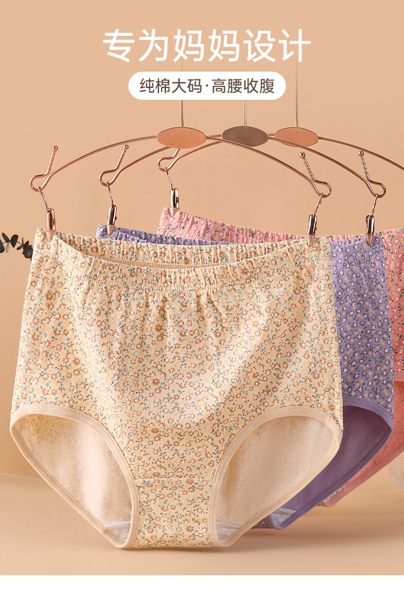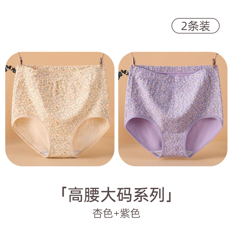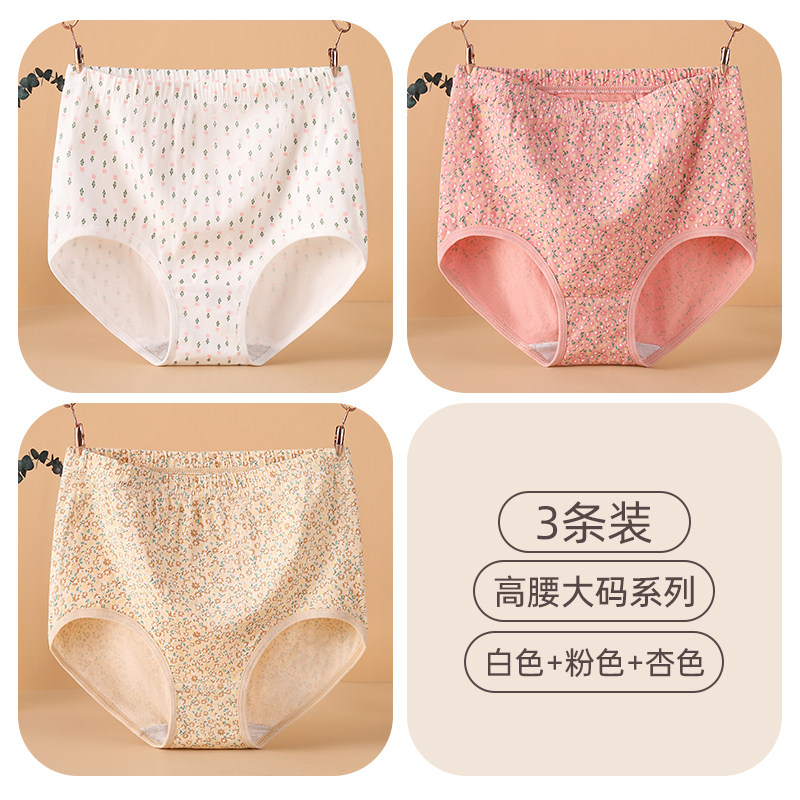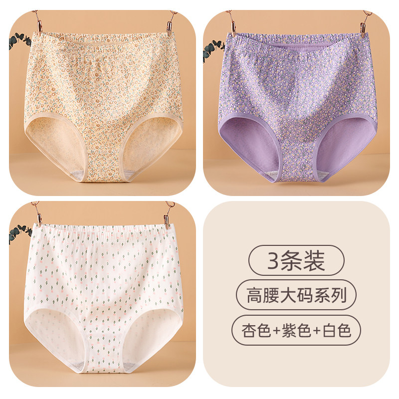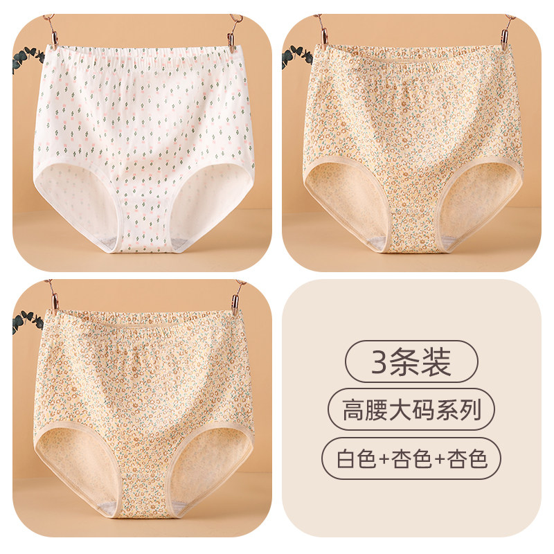 妈妈纯棉内裤女中老年高腰收腹大码200斤胖m透气抗菌裆宽松三角裤