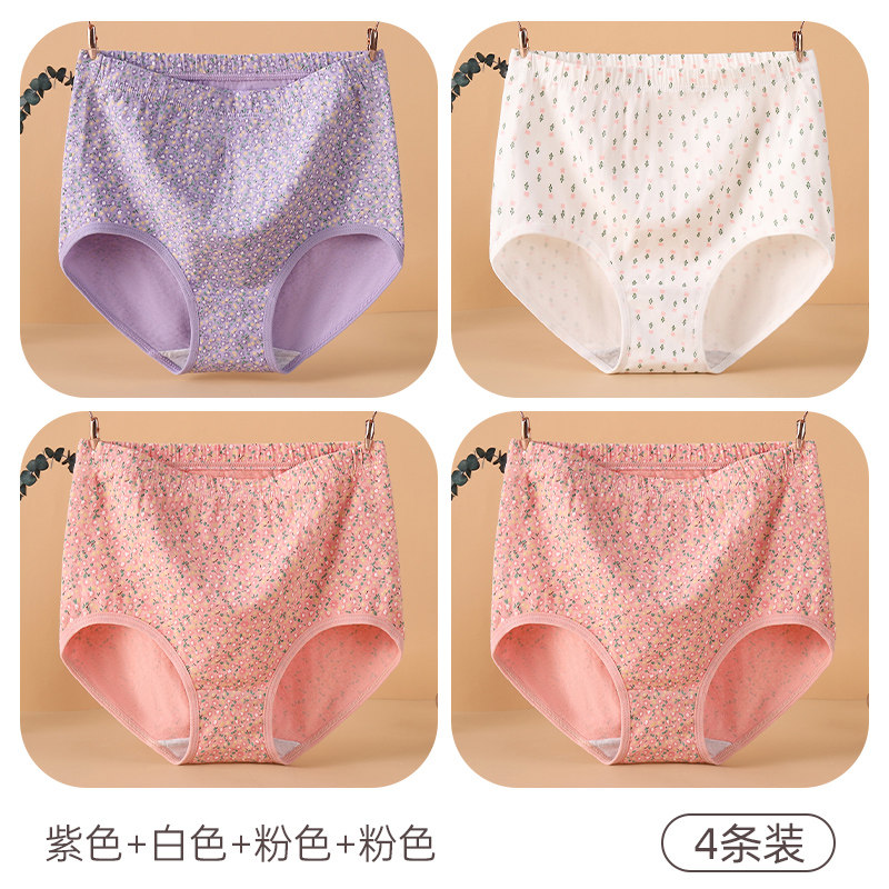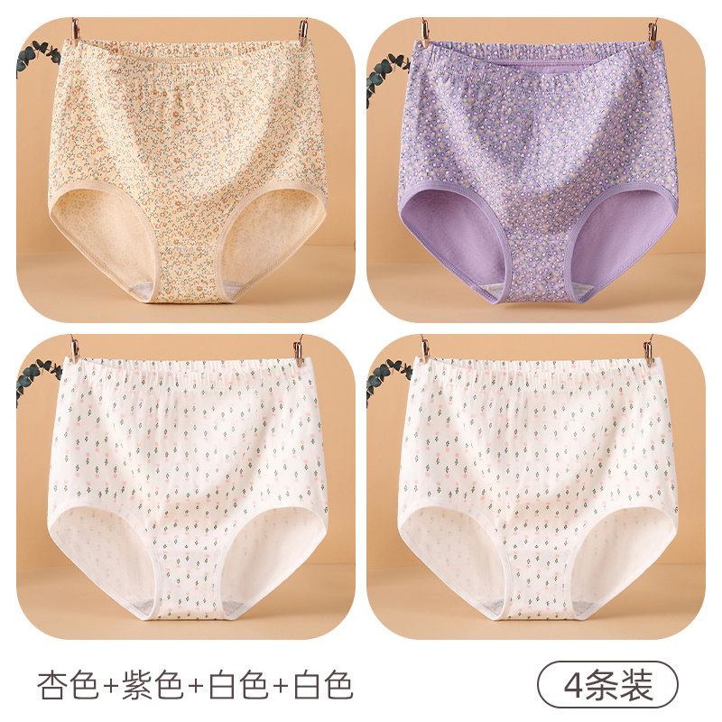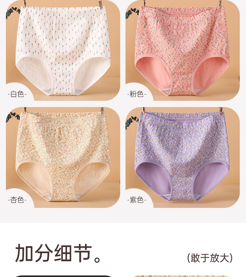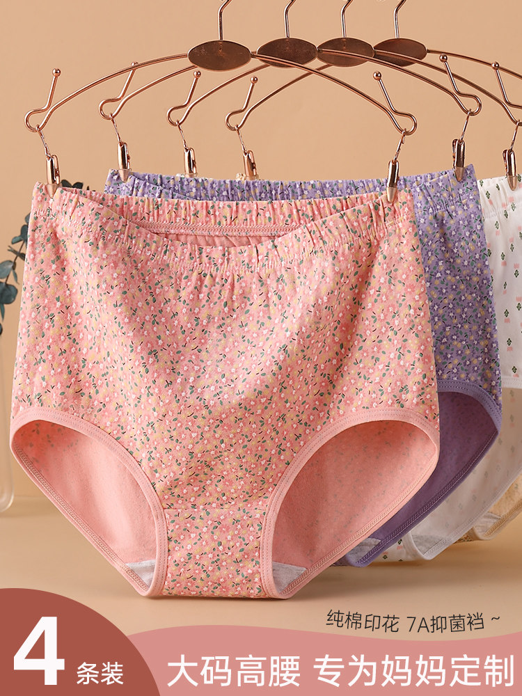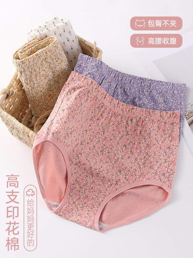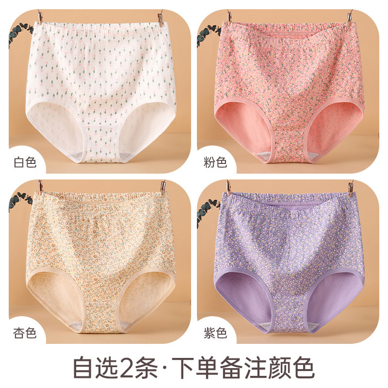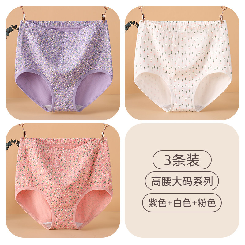 妈妈纯棉内裤女中老年高腰收腹大码200斤胖m透气抗菌裆宽松三角裤
