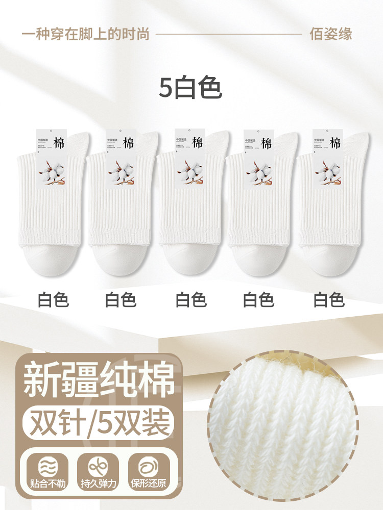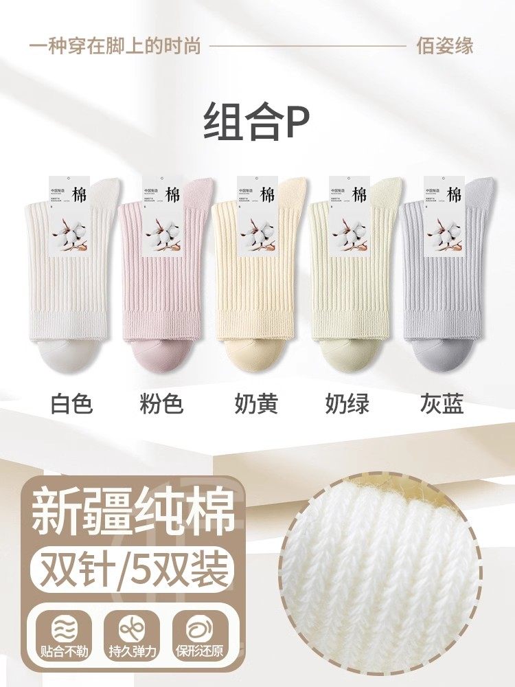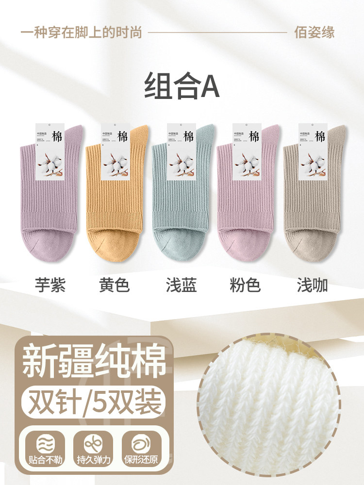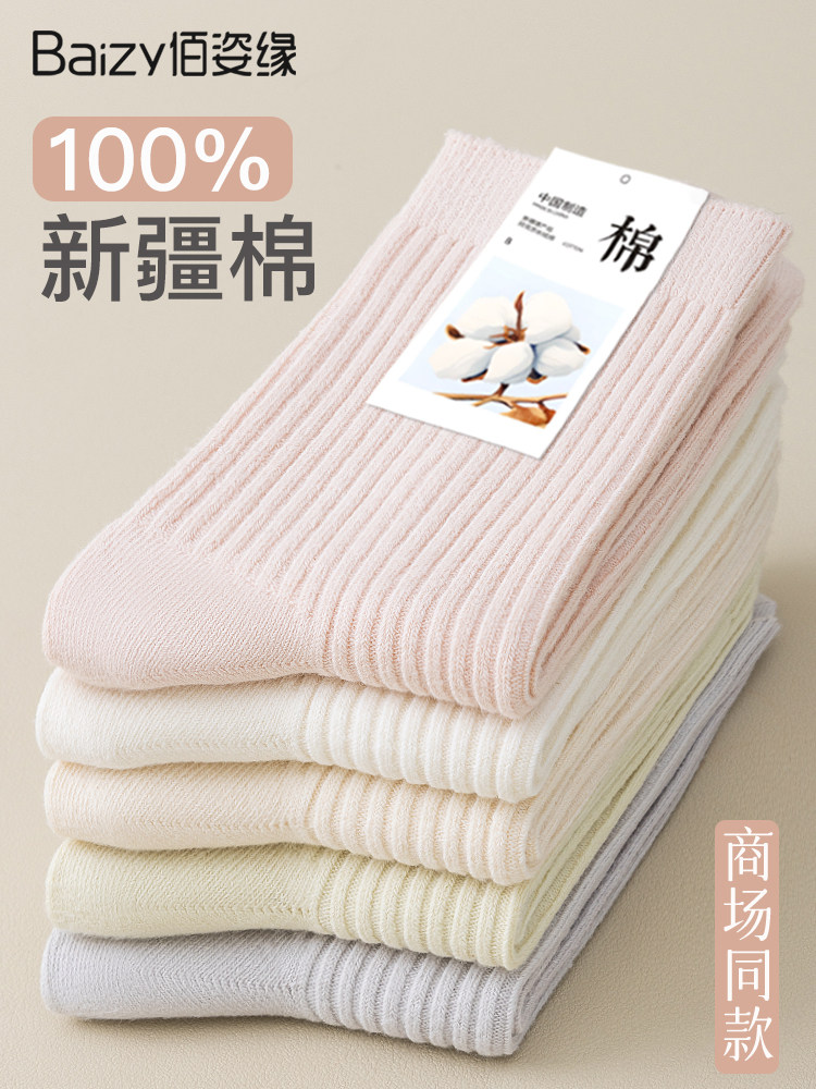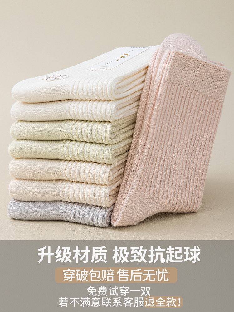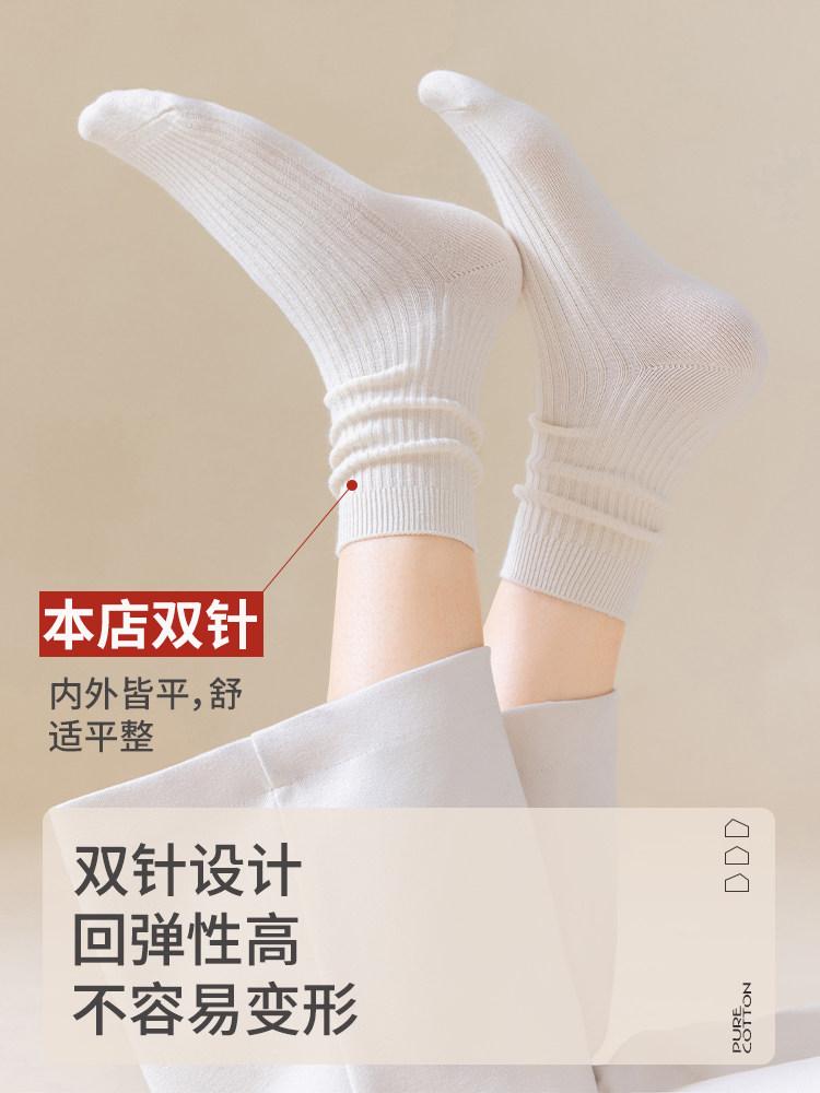 袜子女纯棉中筒袜春秋季抗菌防臭吸汗无骨新疆棉月子袜秋冬堆堆袜