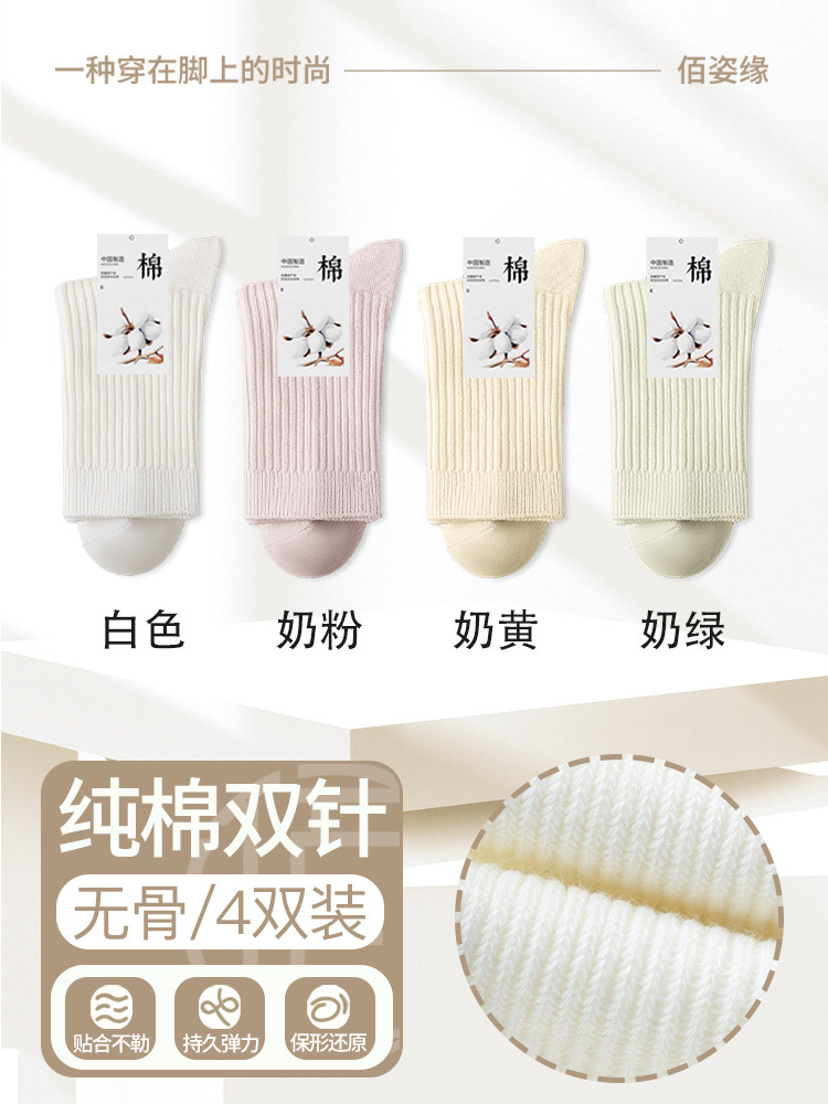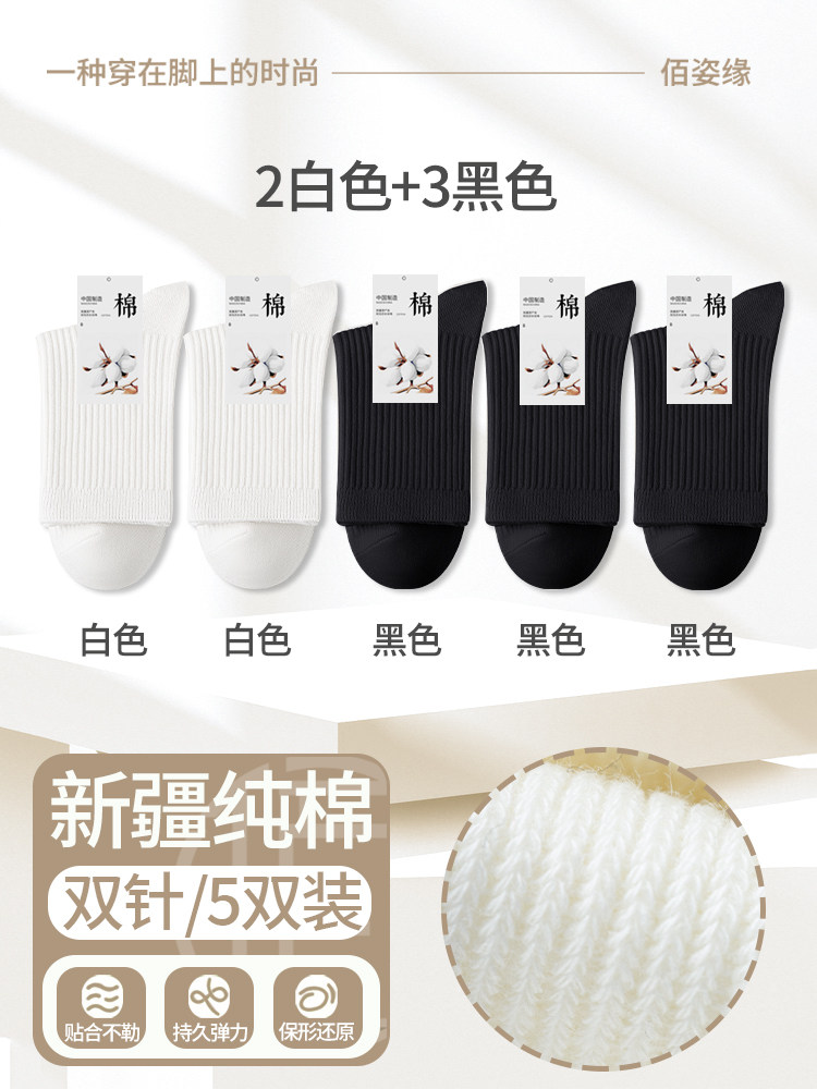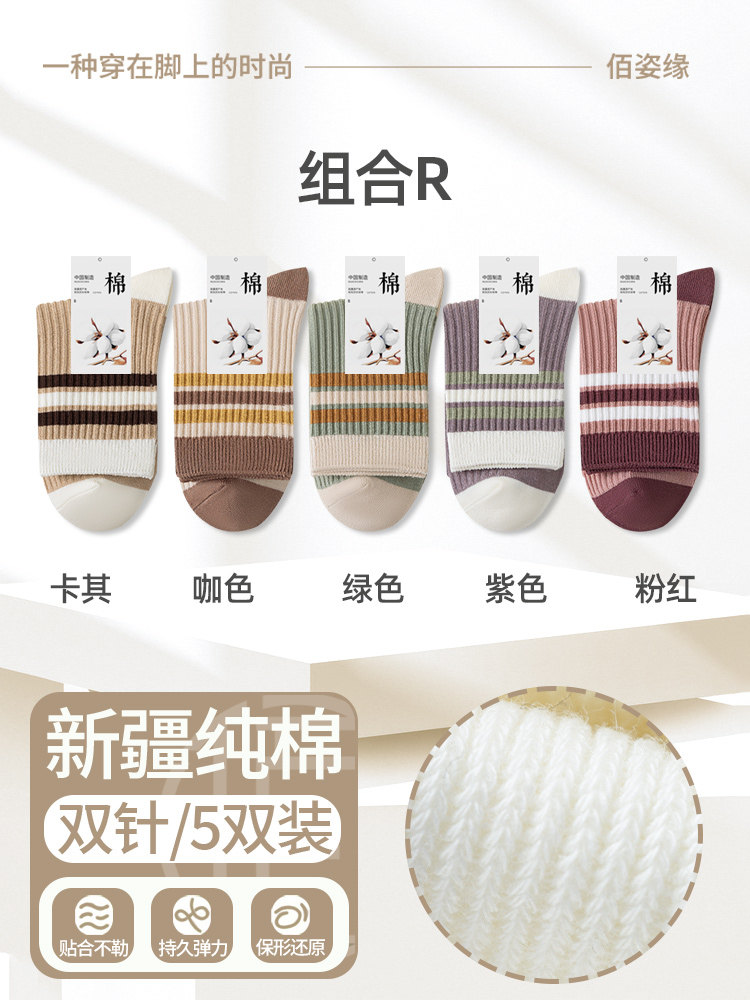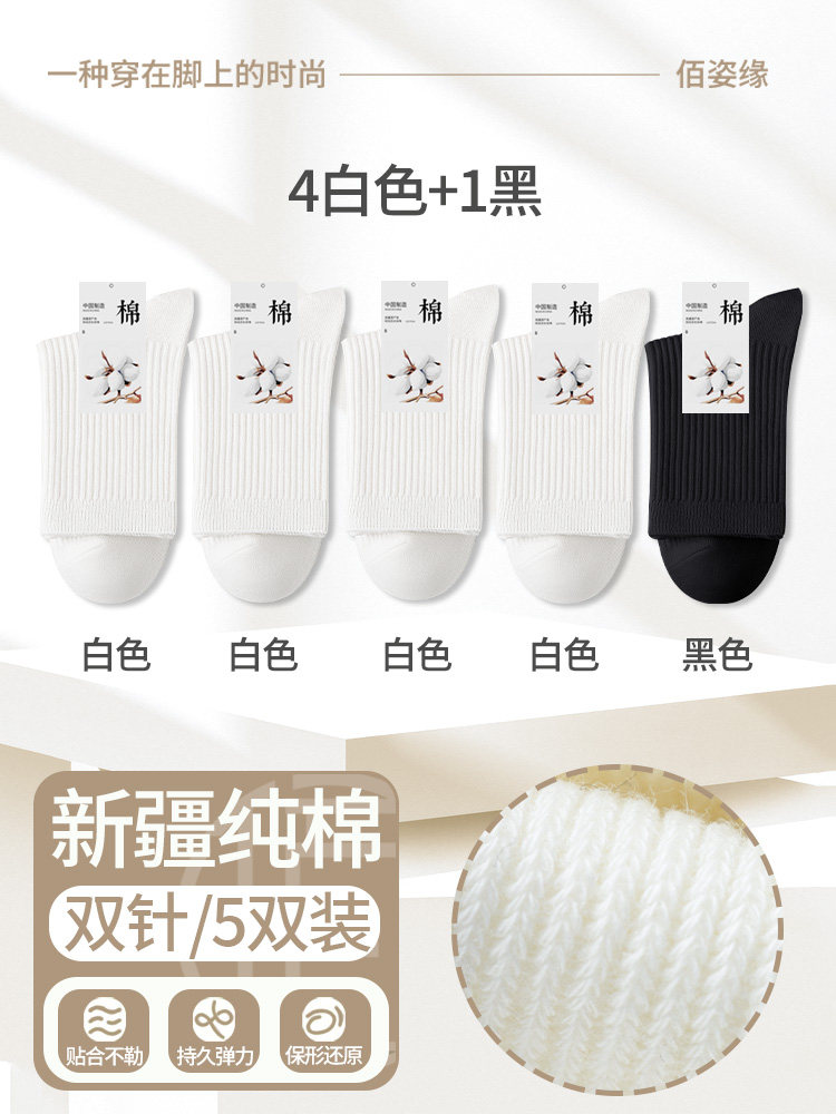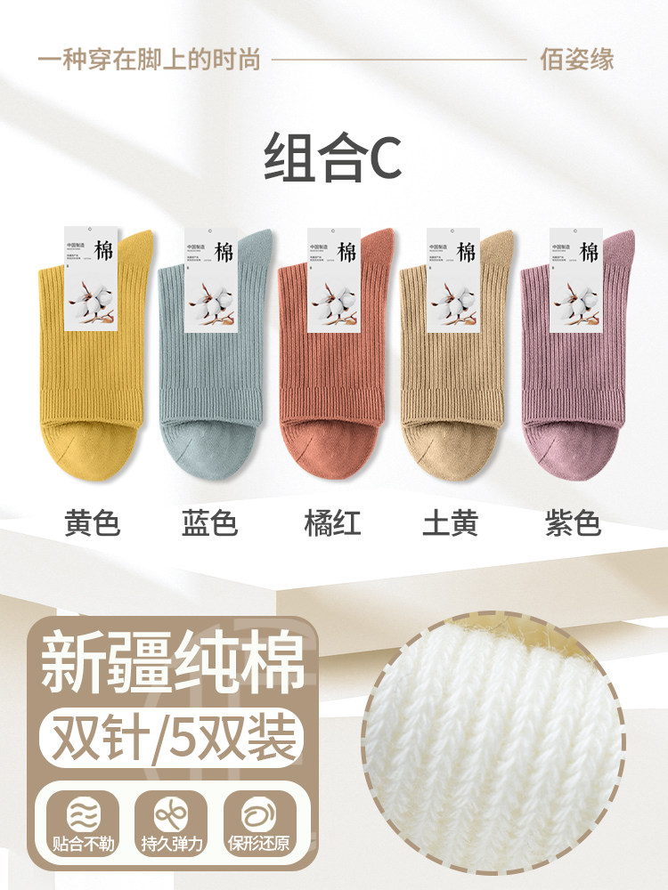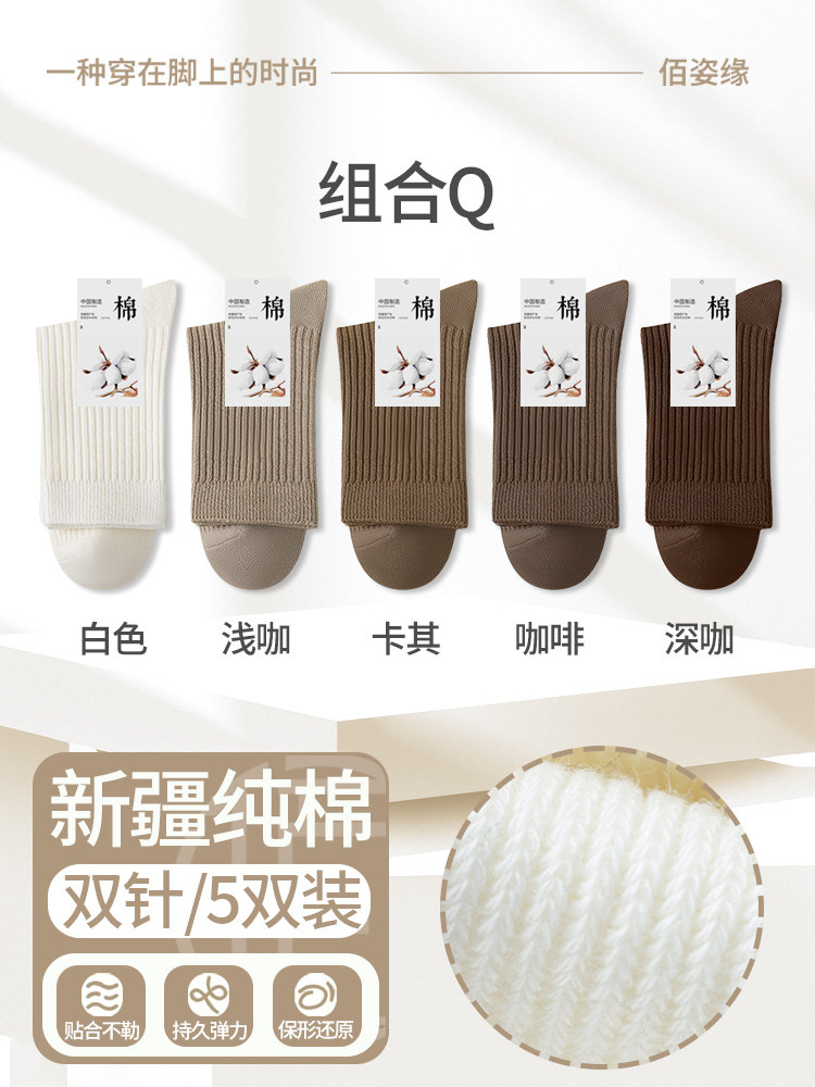 袜子女纯棉中筒袜春秋季抗菌防臭吸汗无骨新疆棉月子袜秋冬堆堆袜
