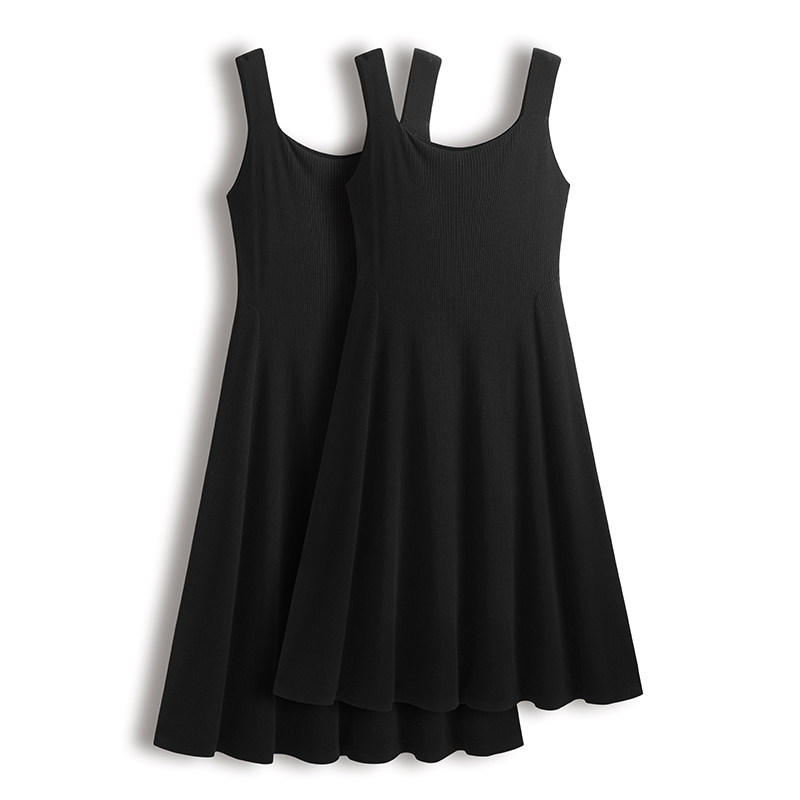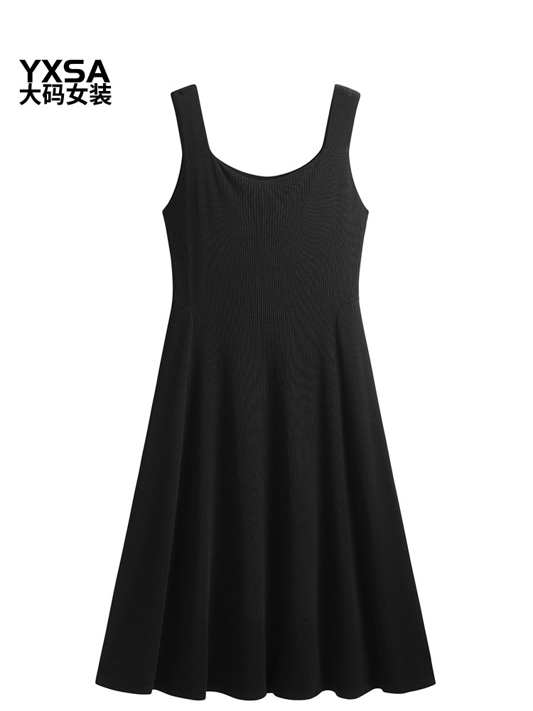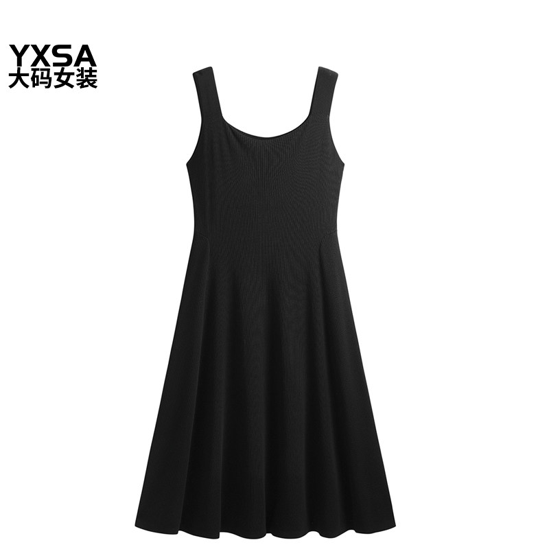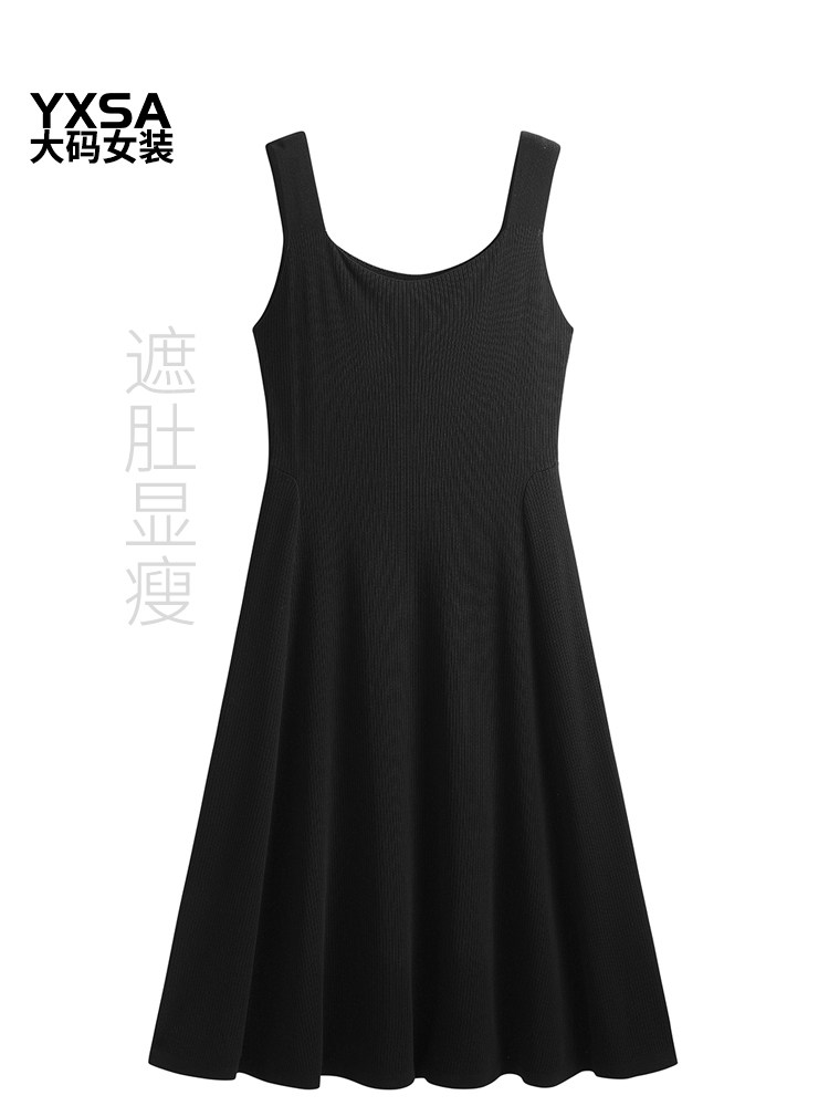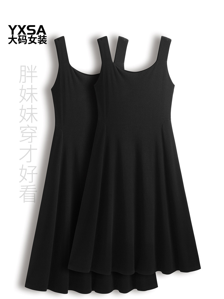 胖mm春秋大码女装针织吊带连衣裙遮肚子显瘦中长款冰丝黑色a字裙